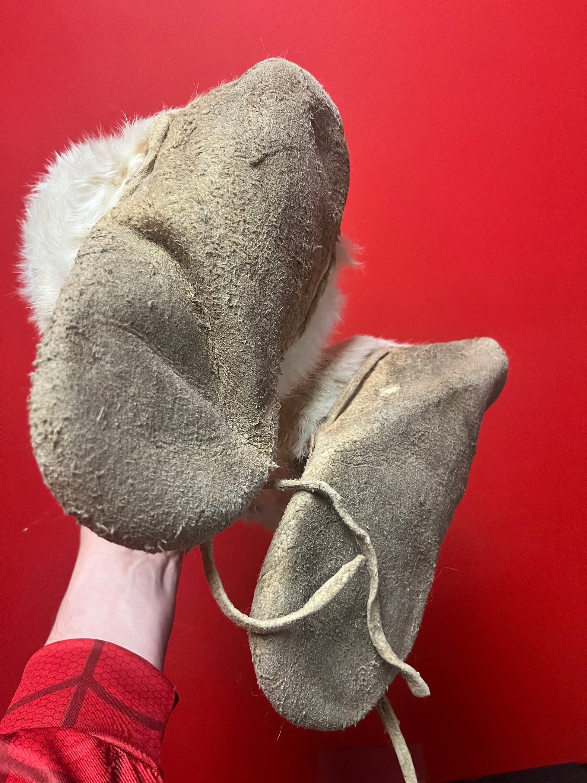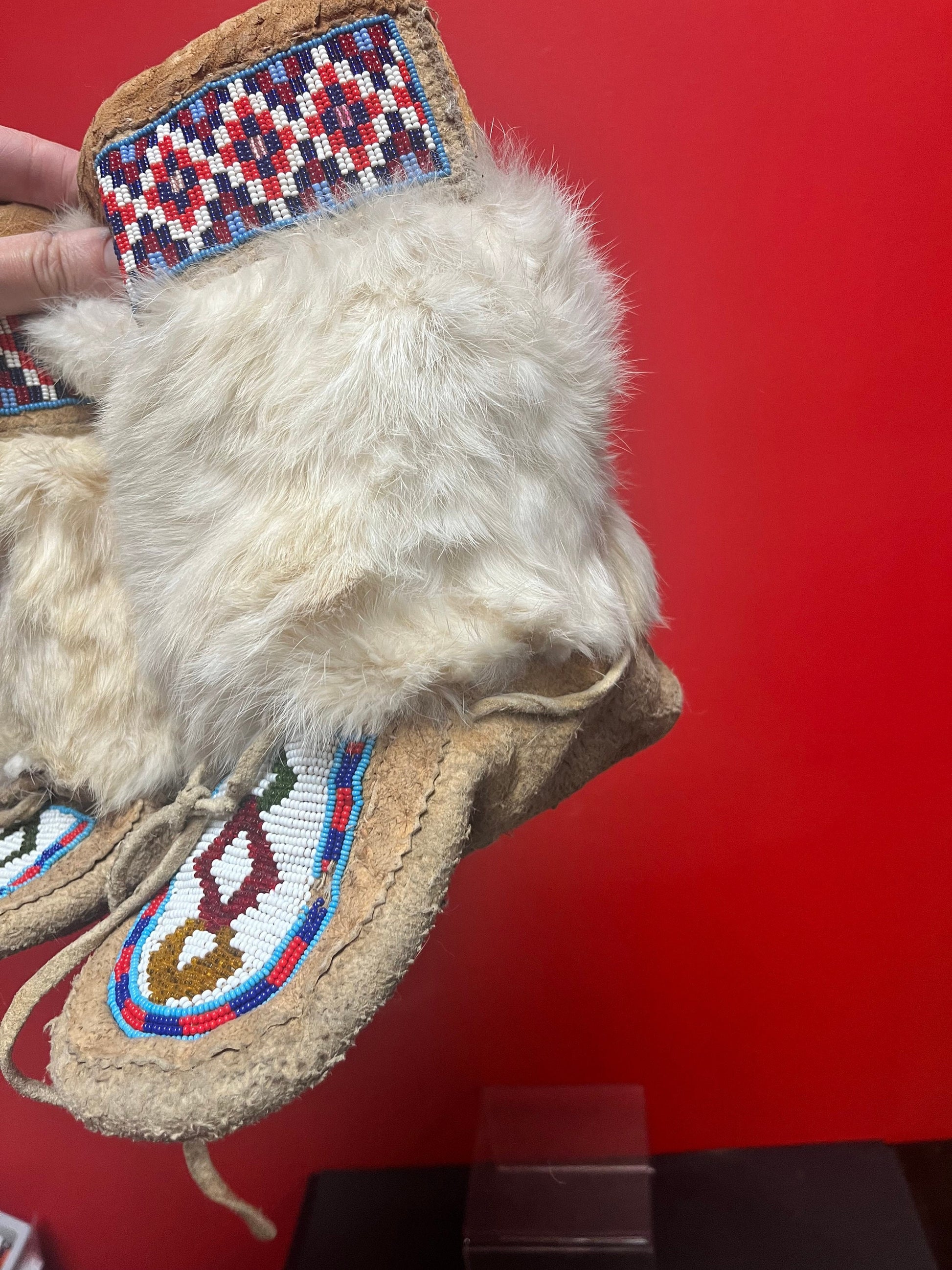 Stunning 9 x 10“ long indigenous Canadian Pacific Northwest coast moccasin boots with beading - wow good antique condition