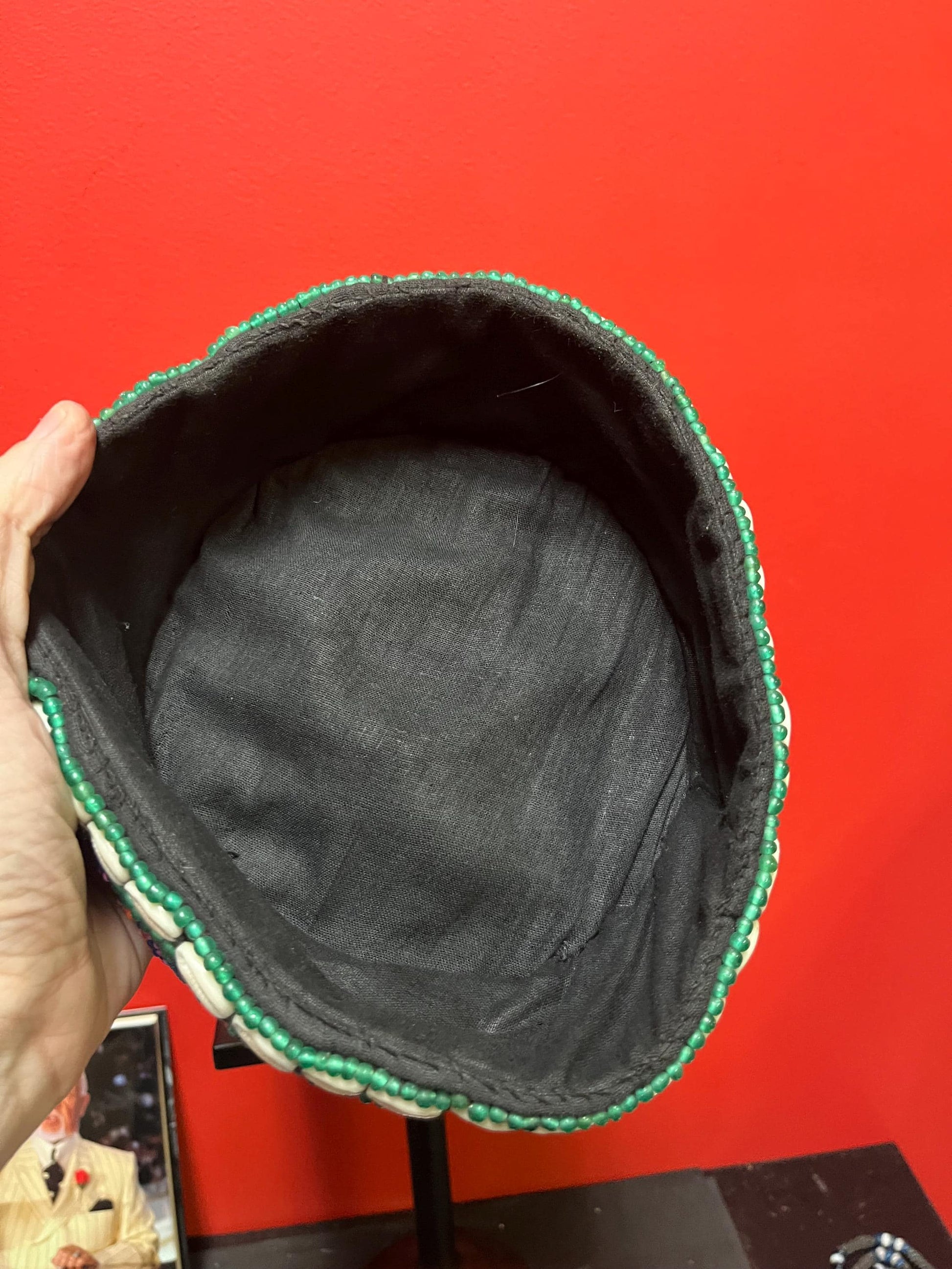 Stunning 9 x 7 x 3 inch Nepalese fabric beaded and shell and turquoise hat unreal cool fit small to medium head