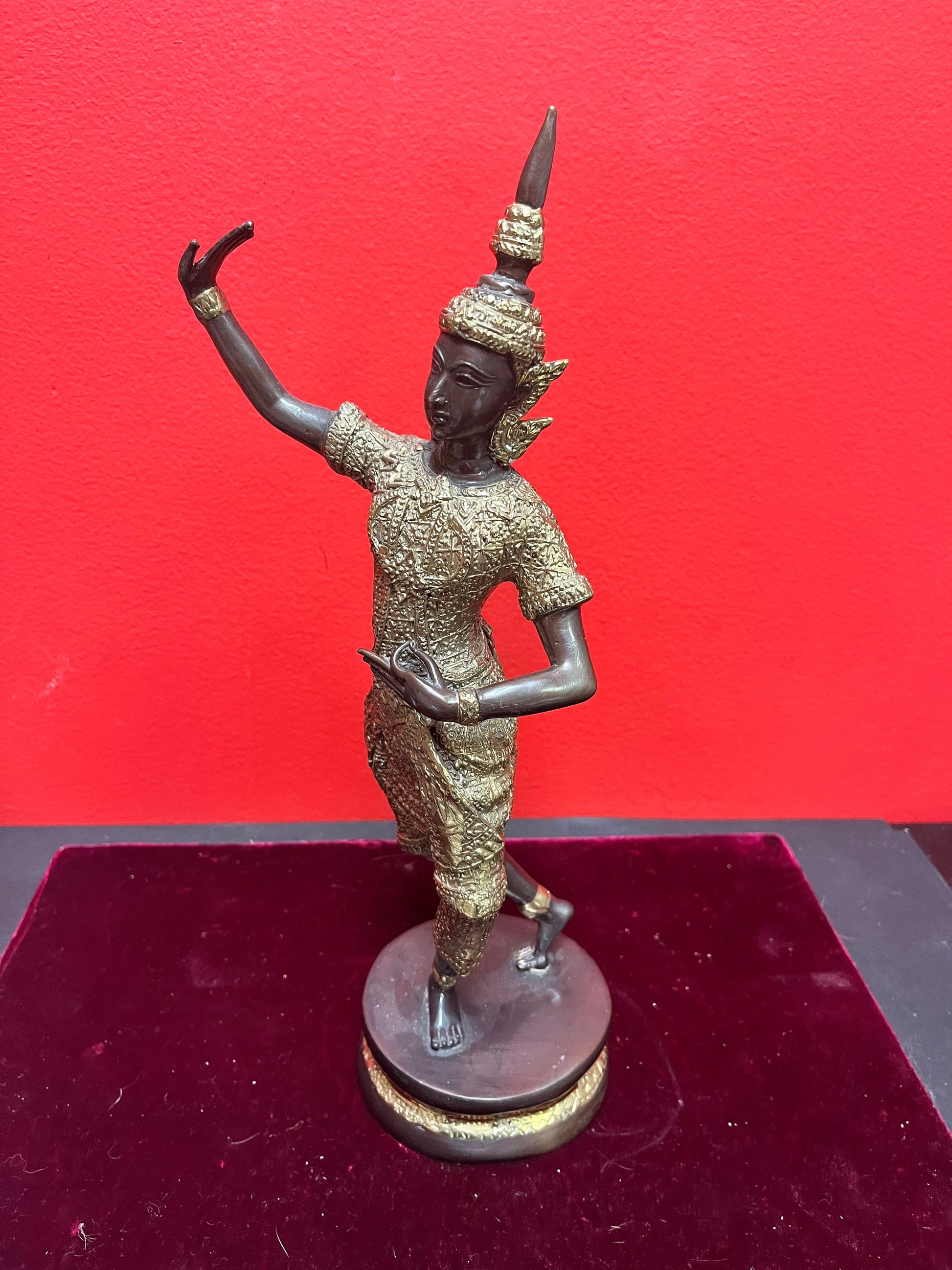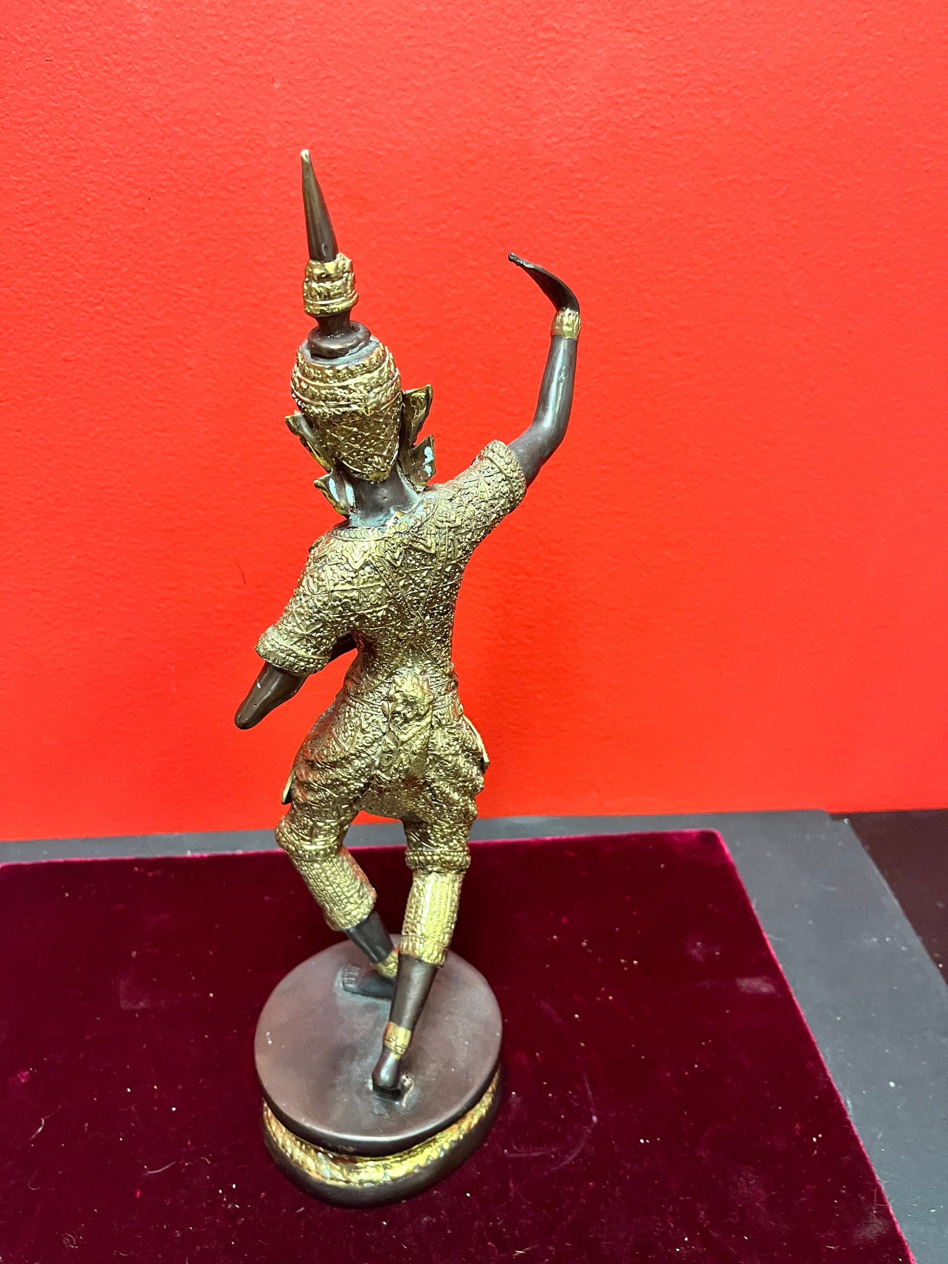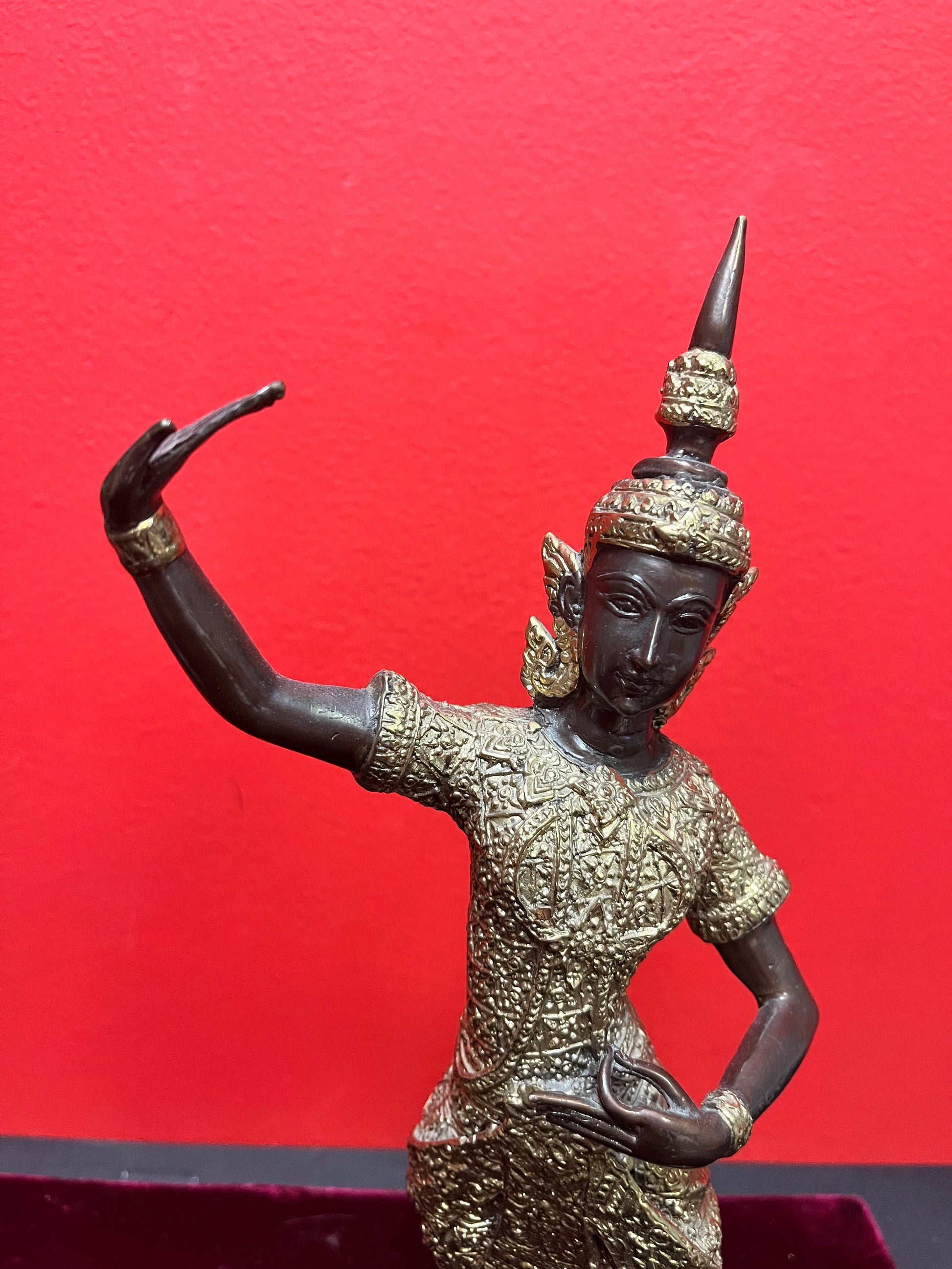 Stunning antique 12 inch high gilt and bronze Thai dancer amazing Patina and imagery