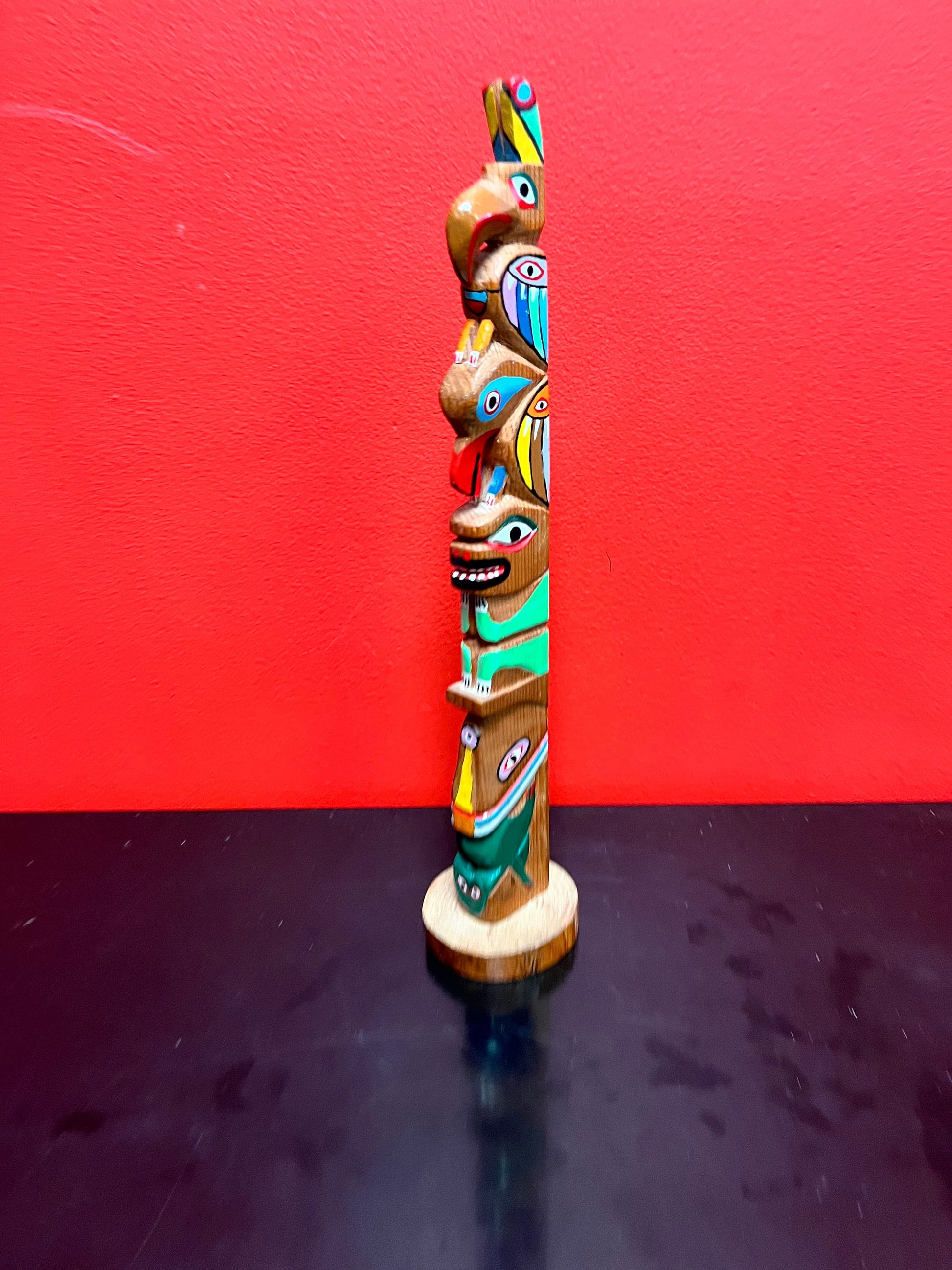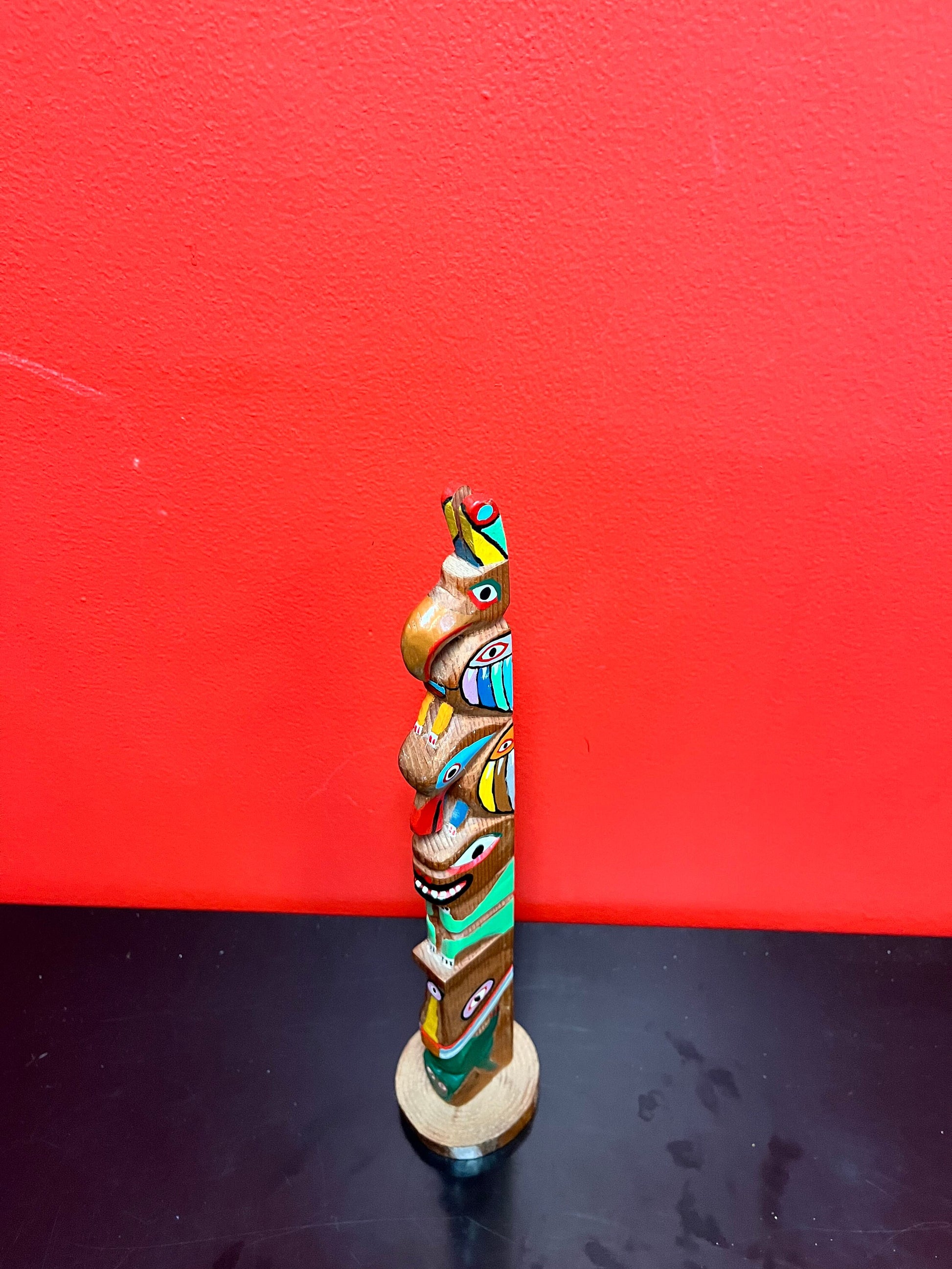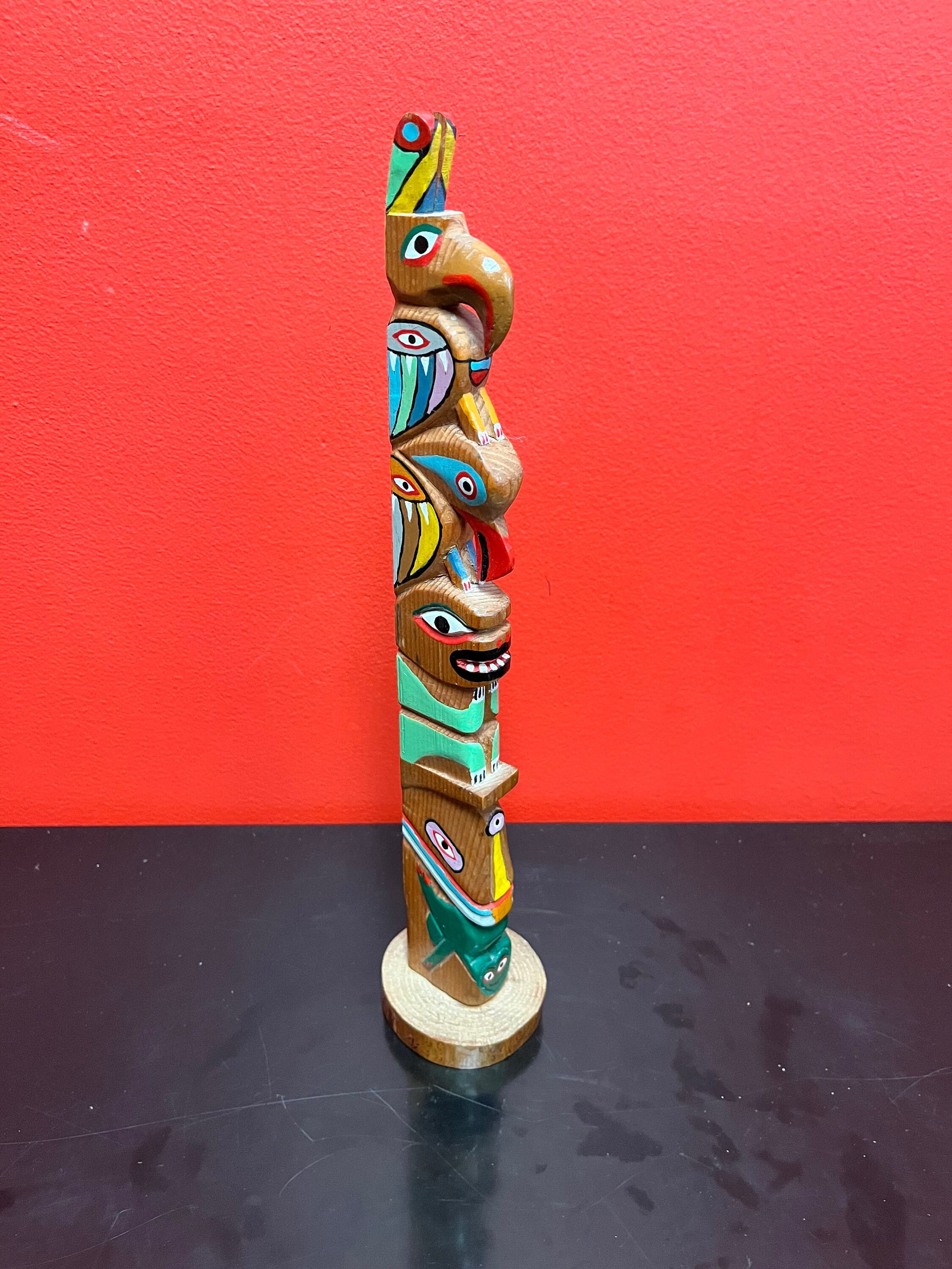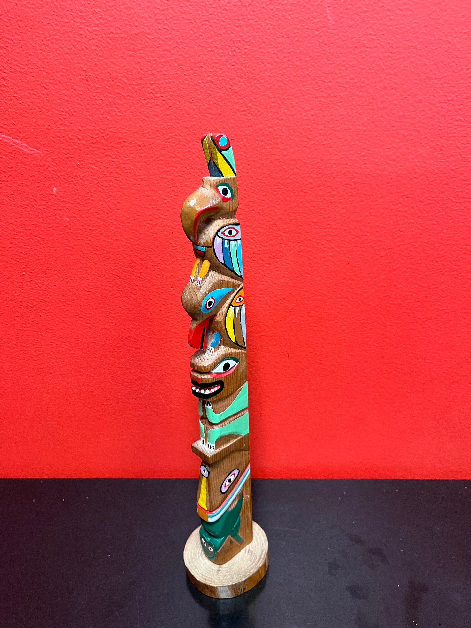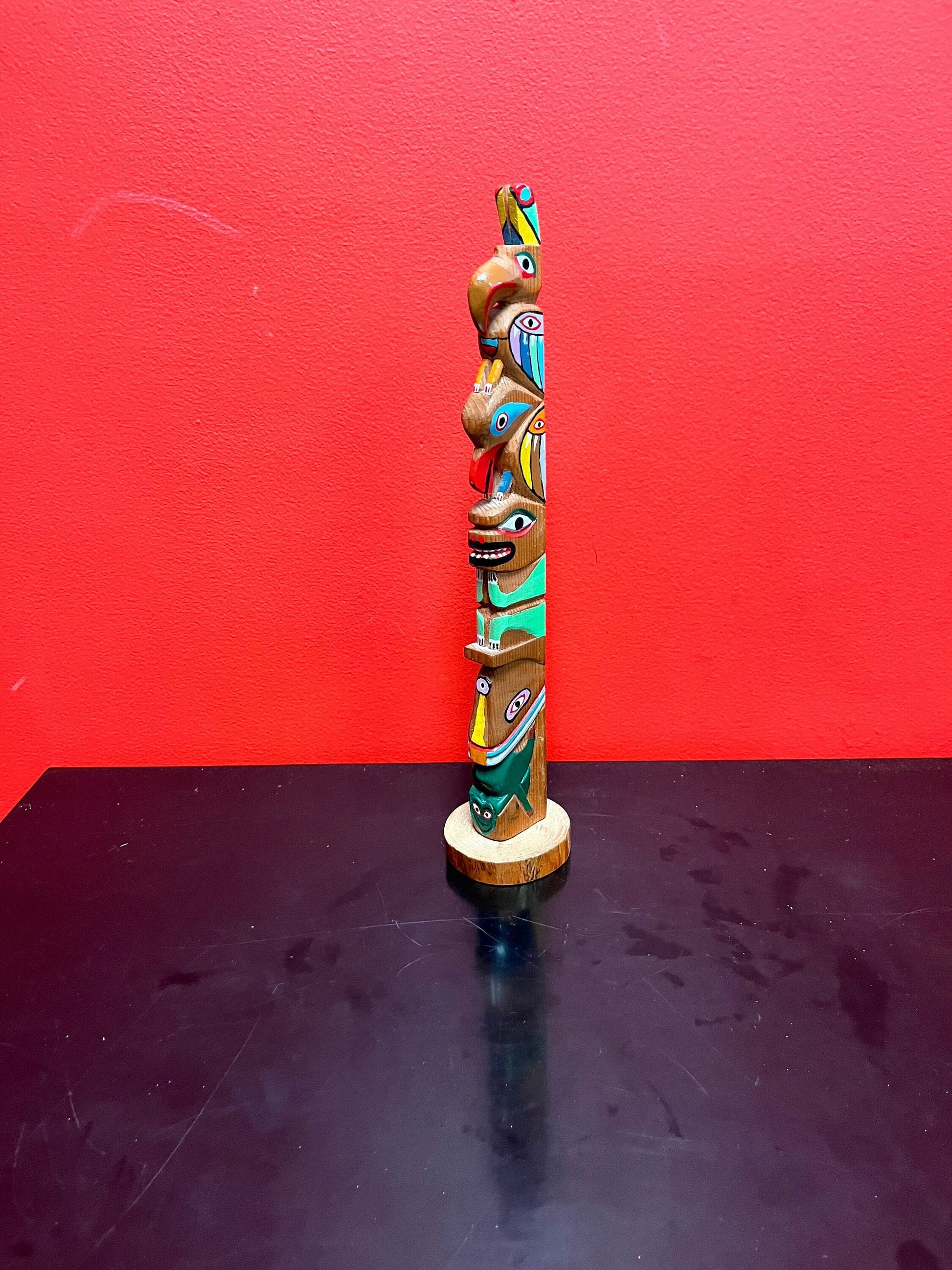 Stunning antique 14 inch tall well detailed indigenous, first Nations pacific northwest coast transformation totem pole