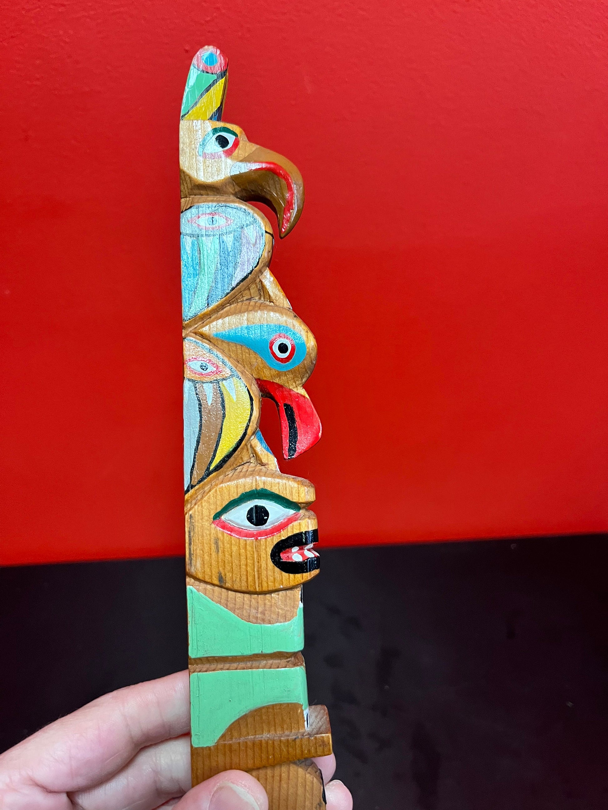 Stunning antique 14 inch tall well detailed indigenous, first Nations pacific northwest coast, transformation, totem pole