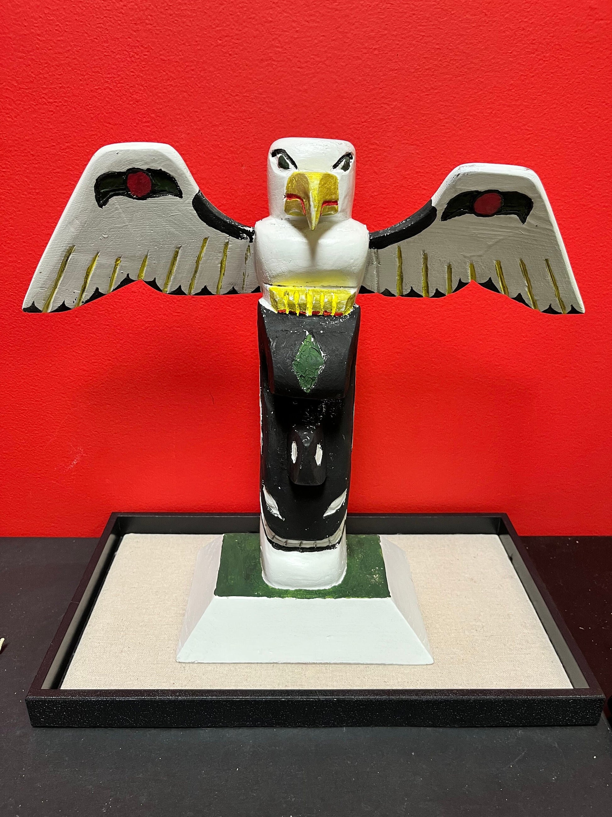 Stunning antique 14 x 13“ wide Indigenous First Nations pacific northwest coast folk art totem Eagle killer whale transformation totem pole