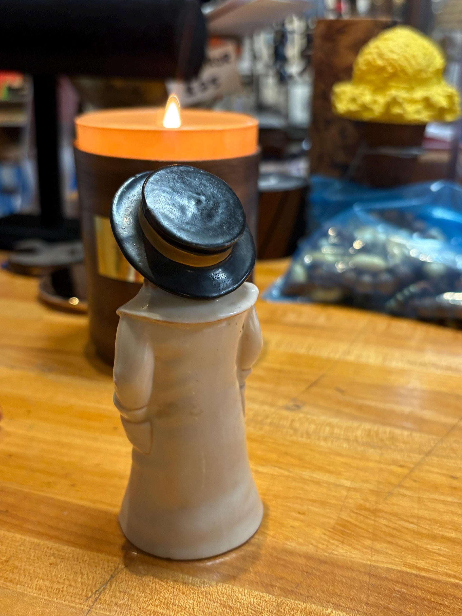 Stunning antique 4.5 inch tall early 19 century Royal Worcester candle snuffer - Lady figure with tiny chip on hat wow