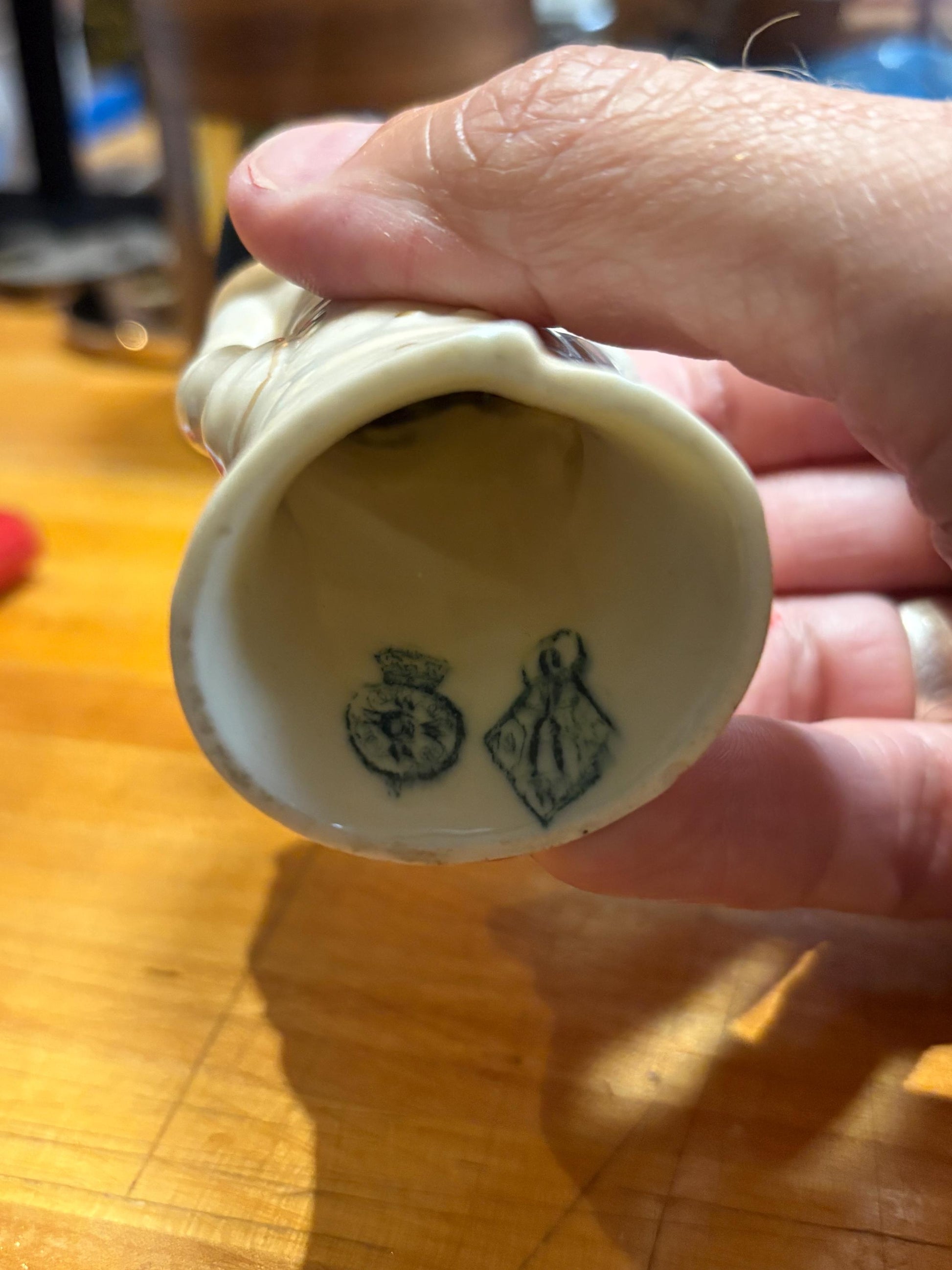 Stunning antique 4.5 inch tall early 19 century Royal Worcester candle snuffer - Lady figure with tiny chip on hat — wow