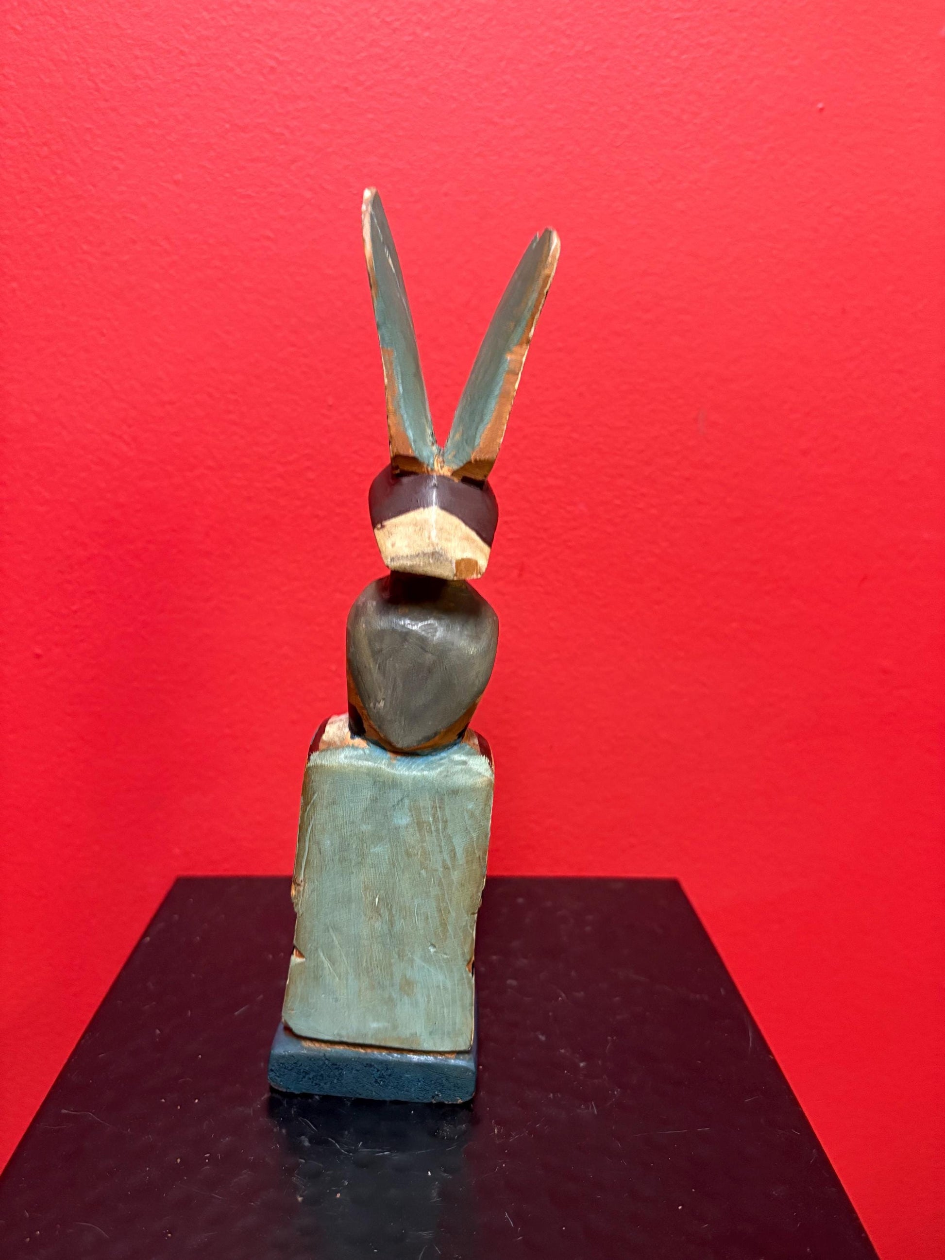 Stunning antique 9 inch primitive polychrome first nation Pacific Northwest Coast transformation totem pole small chip wow