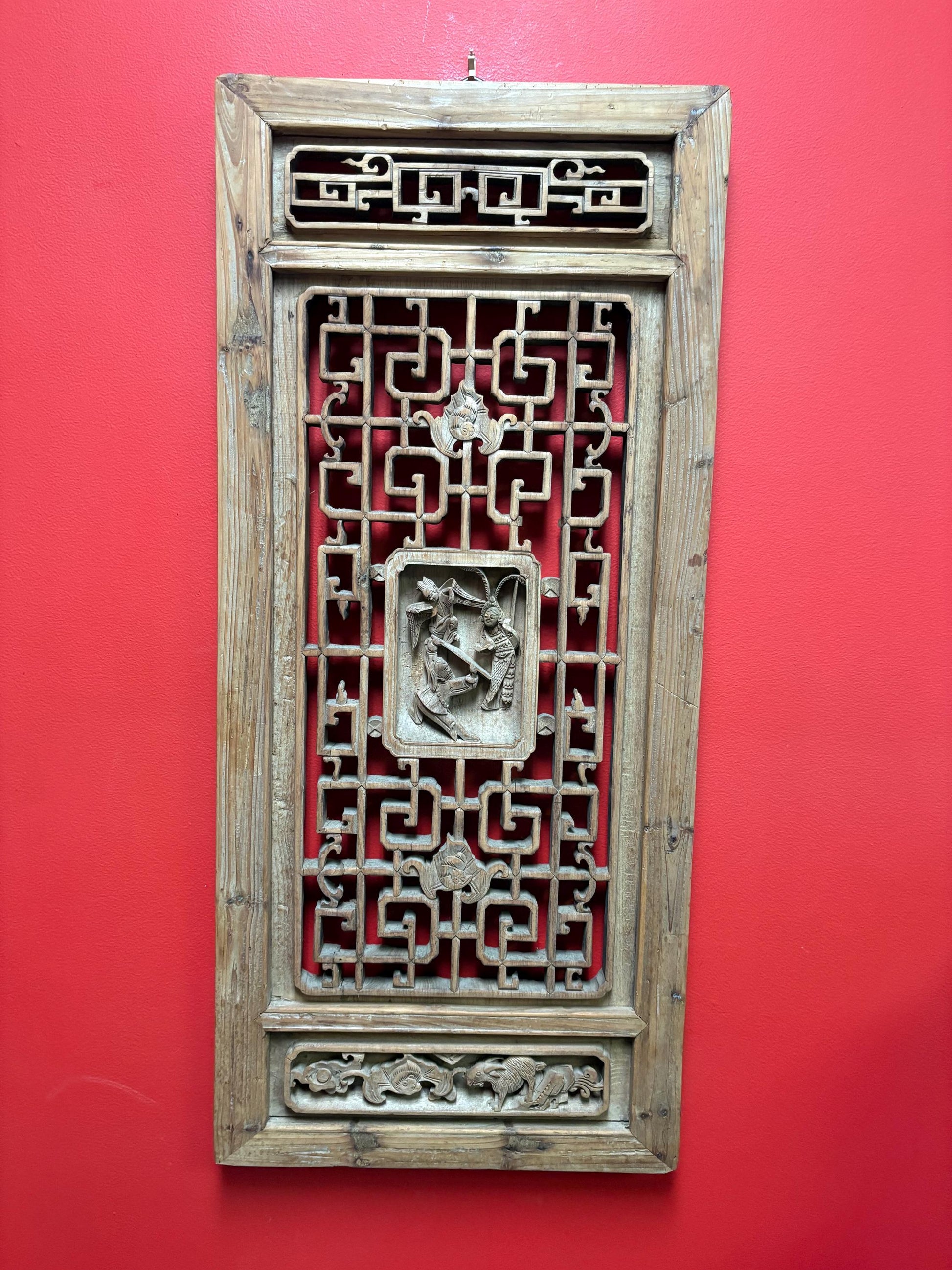 Stunning antique Chinese hanging carved plaque intricate detail and signed them back 34 x 15 x 1.5 thick unreal Chinese art