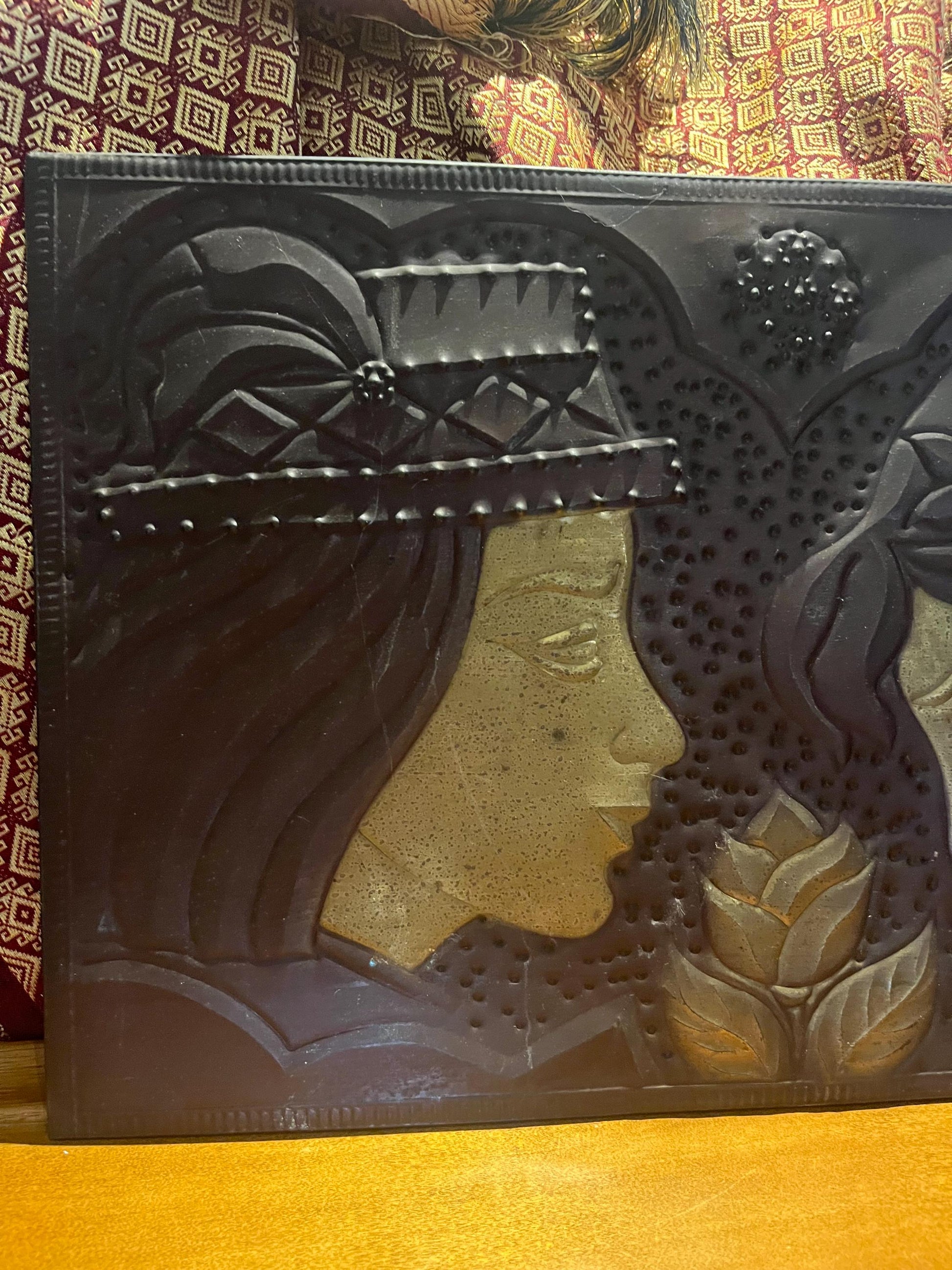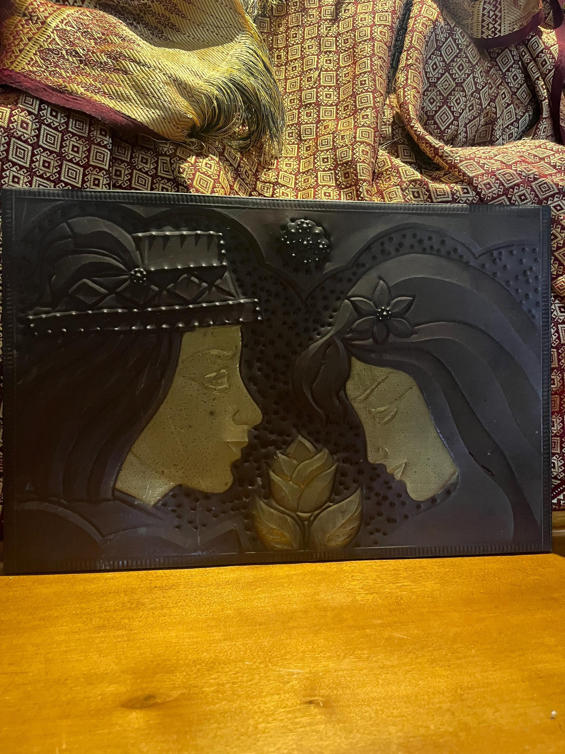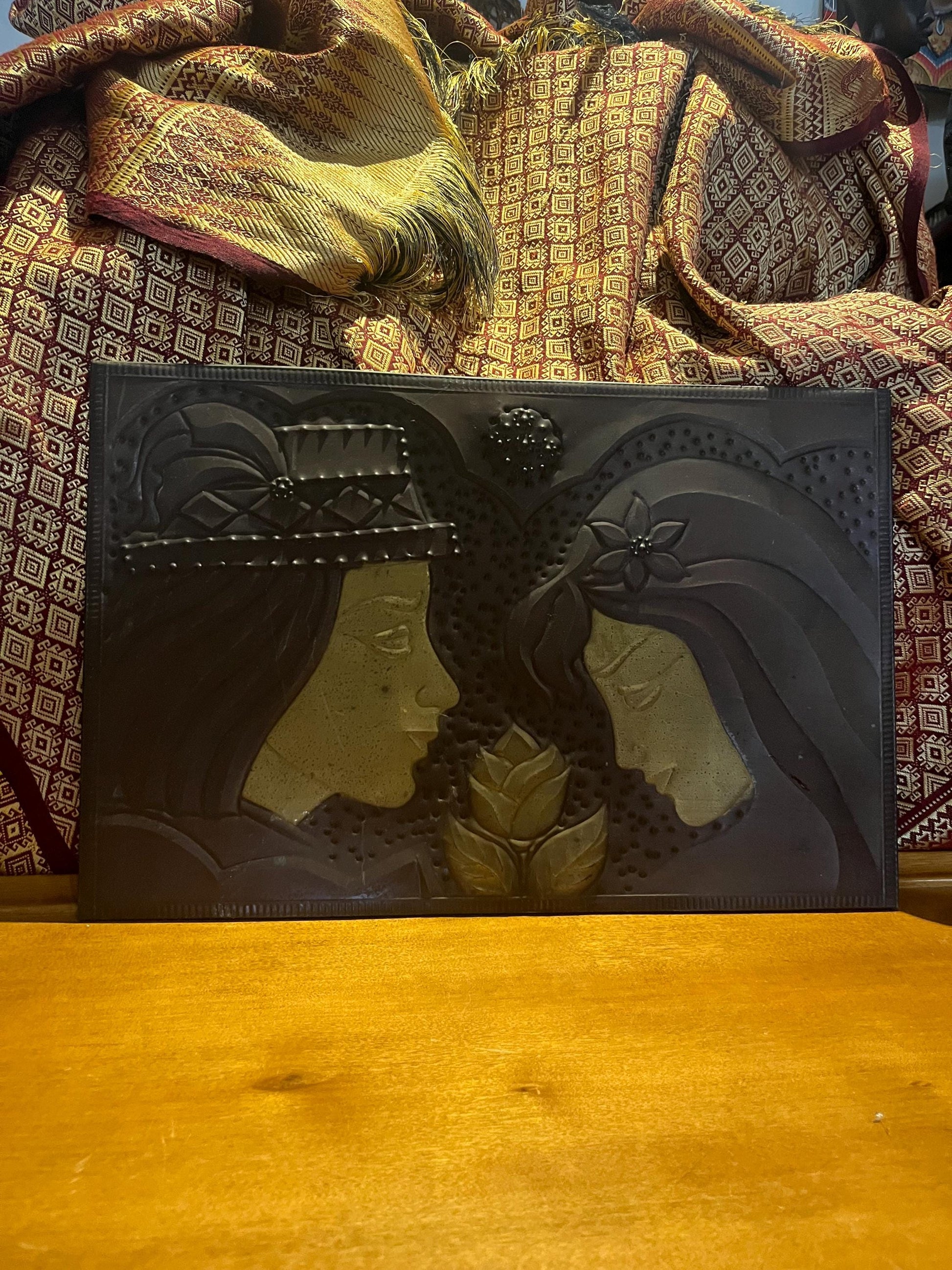 Stunning, antique copper plaque depicting lovers religious overtones wonderful quality and ready to hang - 17 x 12 inches