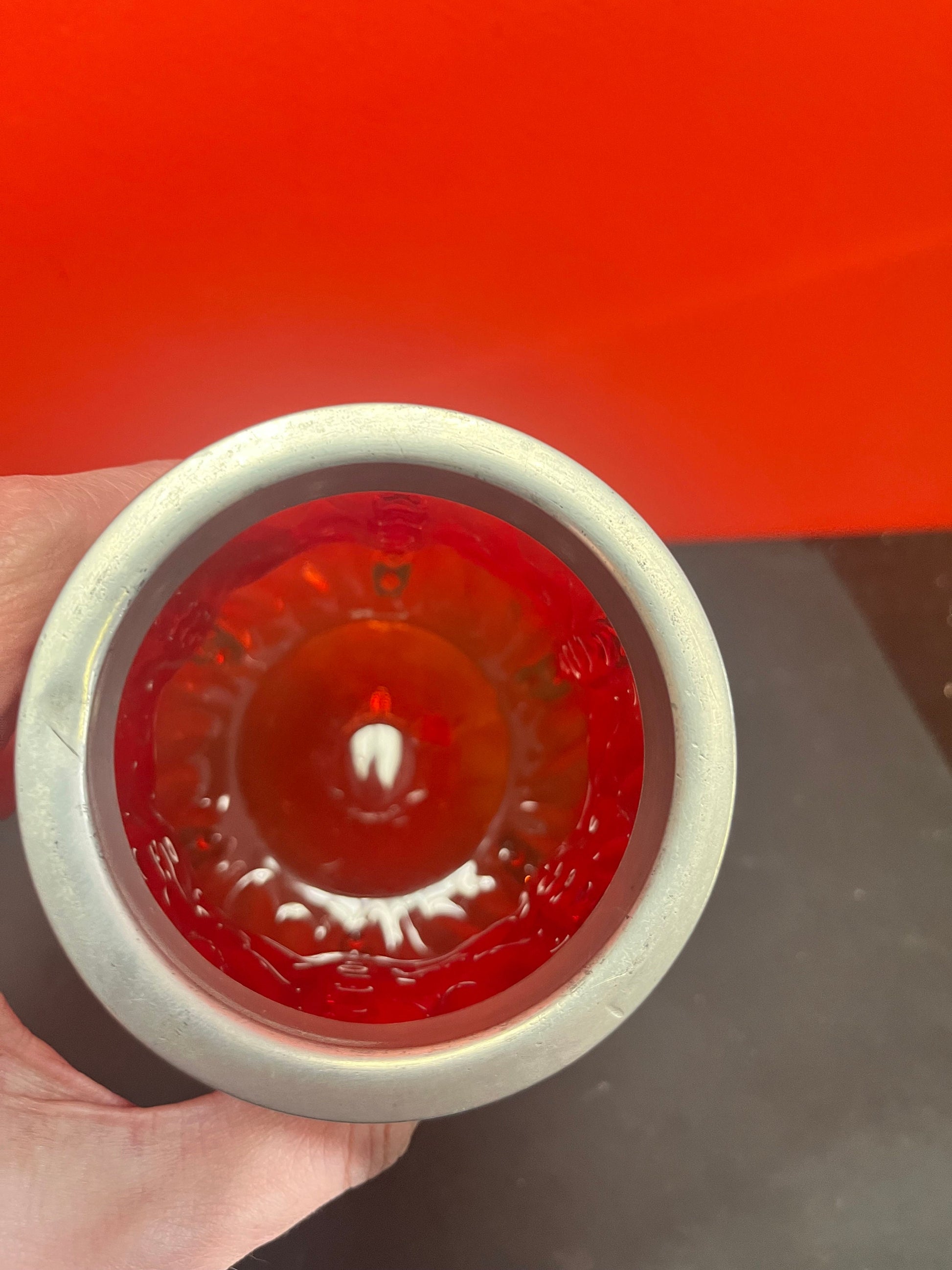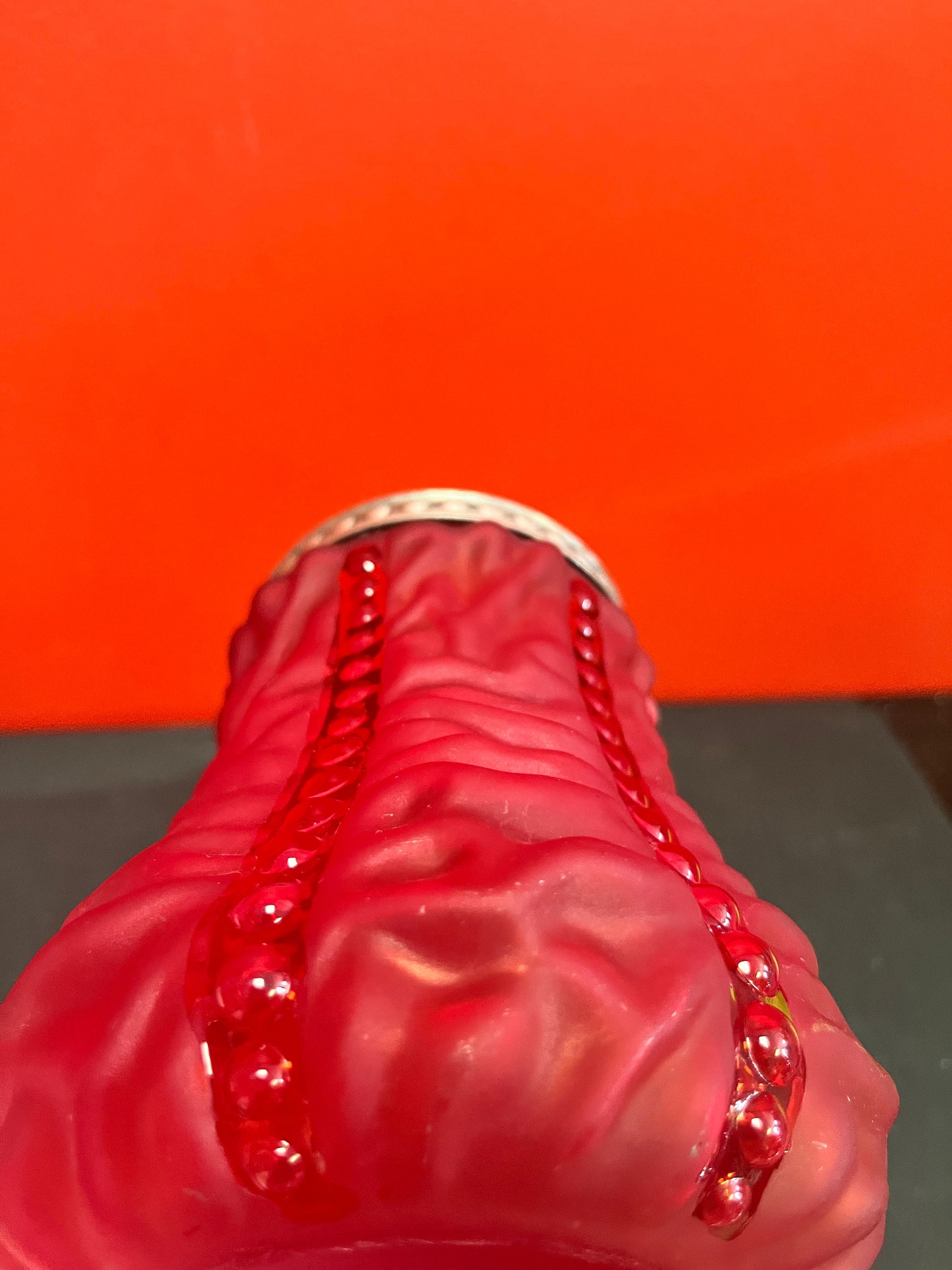 Stunning antique English 6 inch high ruby glass vase with silver plate top Mint condition and illuminating effect