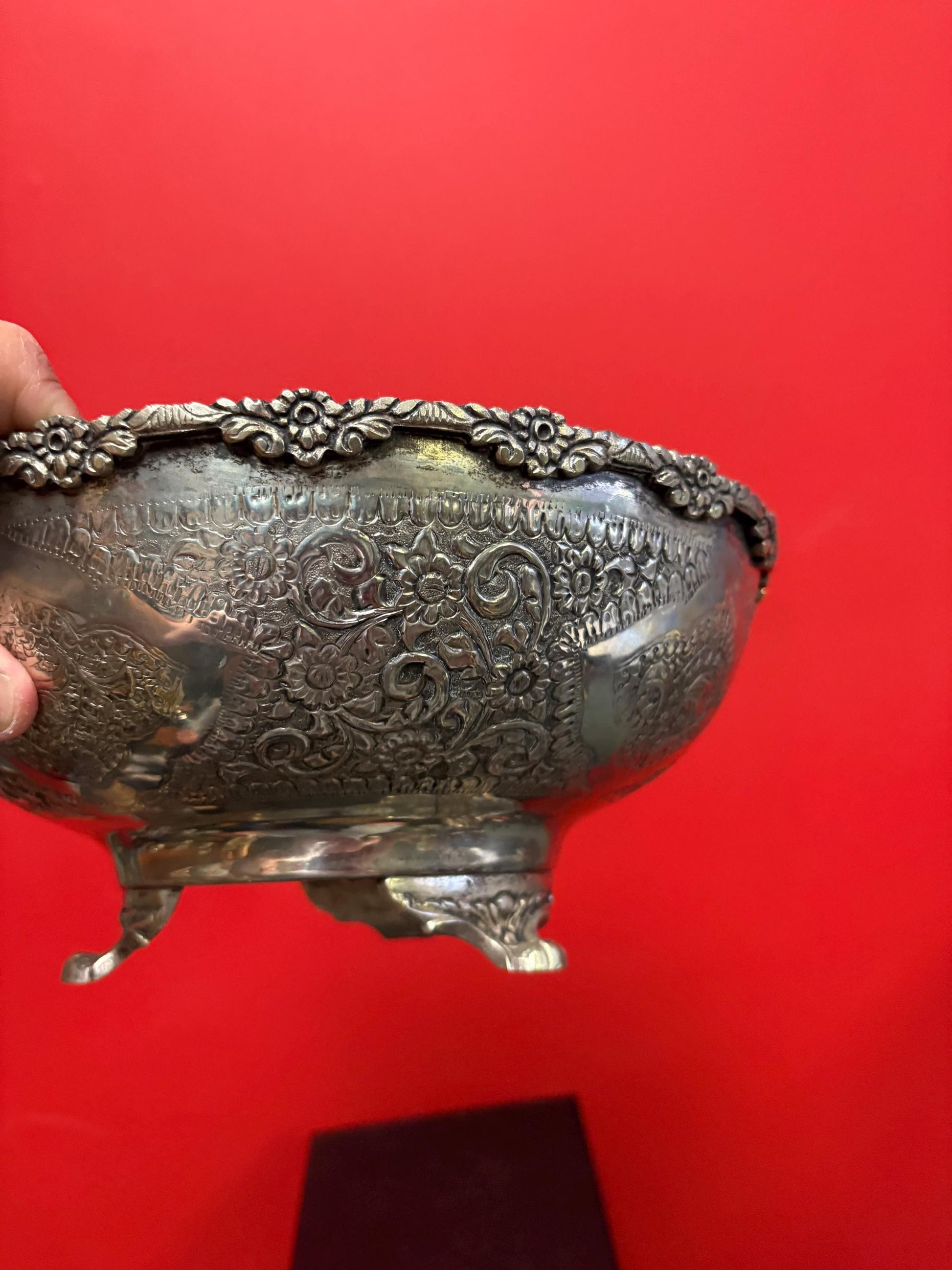 Stunning antique English silver plated, heavily decorated bowl 10 x 6 high great quality and perfect gift wow price