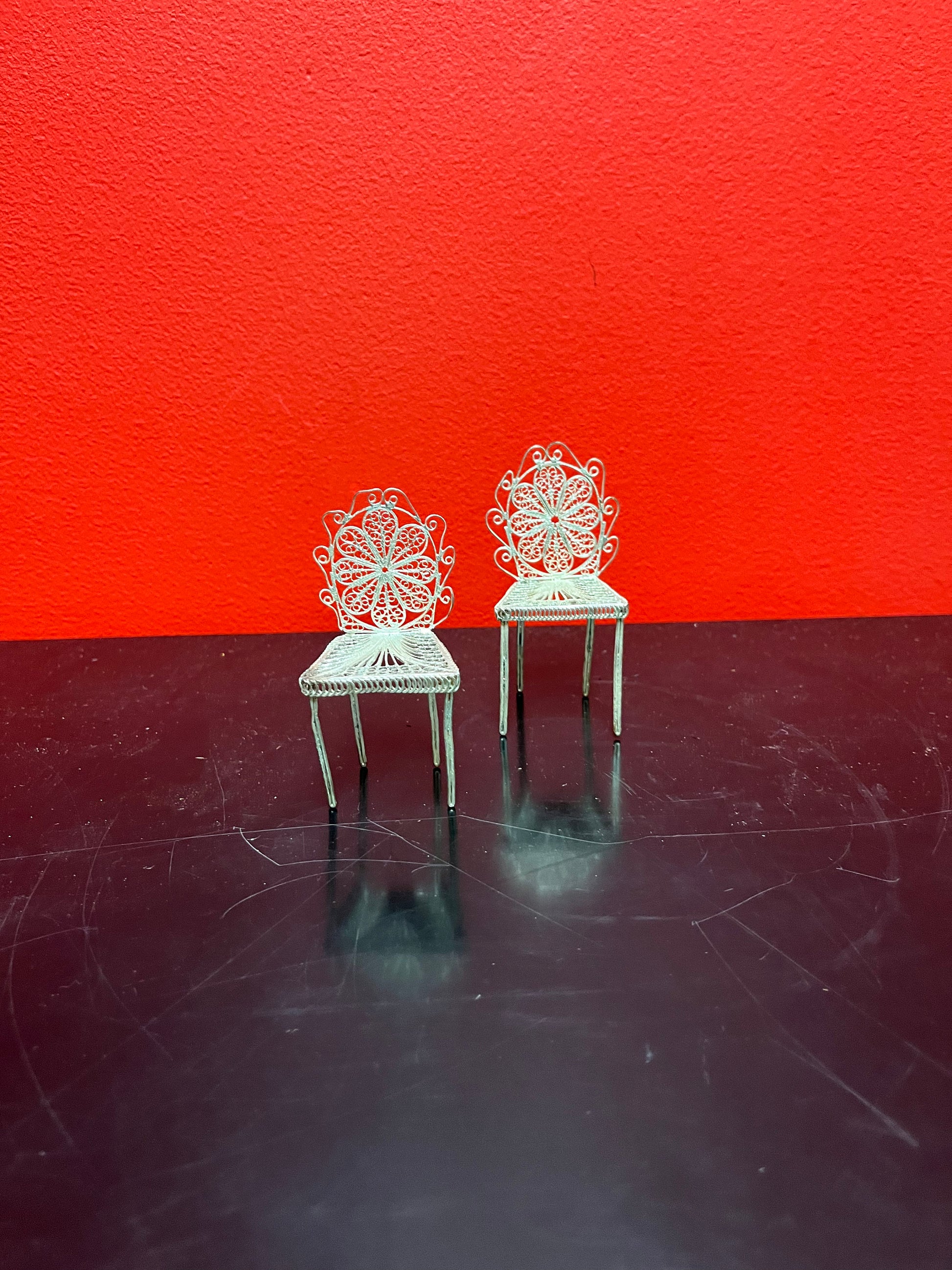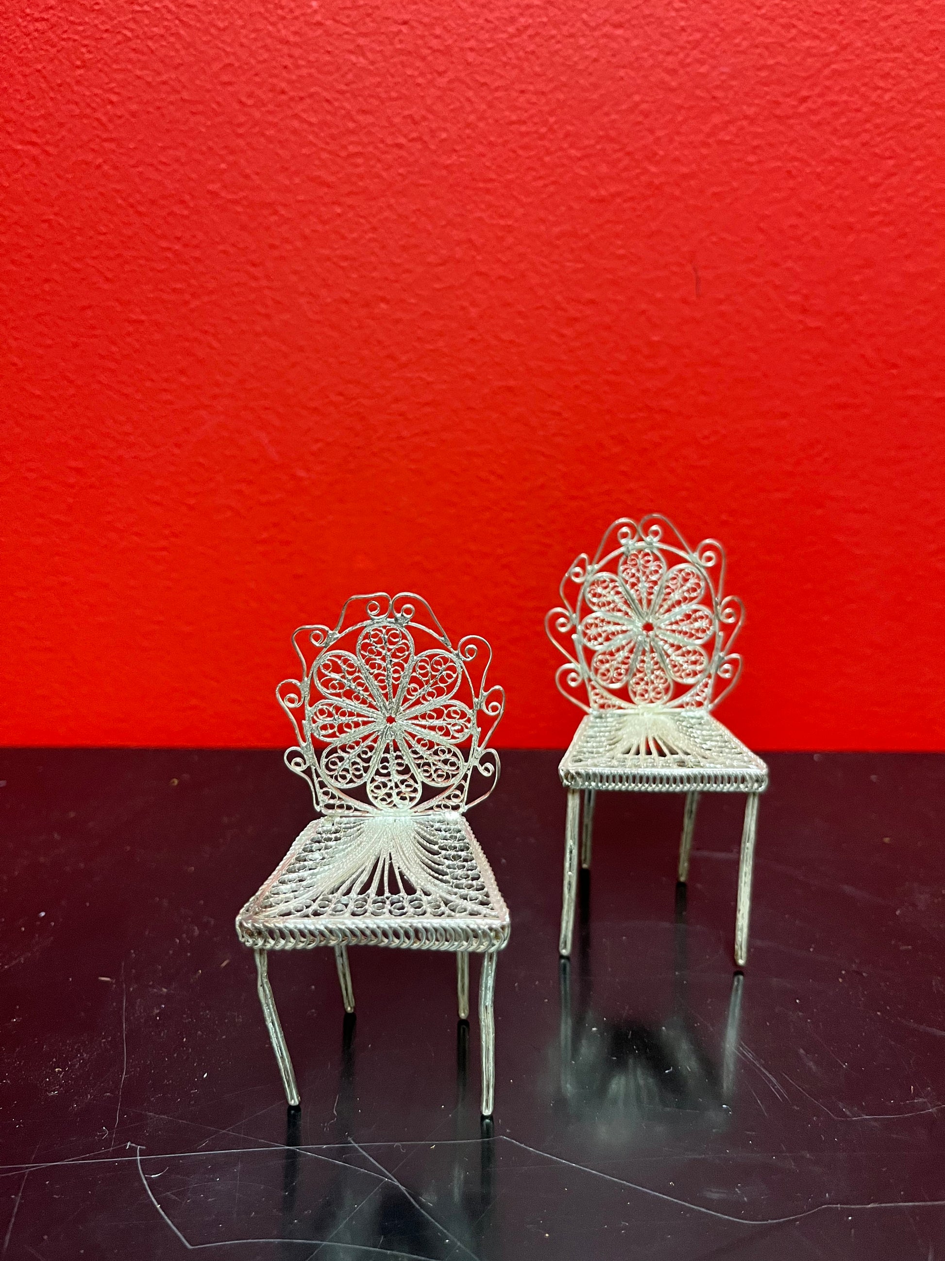 Stunning antique European silver filagree, miniature dining room chair 5 inches tall absolutely wonderful quality multiple available