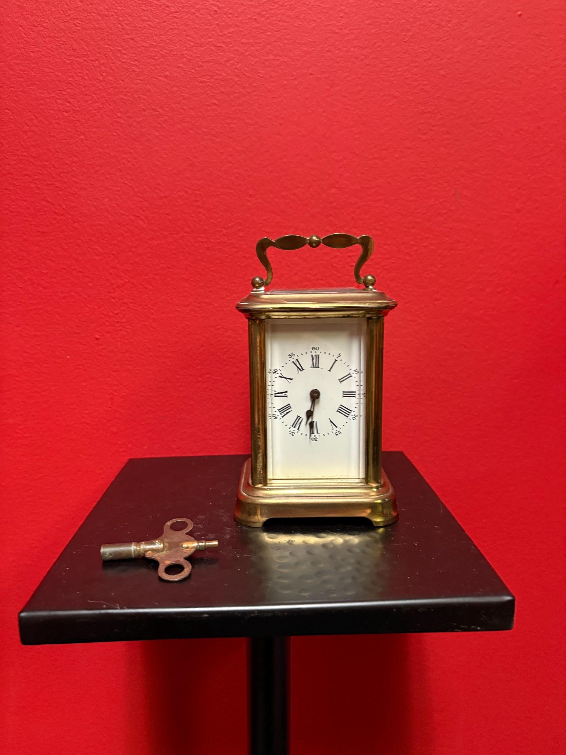 Stunning antique French 6 inch tall brass carriage clock in working order with key