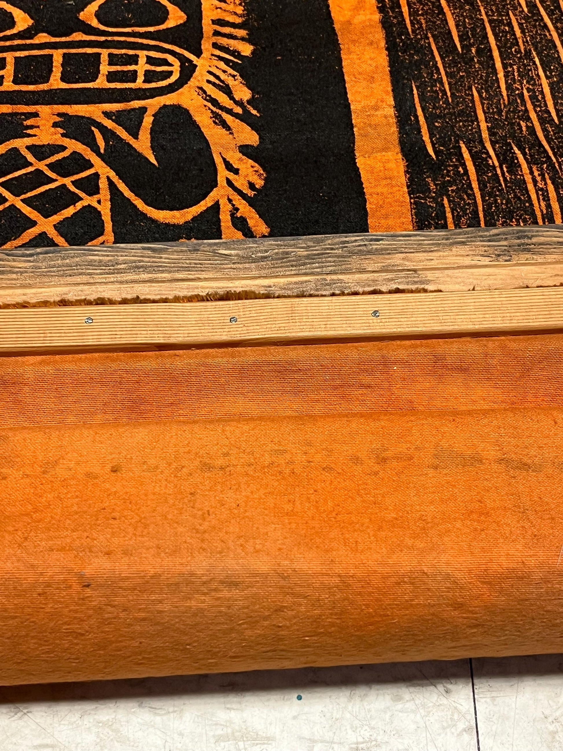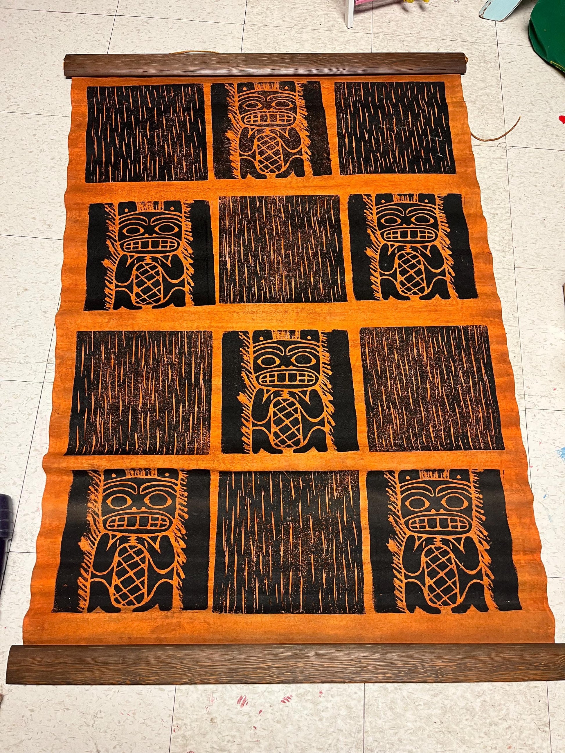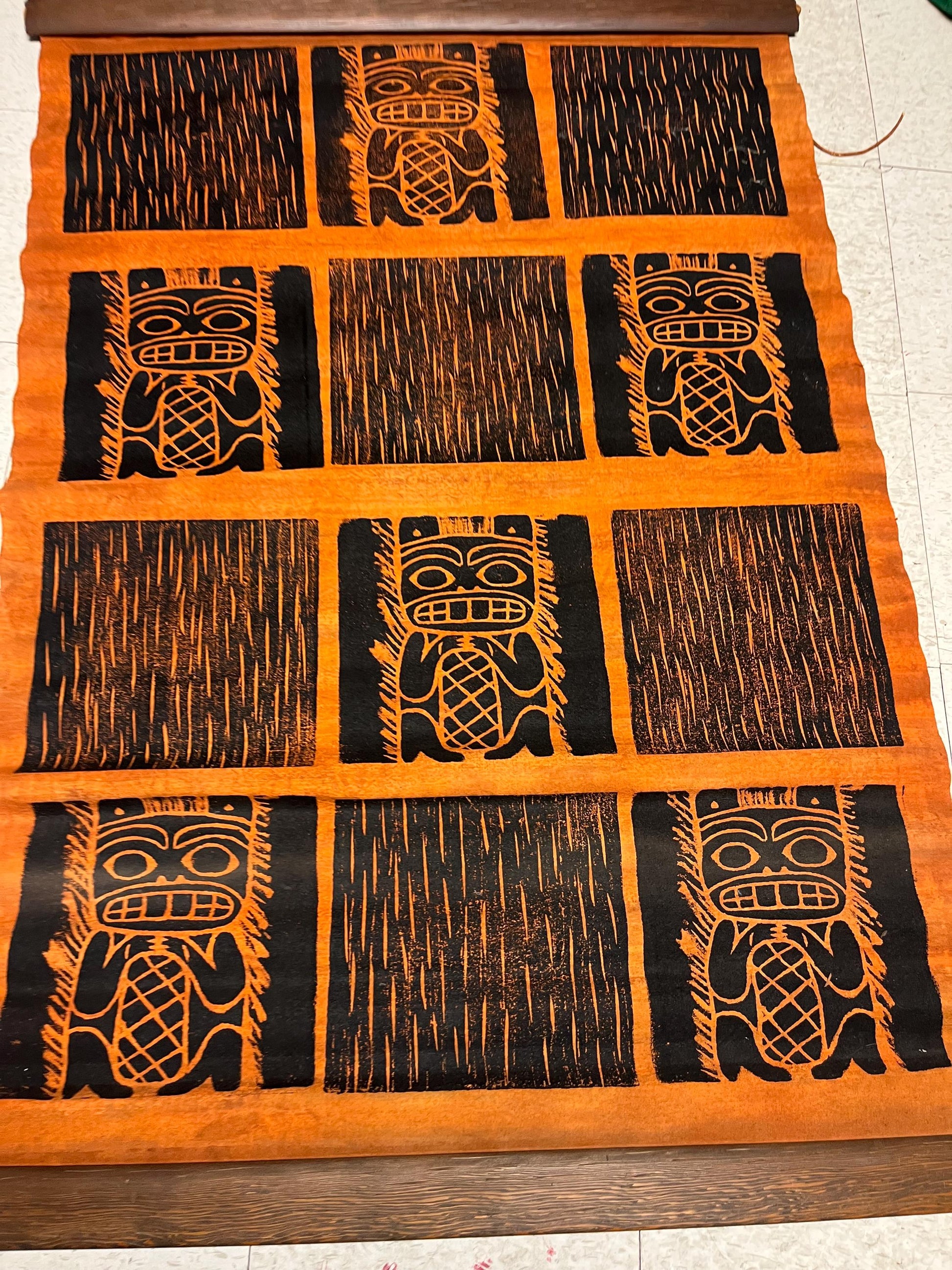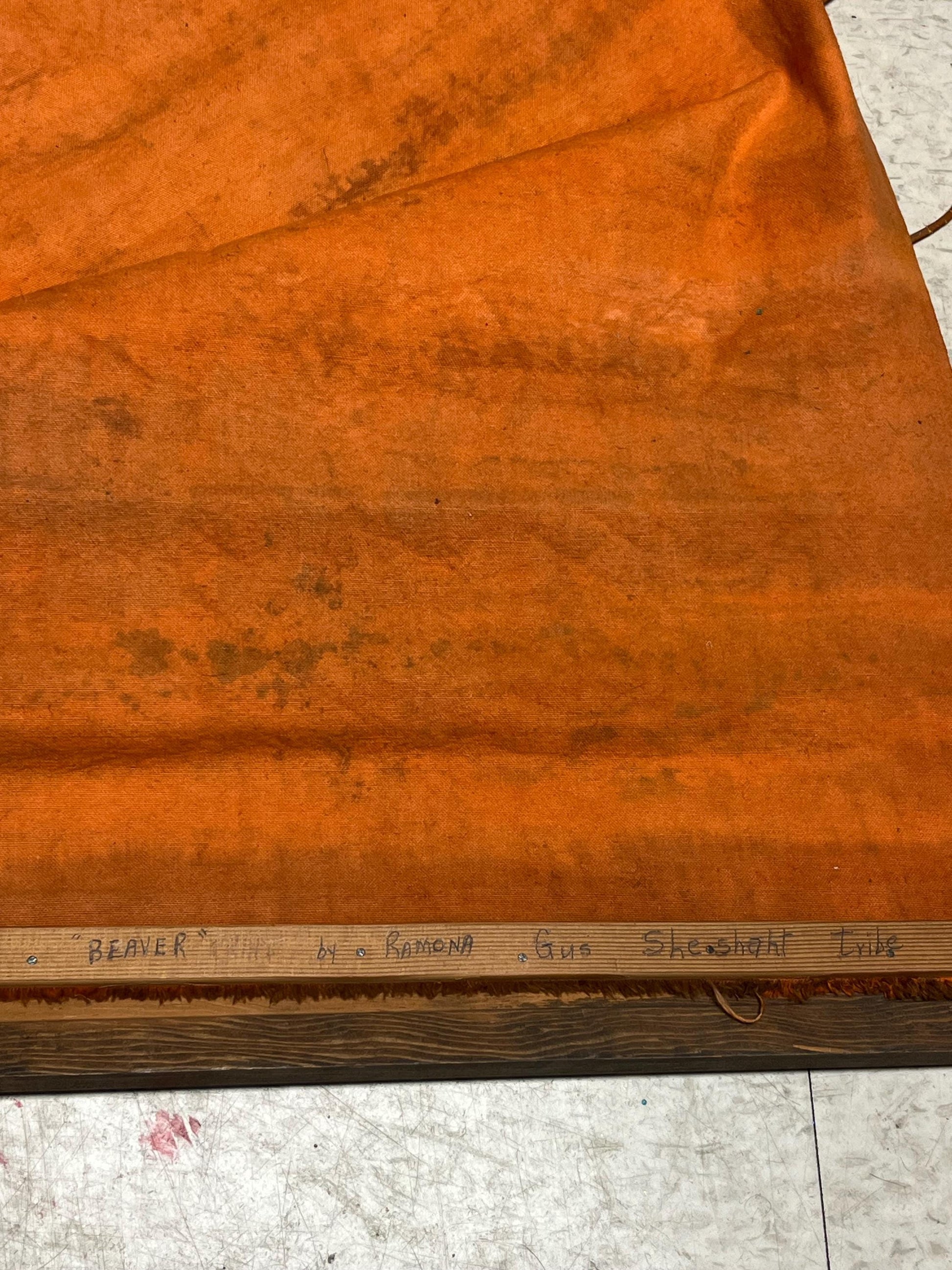 Stunning antique indigenous first nation Pacific Northwest Coast signed wall hanging of bears painted on fabric 51 x 36“ needs hanger
