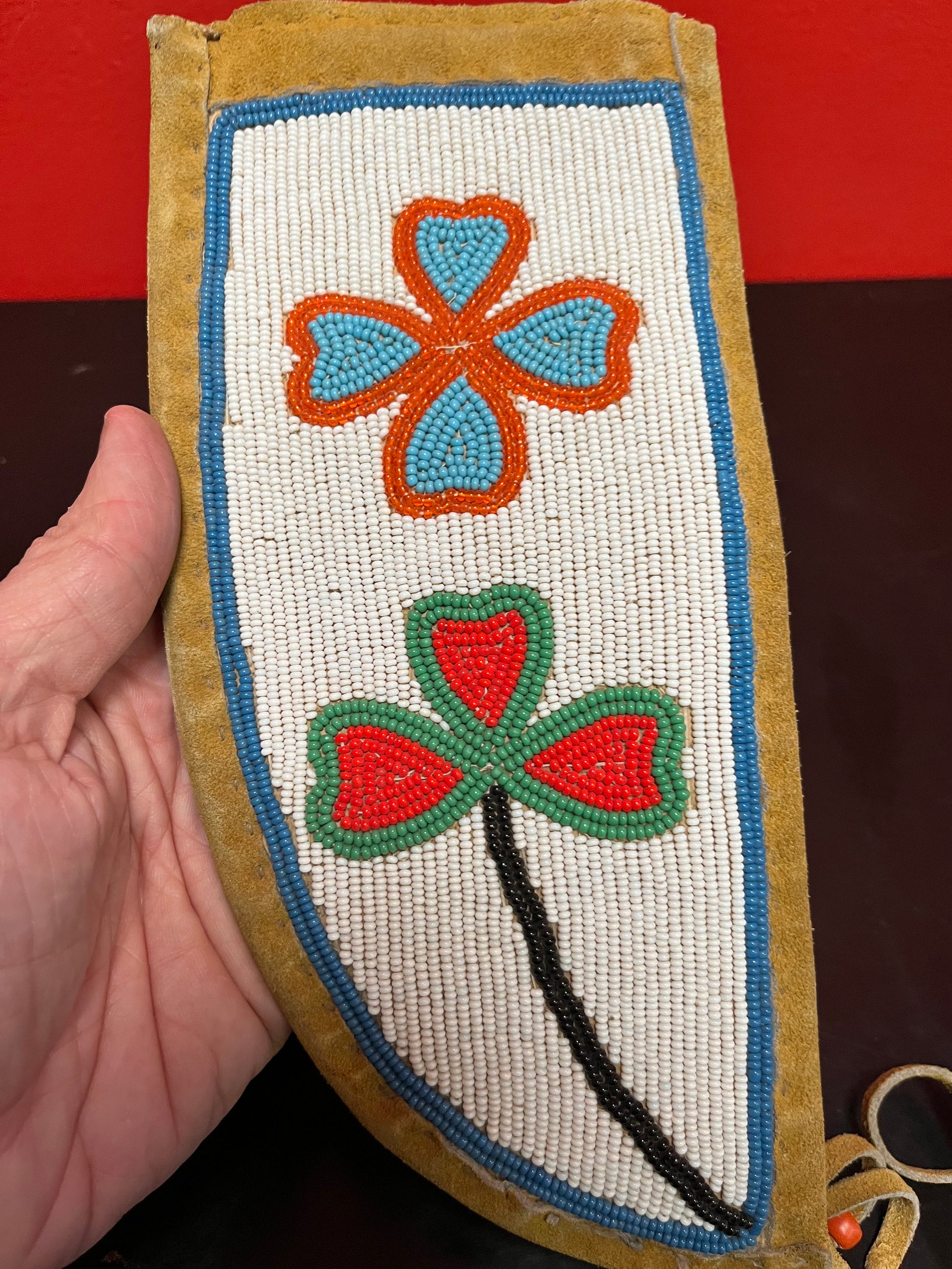 Stunning antique indigenous first nations pacific northwest coast 18 inch long heavily beaded knife sheath or cover wow