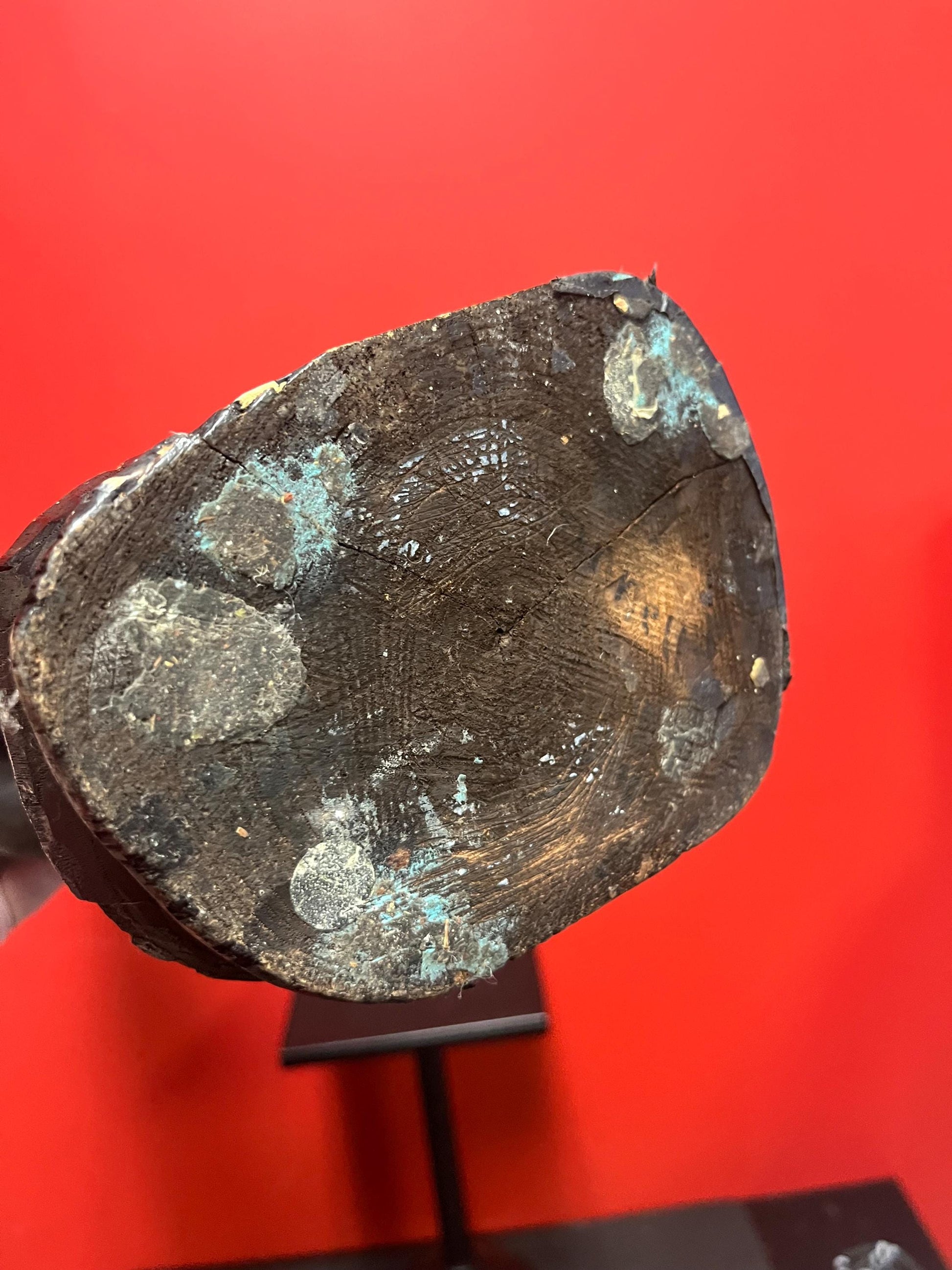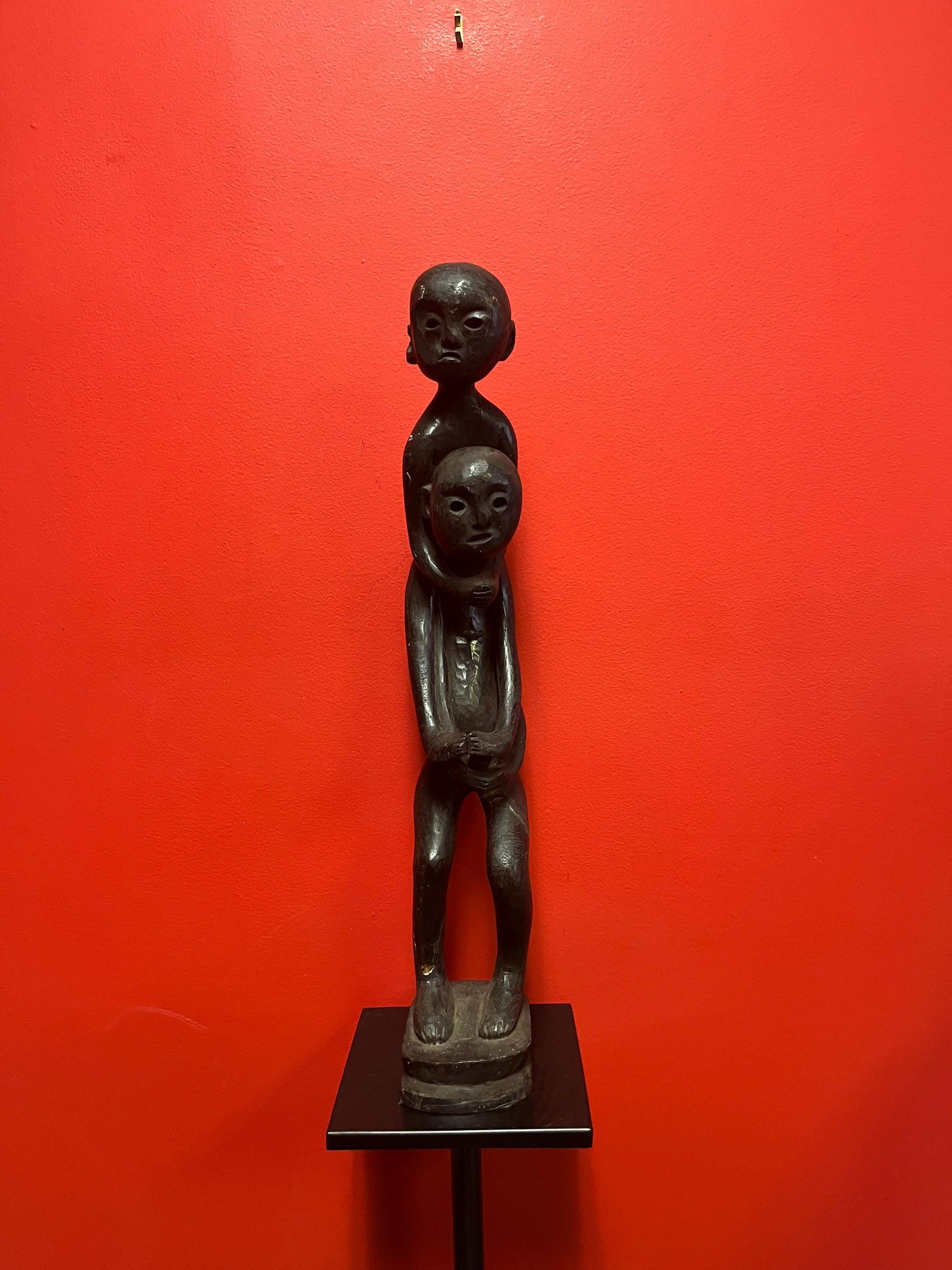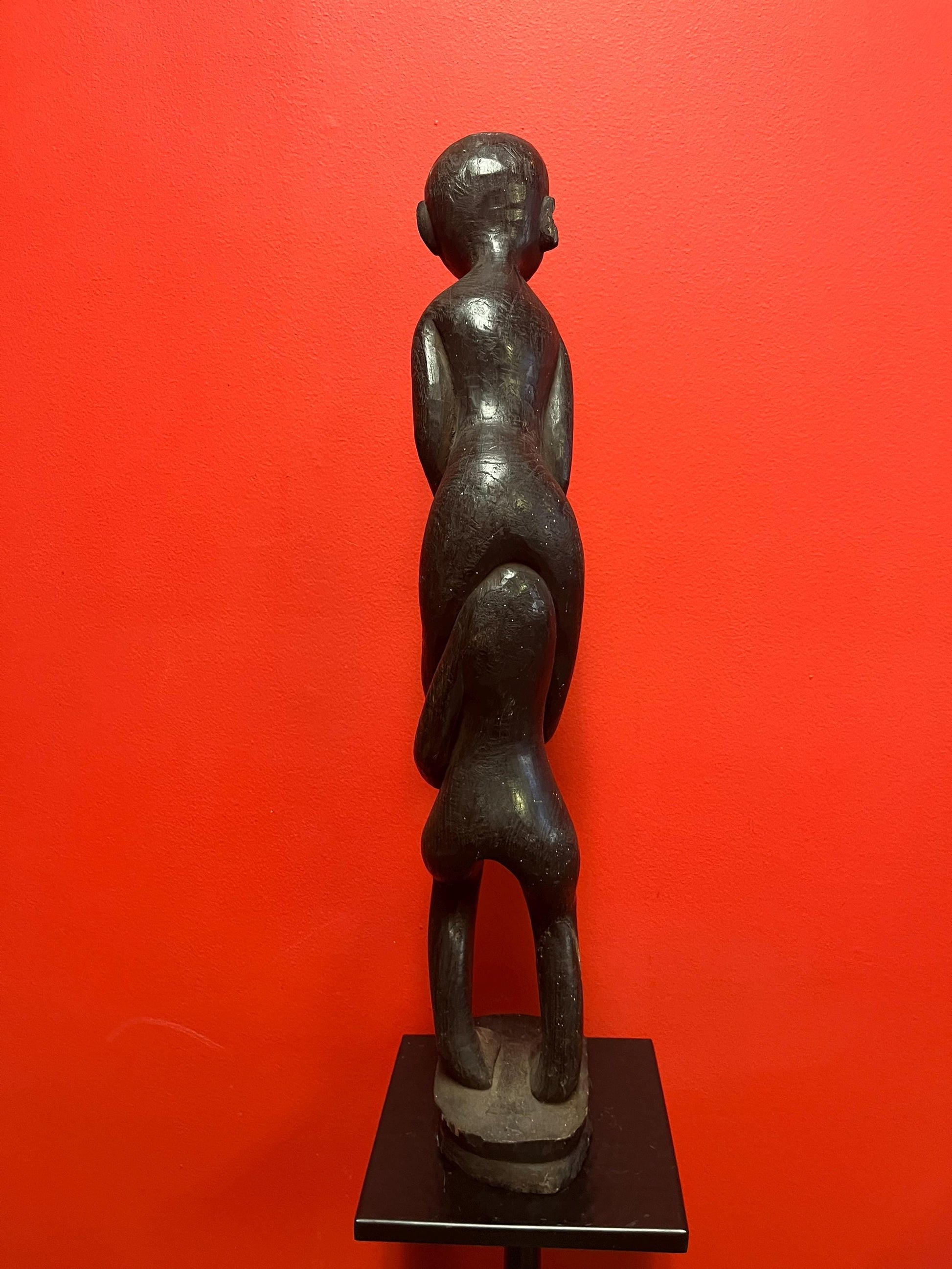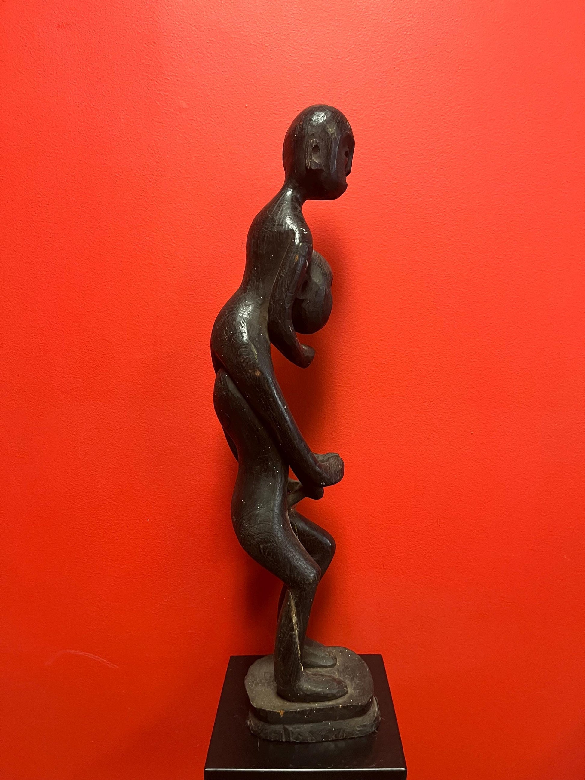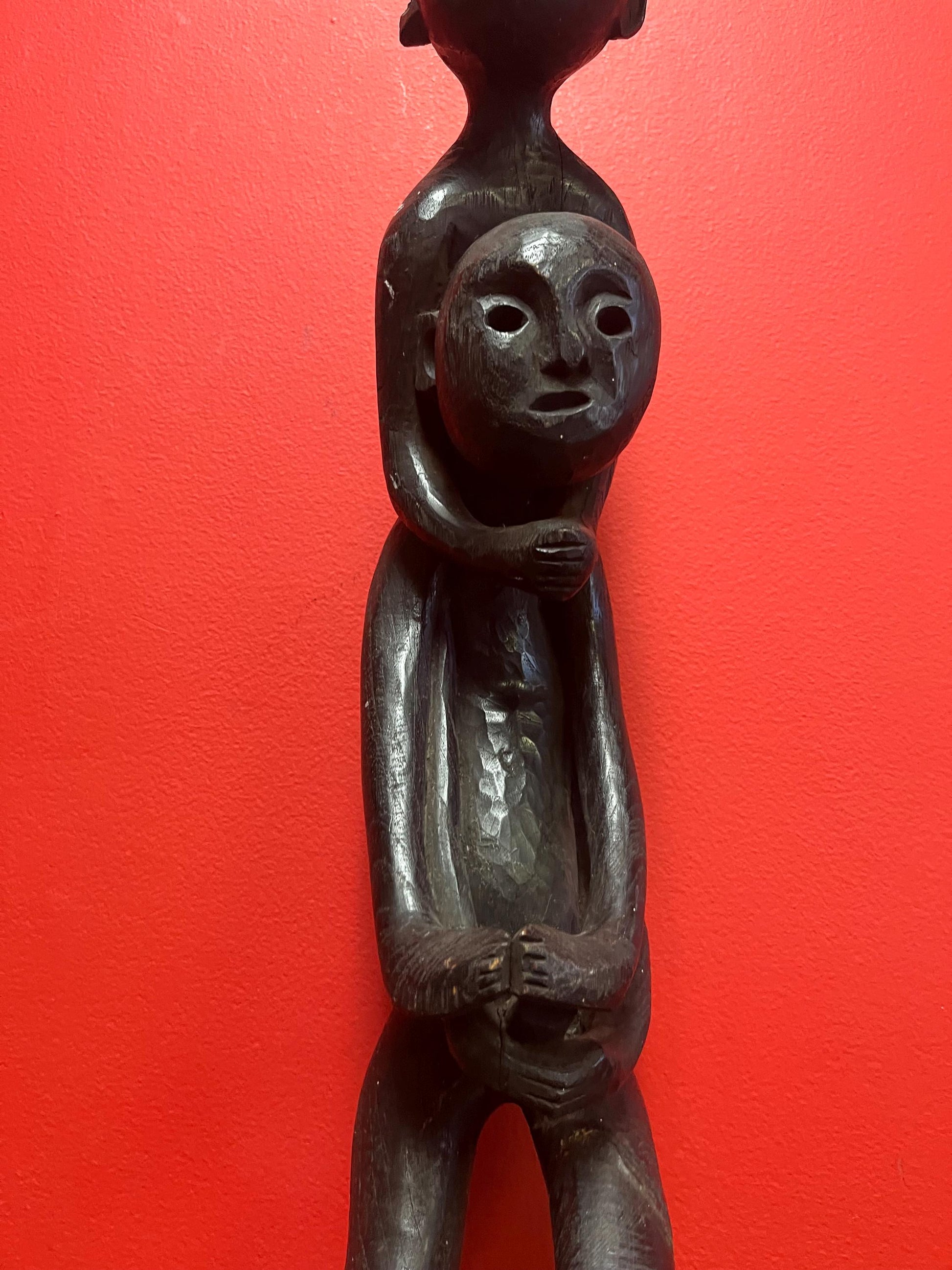 Stunning antique Indonesian teak statue of a musical player with mice powerful imagery and 29 inches tall some age cracks see photos