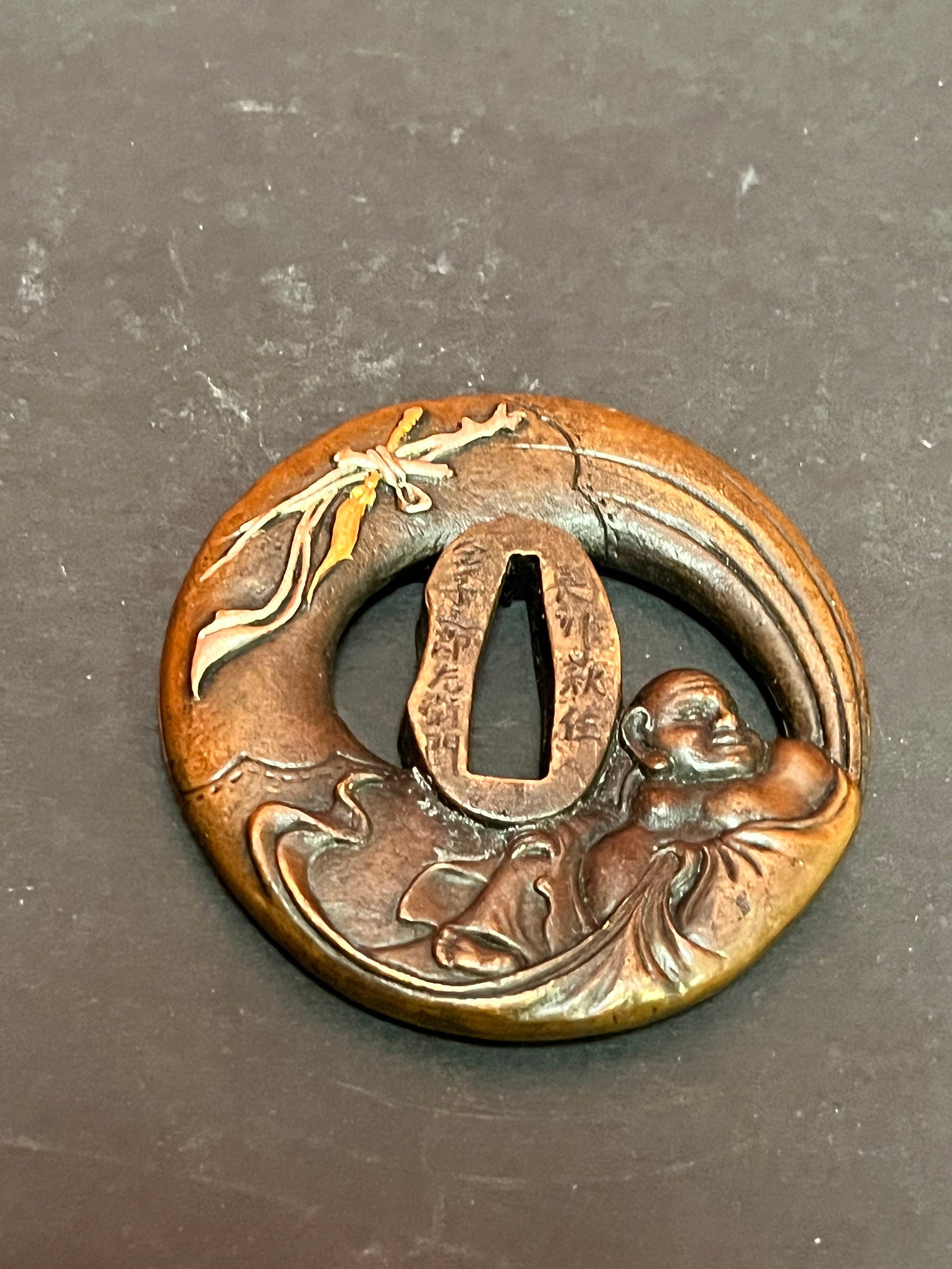 Stunning antique rare signed 3 inch long Japanese samurai tsuba from important estate beautiful one