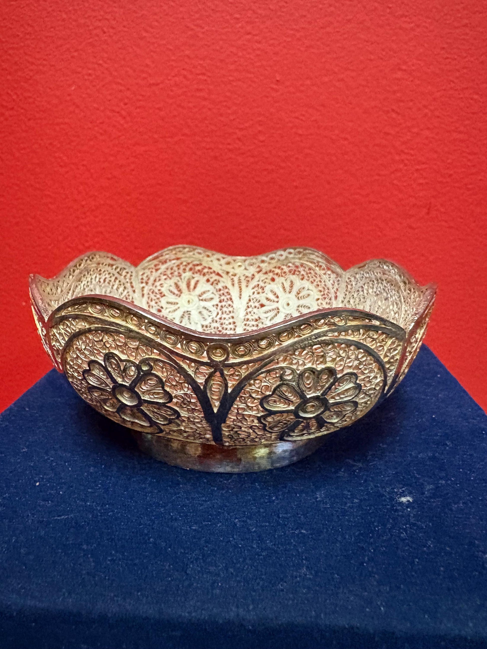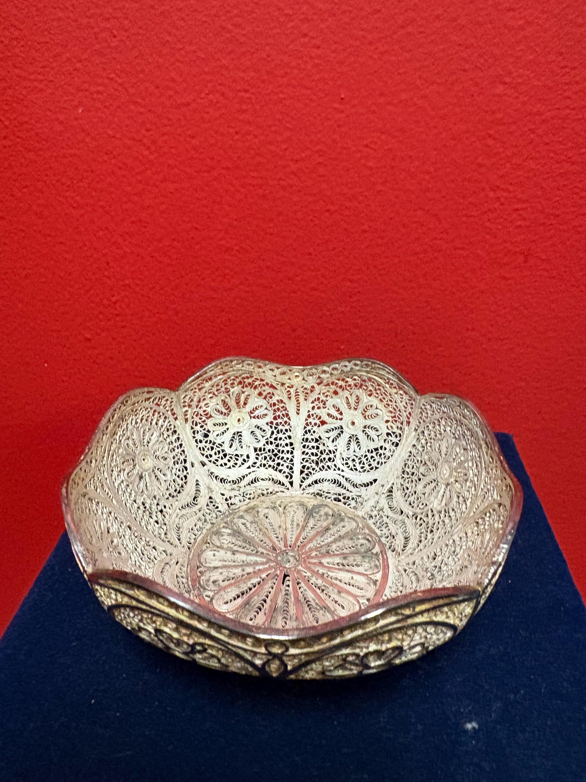 Stunning Chinese silver filigree 4 inch bowl in original box — approximately 120 g — wonderful condition and amazing gift and great value- B