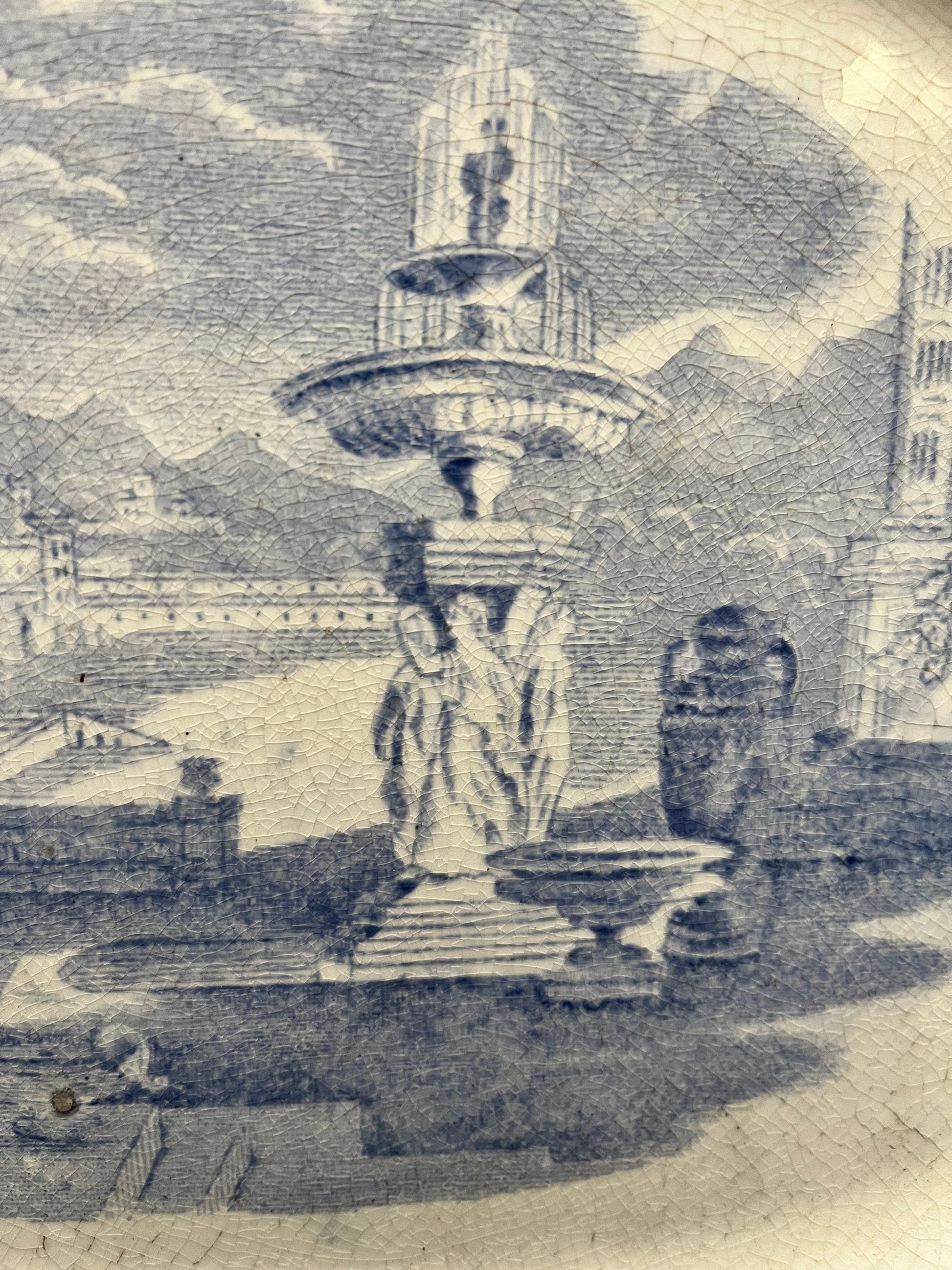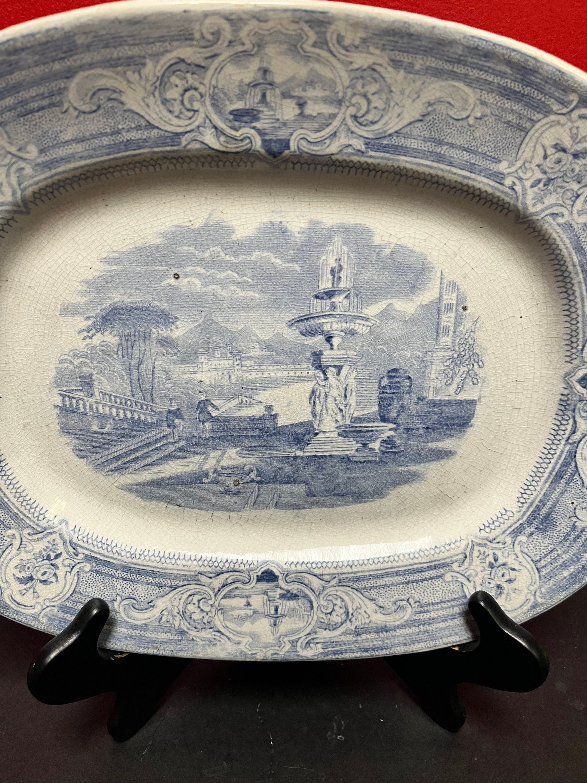 Stunning early 19th century perfect condition English blue and white platter fabulous scene