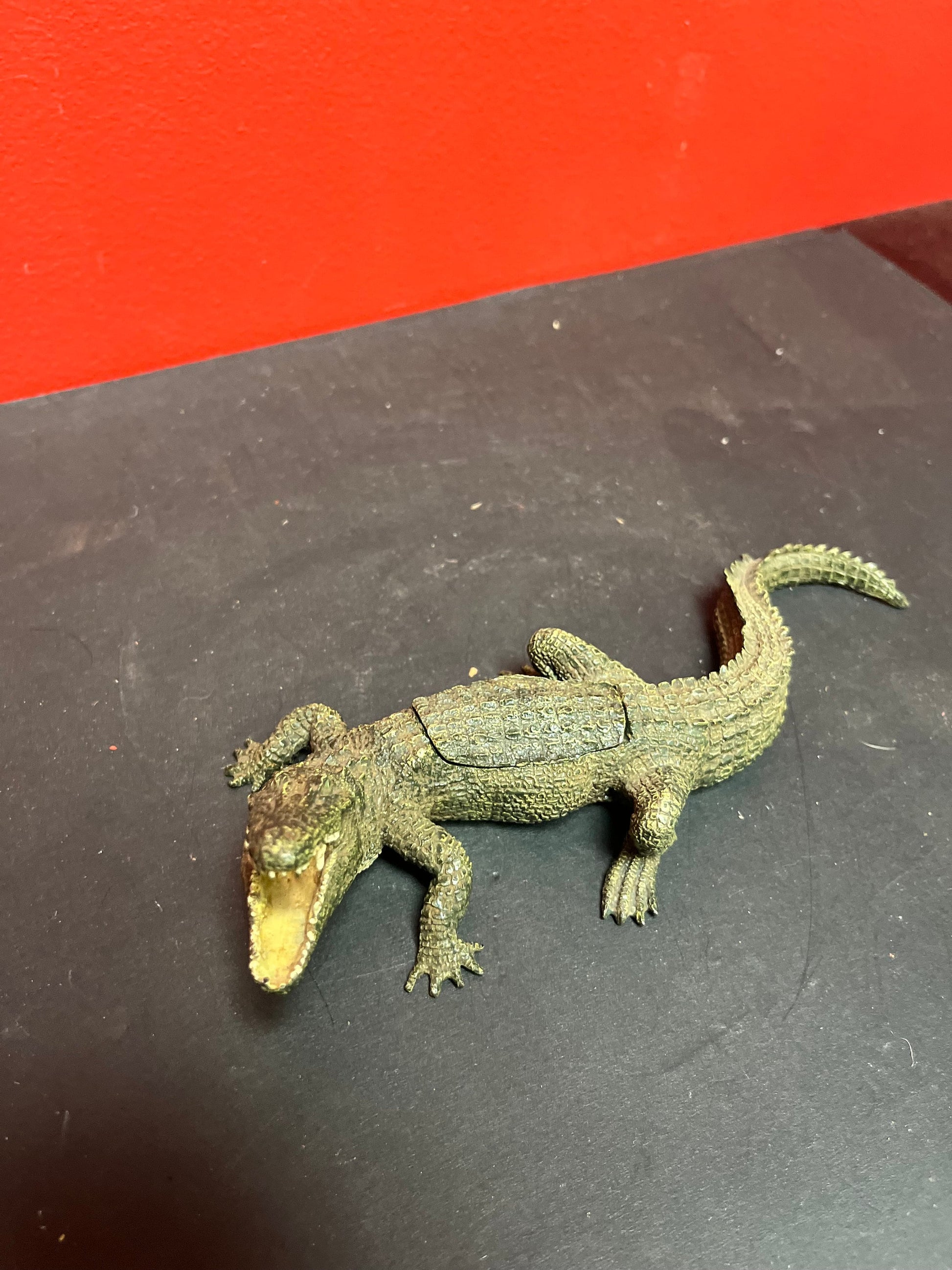 Stunning Franz Bergman signed Austrian cold painted bronze alligator  8 inches long  amazing condition and patina wow