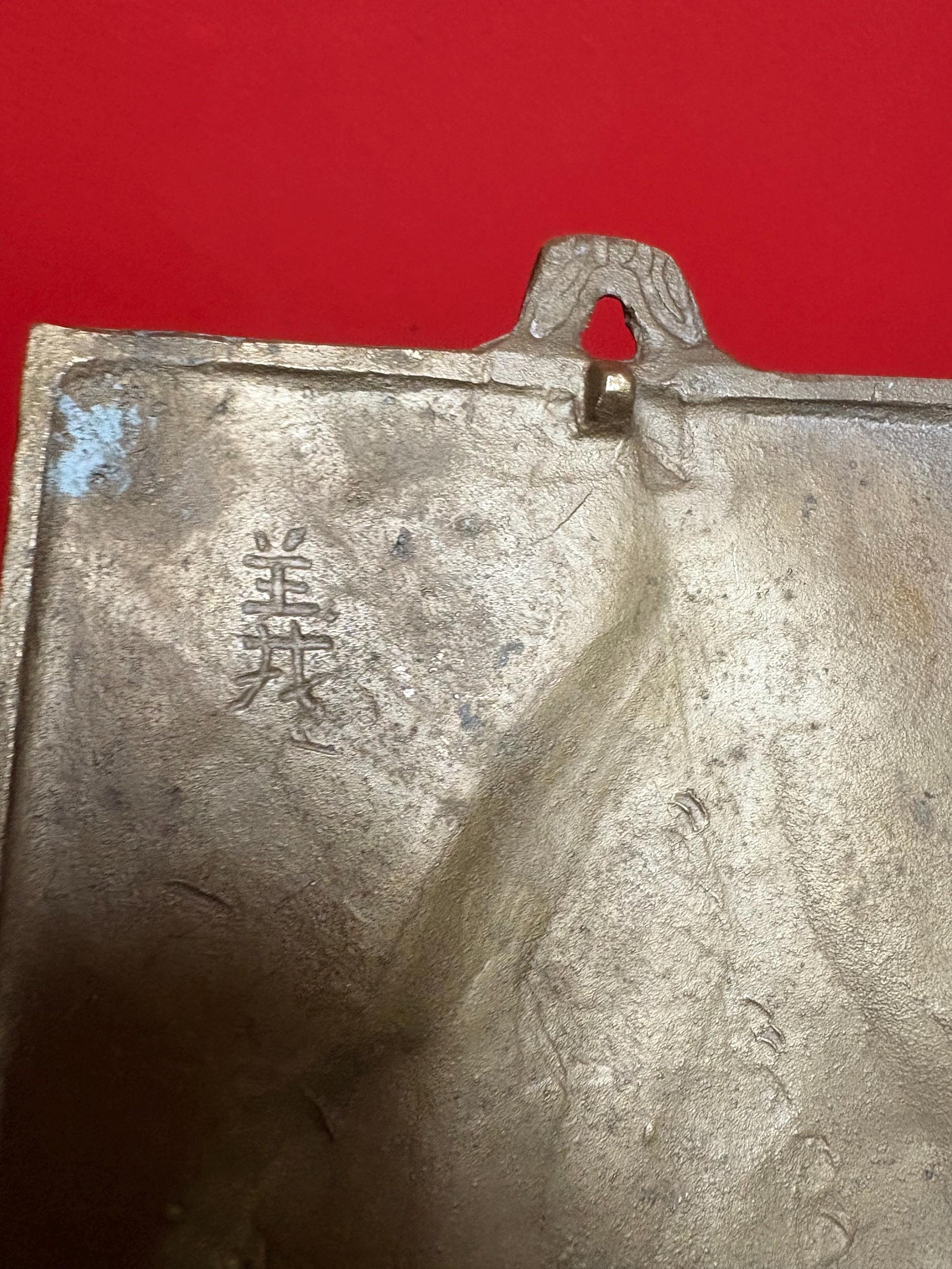 Stunning heavy Chinese signed brass wall plaque of Confucius - 8 x 6” wide — great quality and detail