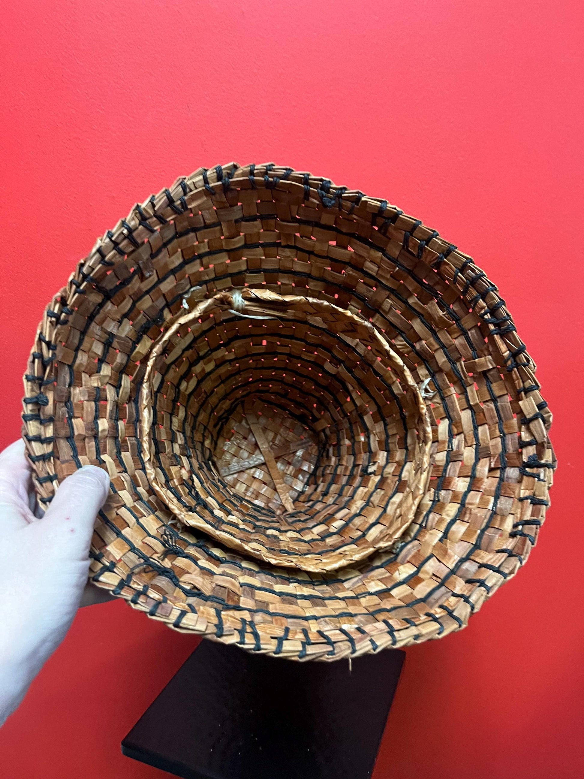 Stunning indigenous 12 x 12 (8 inches wide inside) Canadian West Coast vintage birch bark hat high-quality