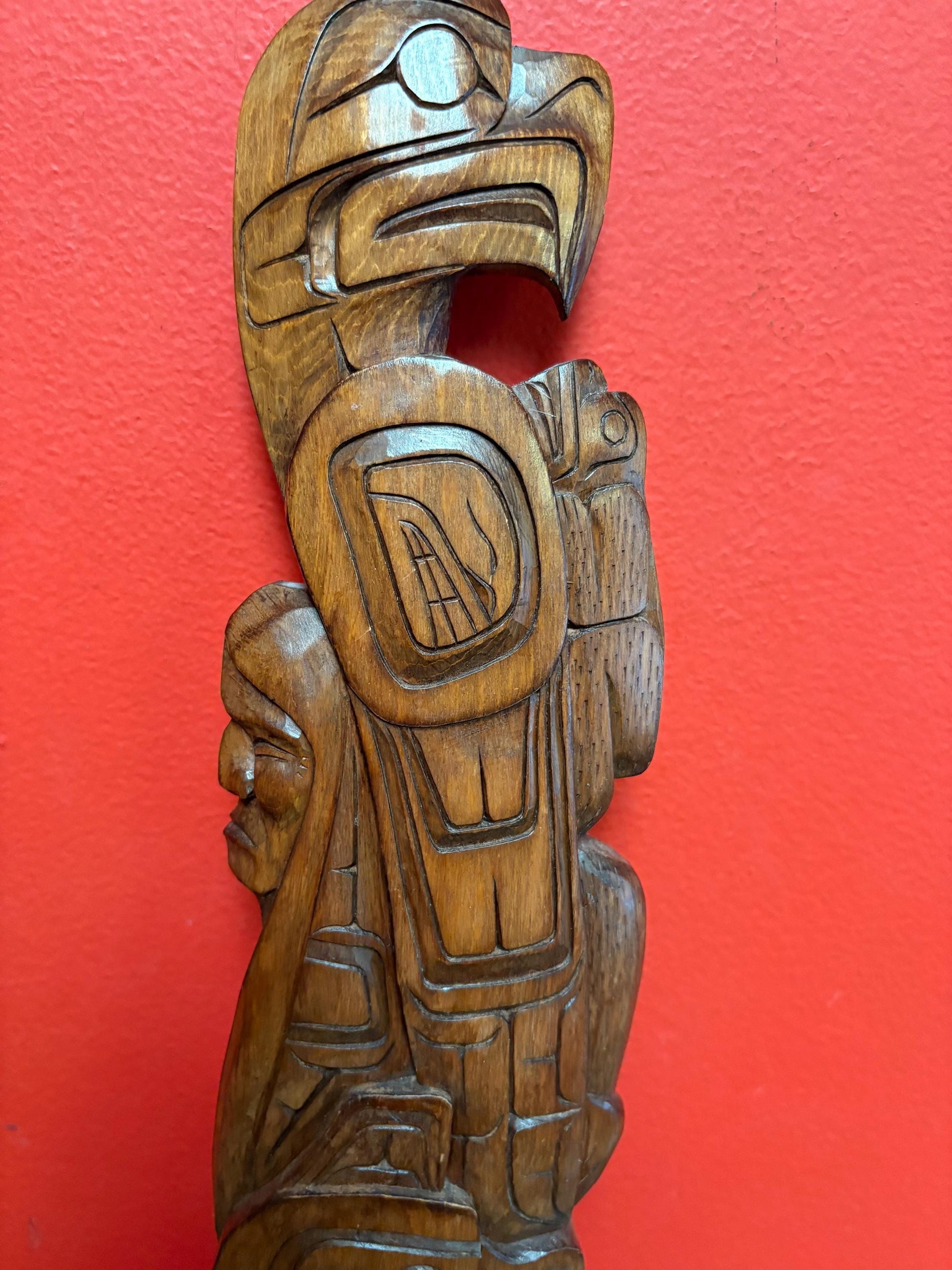 Stunning indigenous 33 x 3“ indigenous first nations pacific West Coast Lance Joseph transformation plaque well carved and detailed