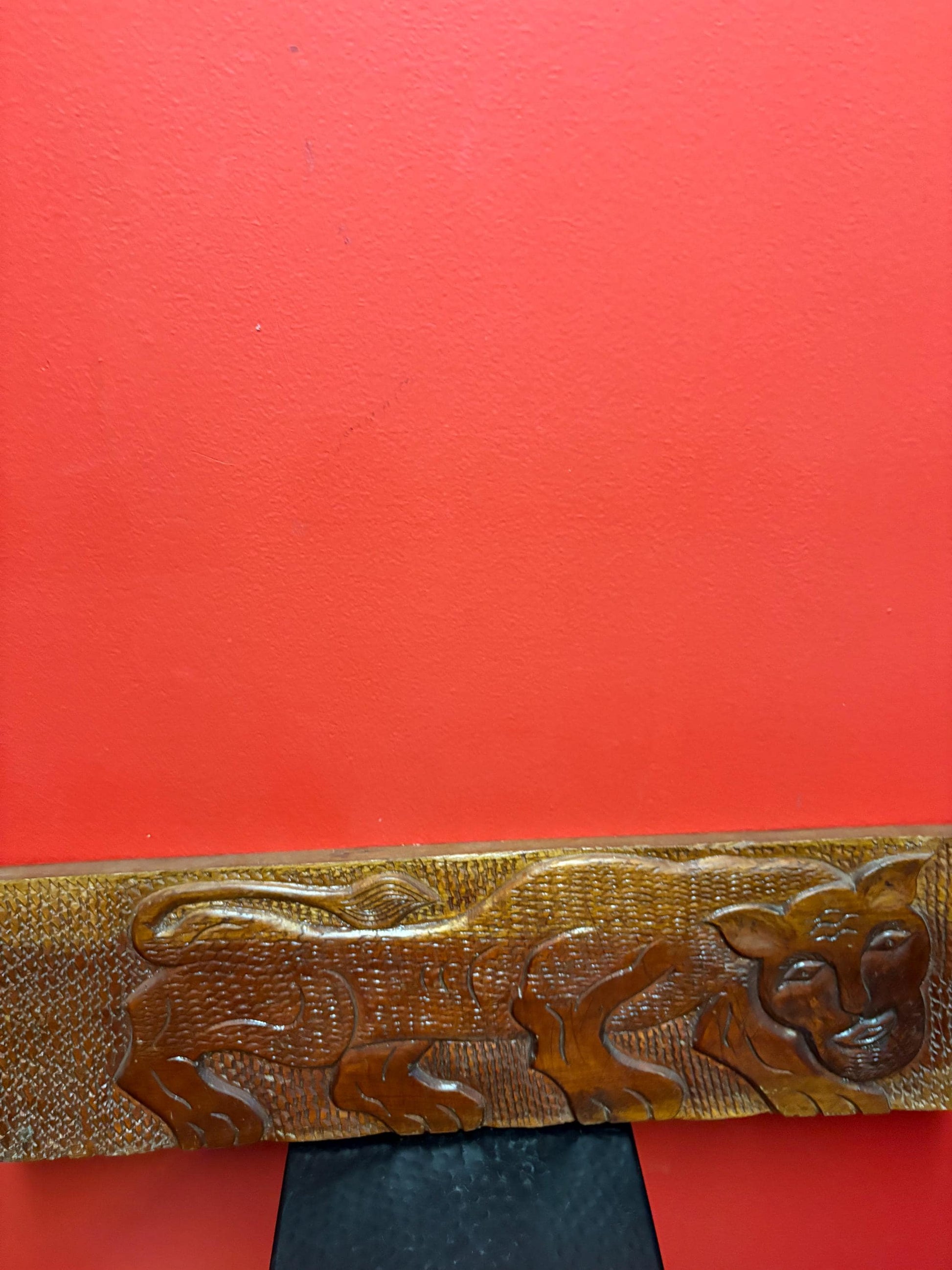 Stunning indigenous first nation pacific north West Coast 21 x 7 wide unique carving of a cougar plaque signed needs hanger great price