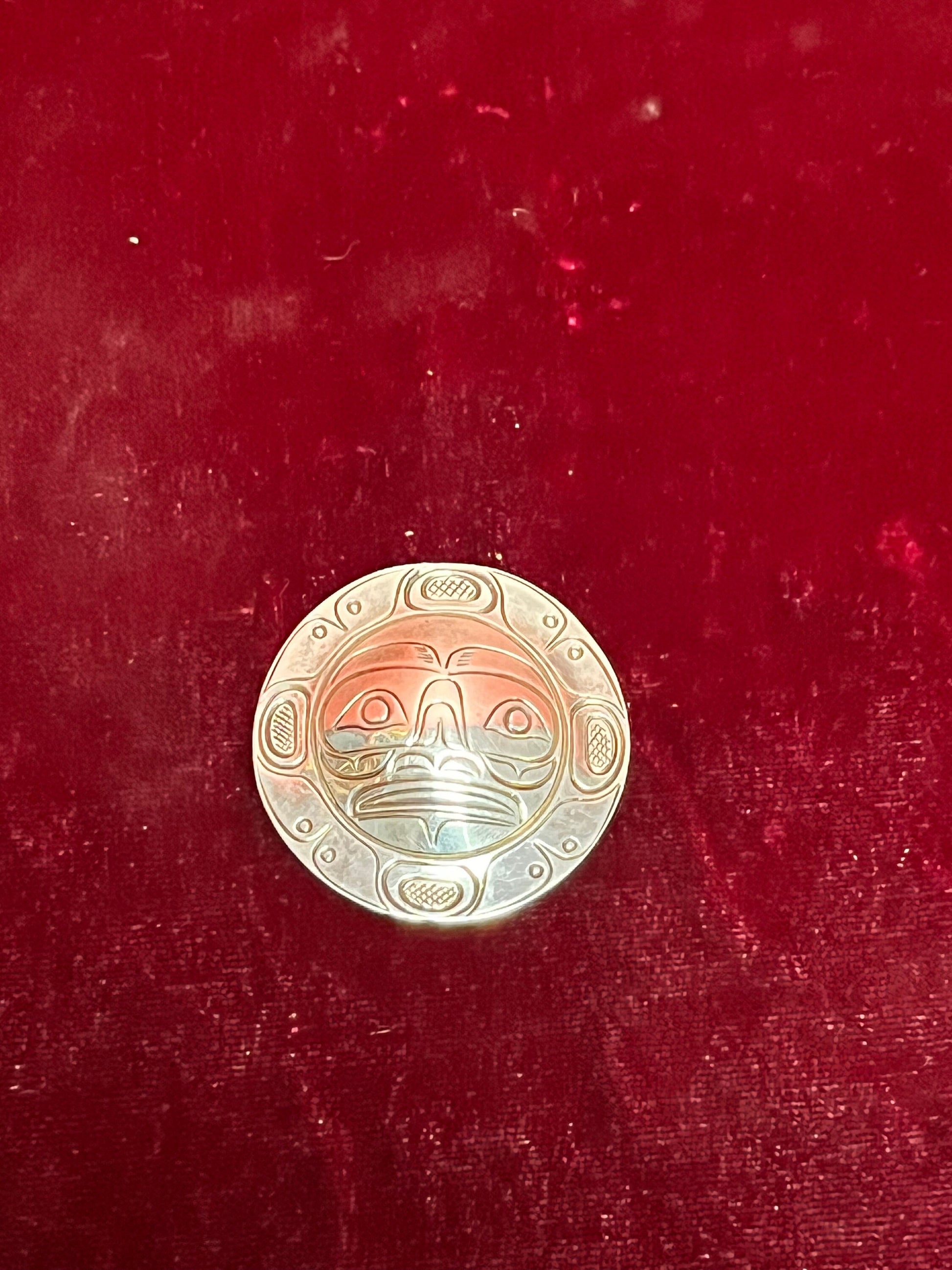 Stunning Indigenous First Nations pacific northwest coast moon pendant brooch by John Lancaster great detail great gift