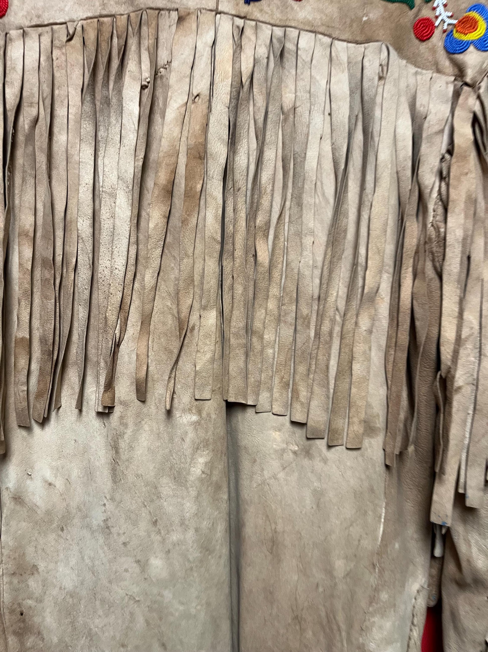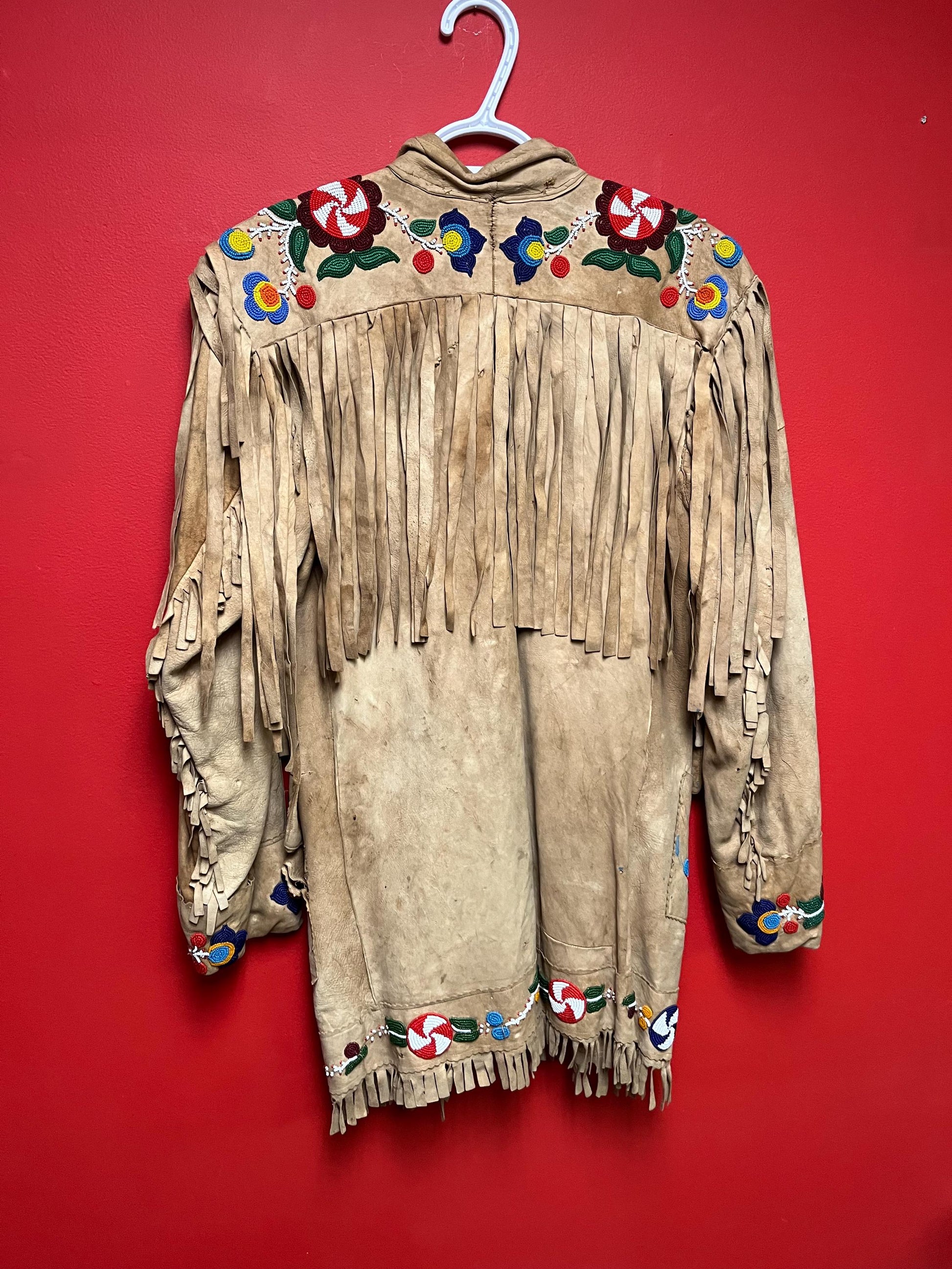 Stunning, indigenous native antique beaded jacket approximately 32 inches long and 16 inch chest medium to large minor damage see photos