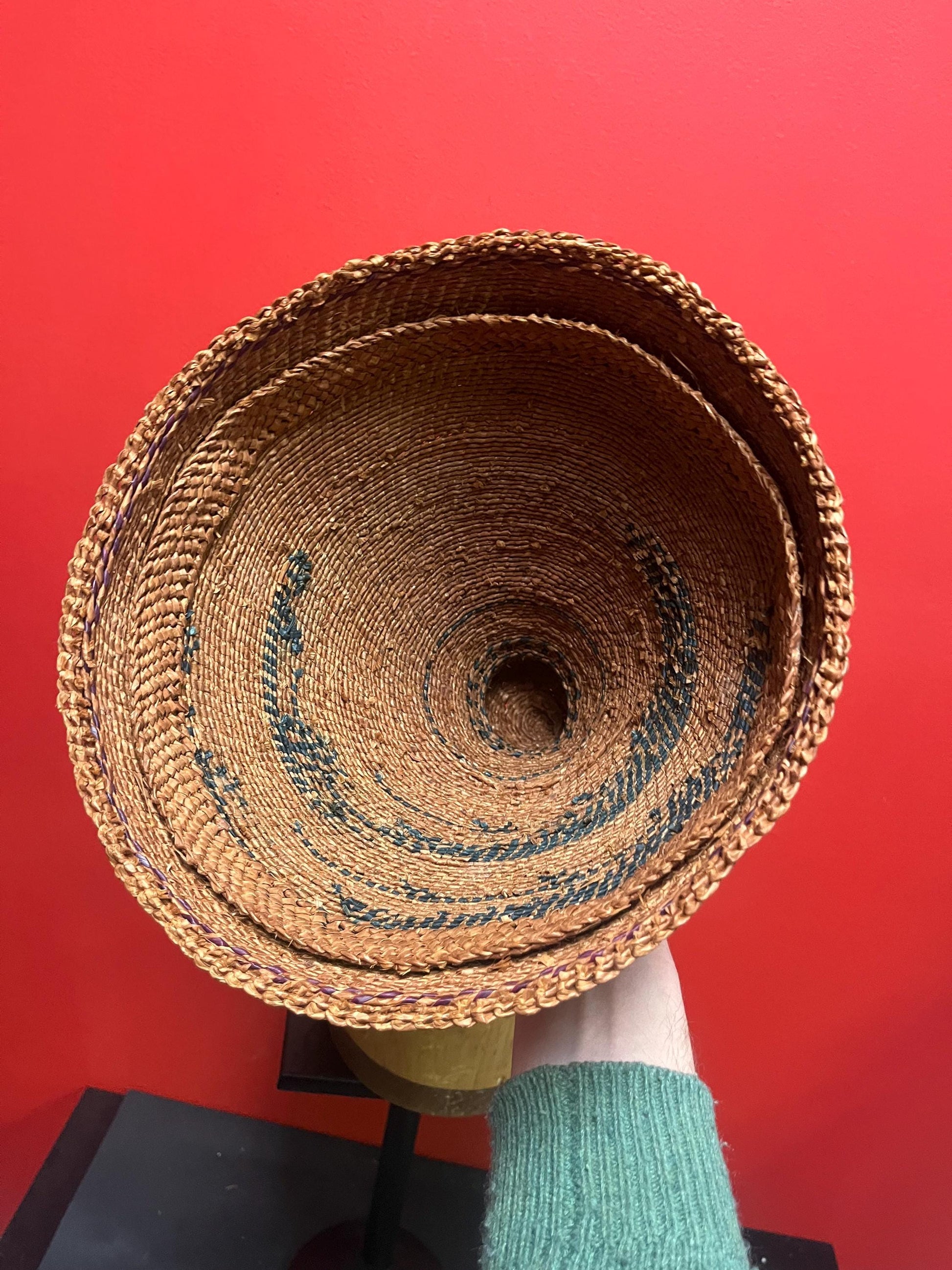 Stunning museum quality 11 x 10“ wide authentic early early 19 century indigenous First Nations Nootka whaling hat great patina and design