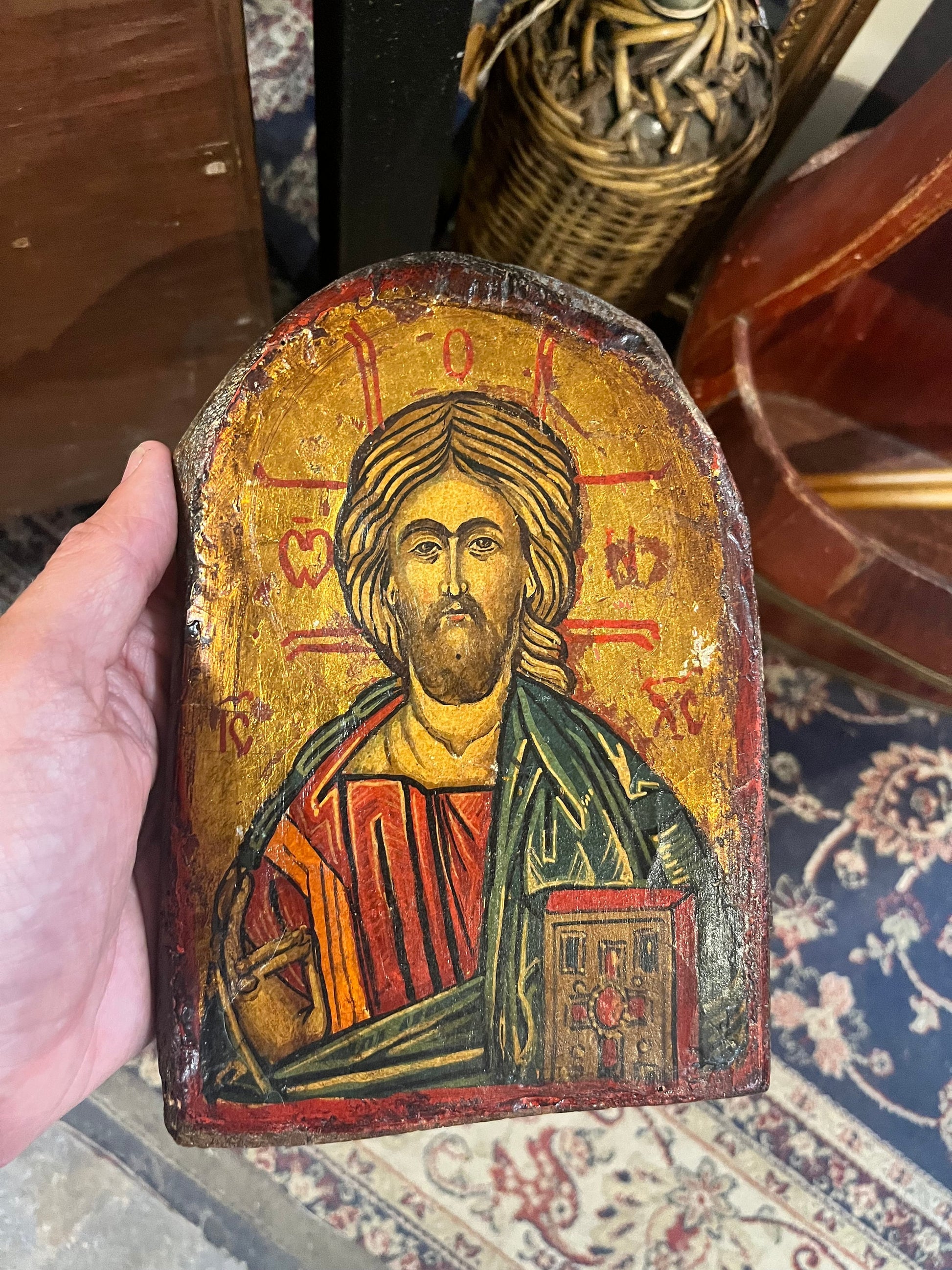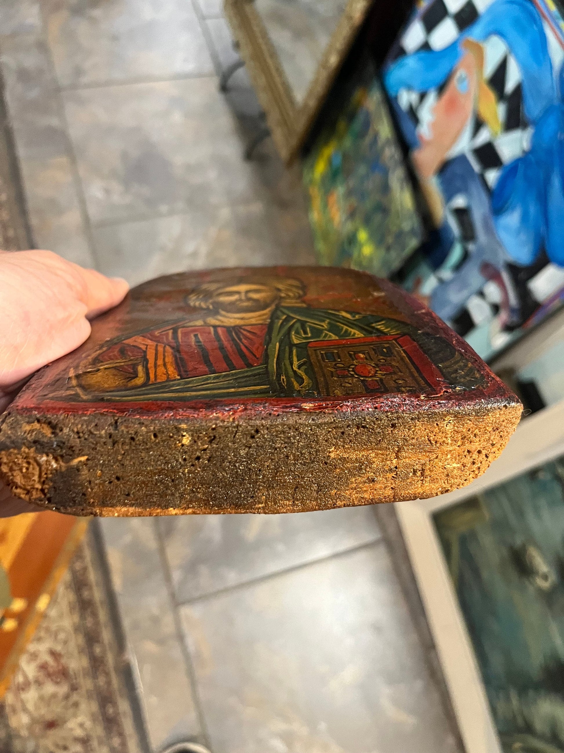 Stunning museum quality 8 x 6.5 authentic 17 century Bulgarian travel religious icon Wonderful patina with provenance