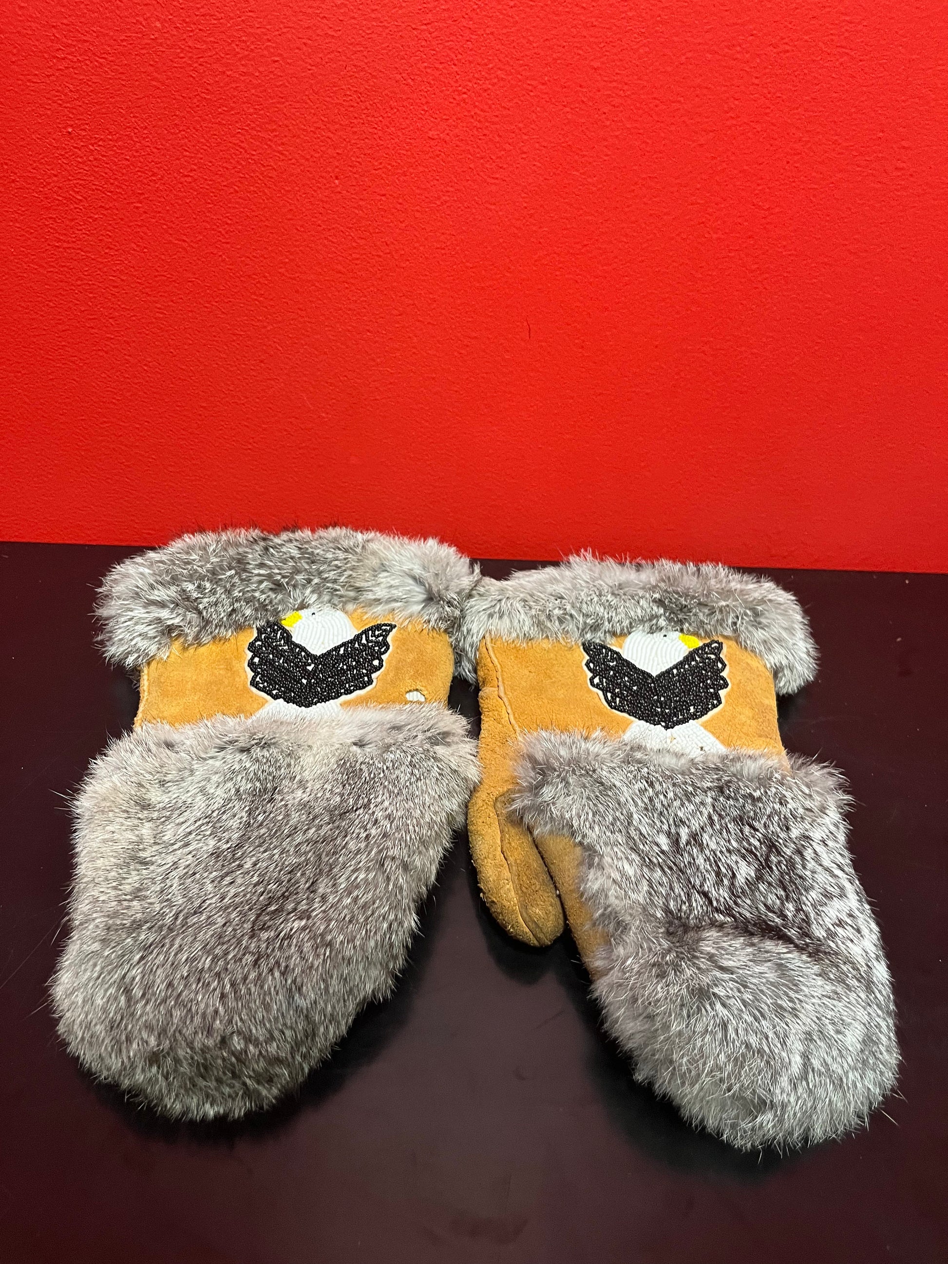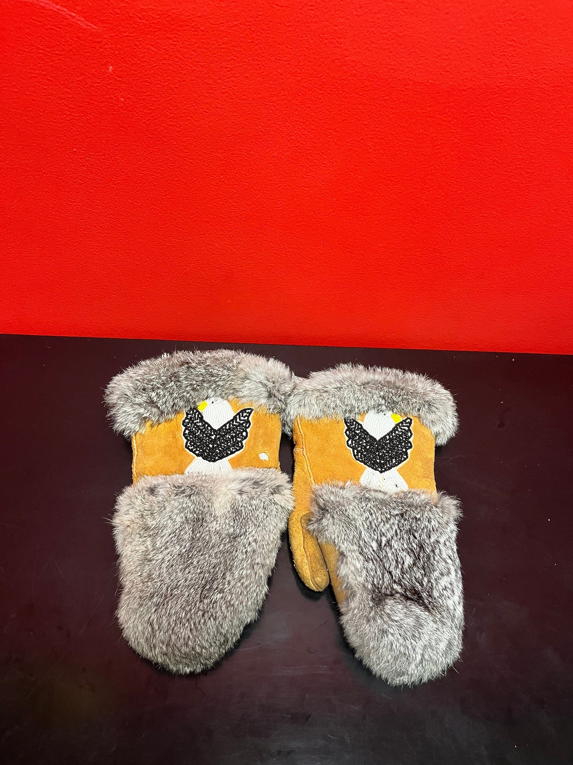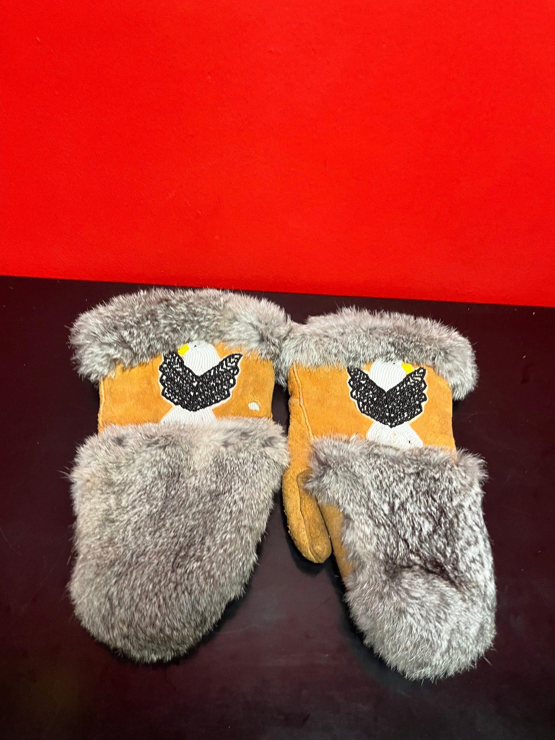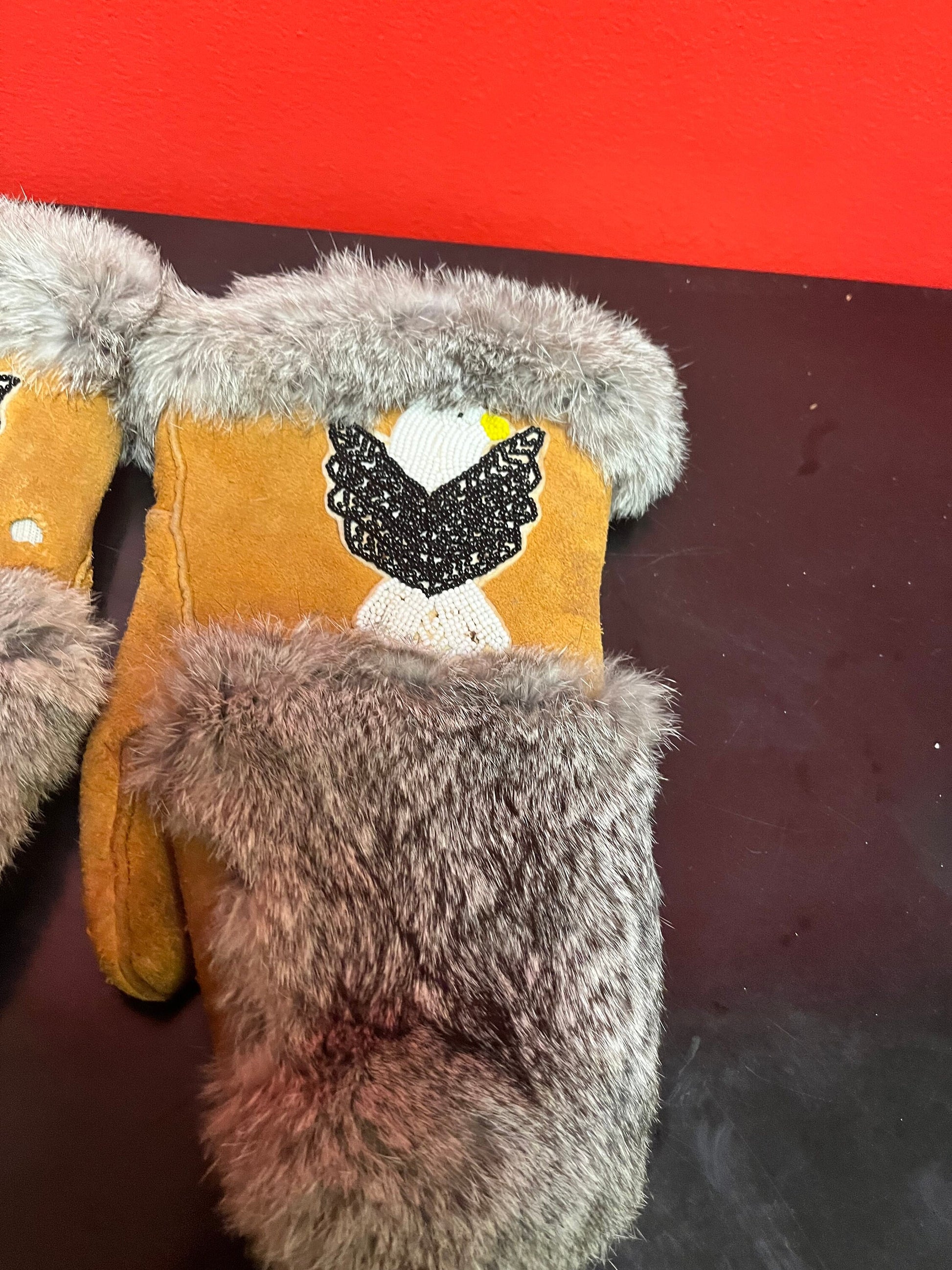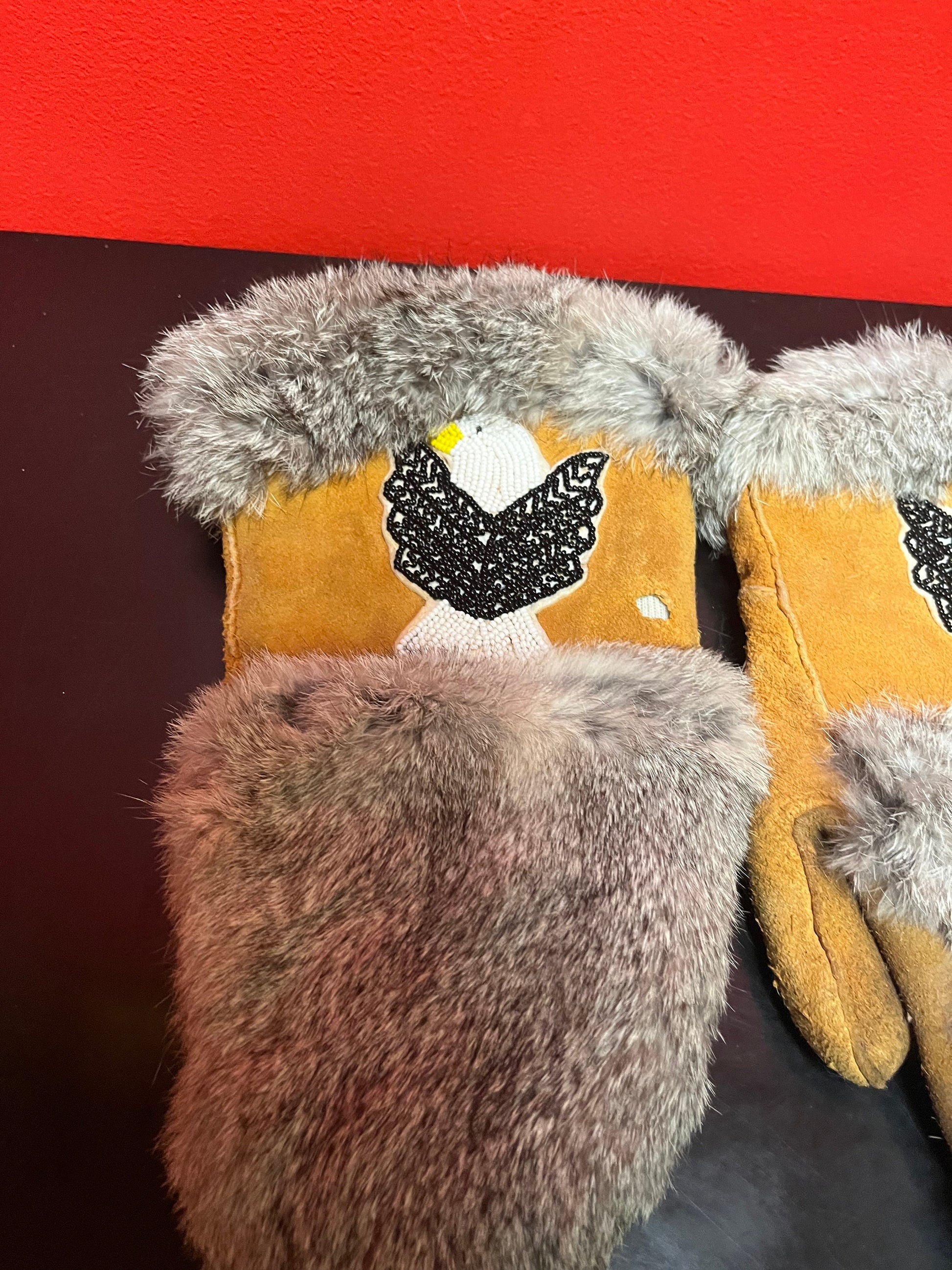 Stunning, museum quality vintage, indigenous, first nations, pacific northwest coast, leather and for impeded eagle mitten gloves wow wow