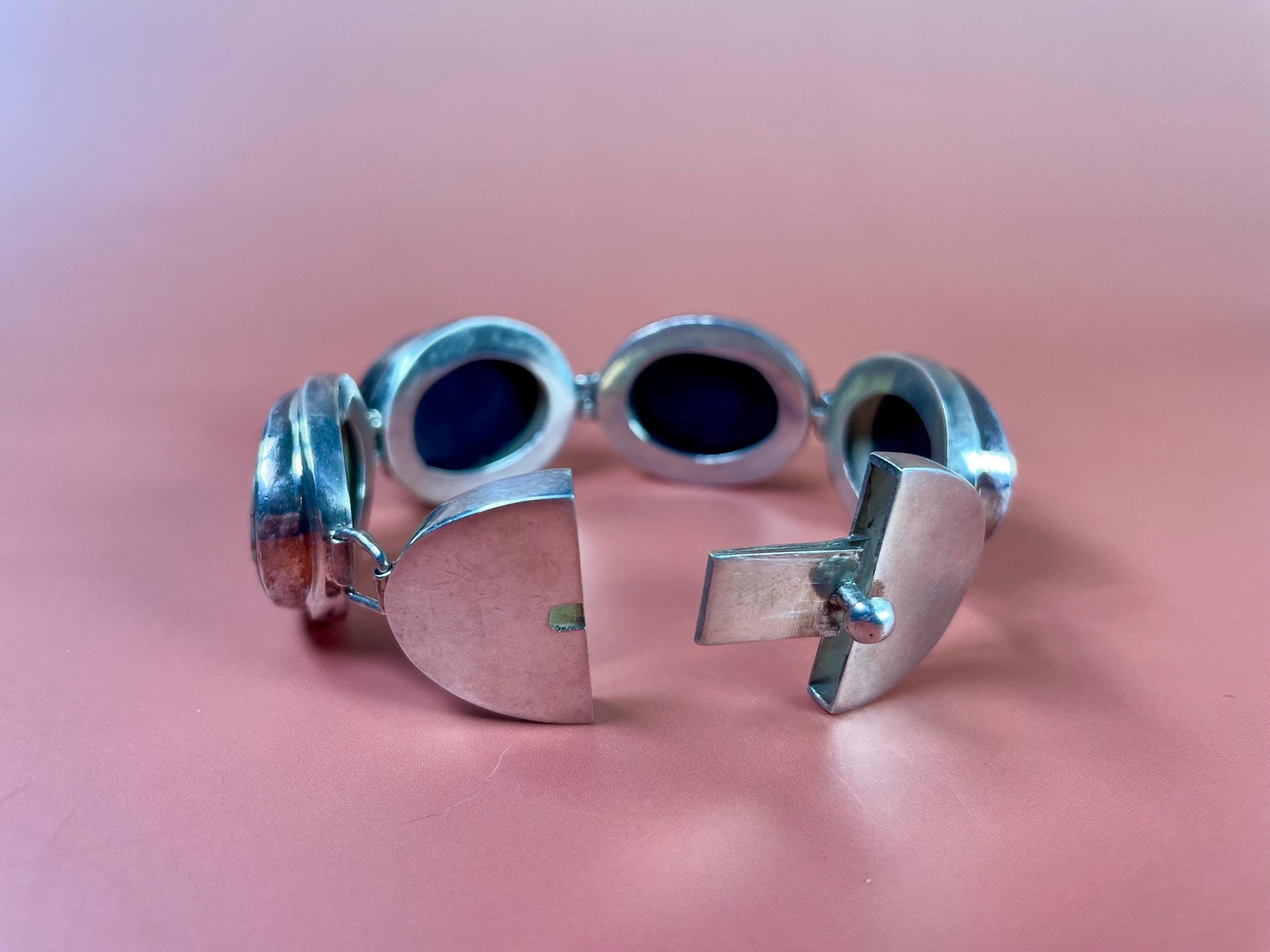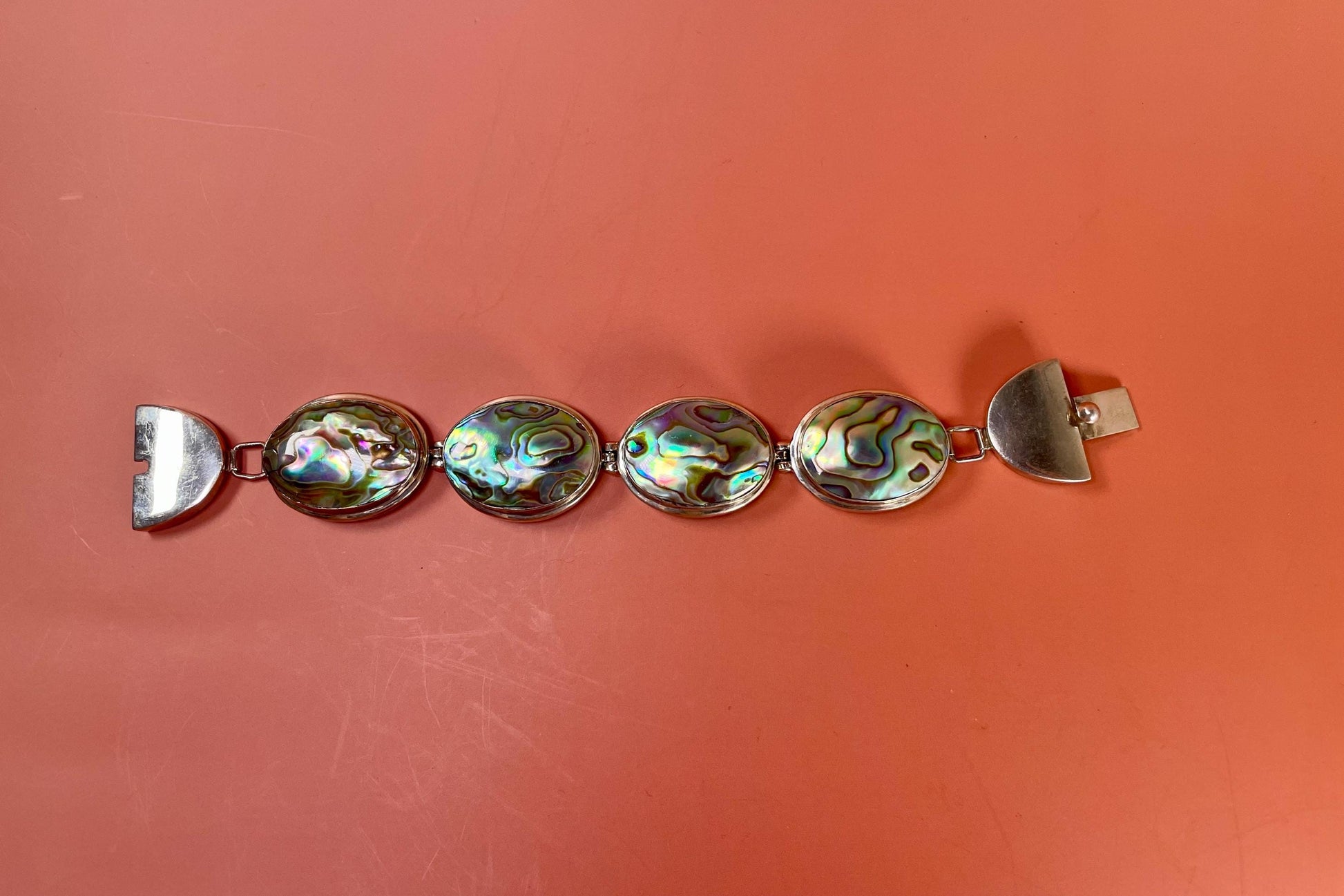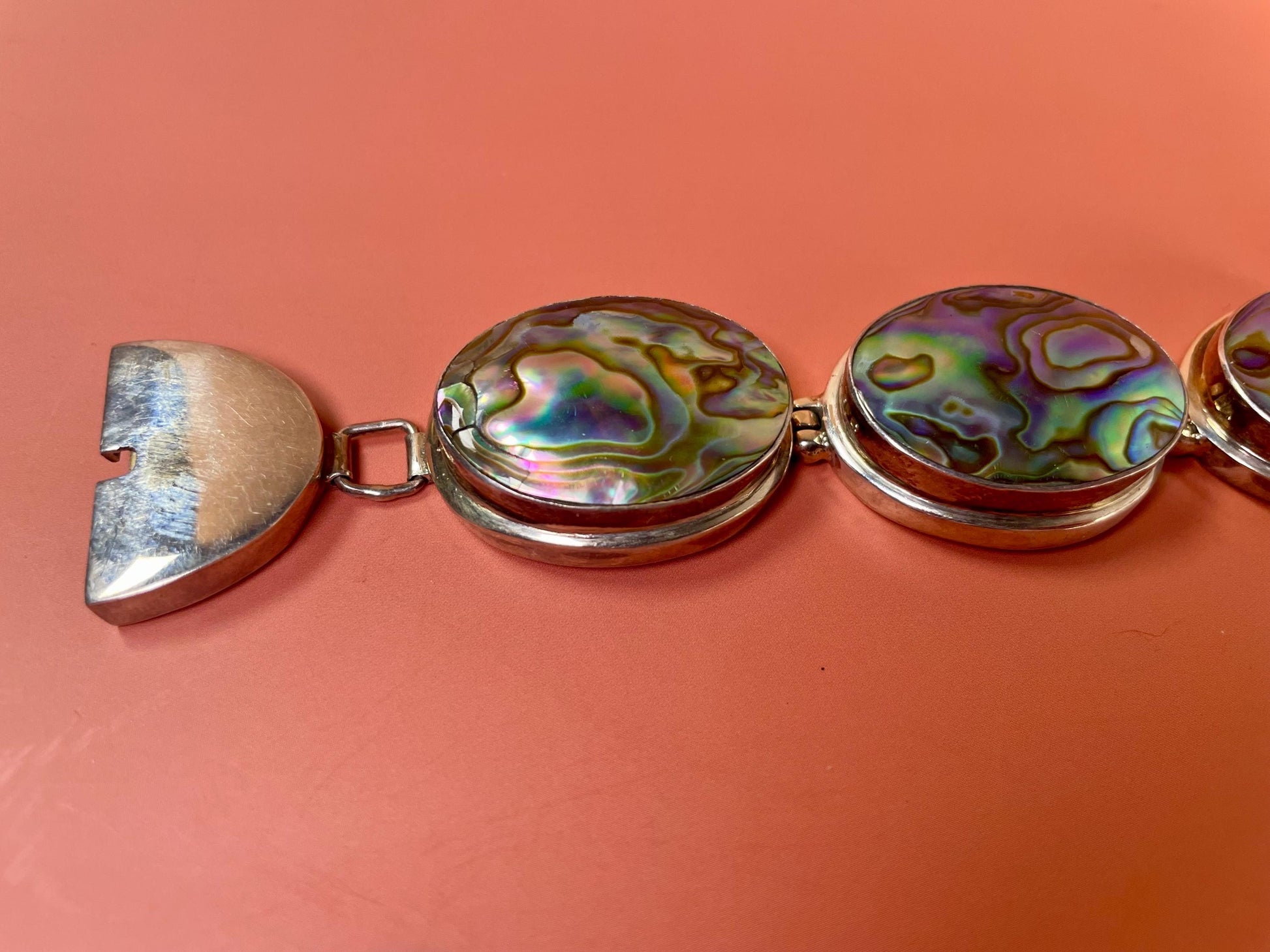 Stunning Native iridescent abalone in Sterling Silver bracelet.