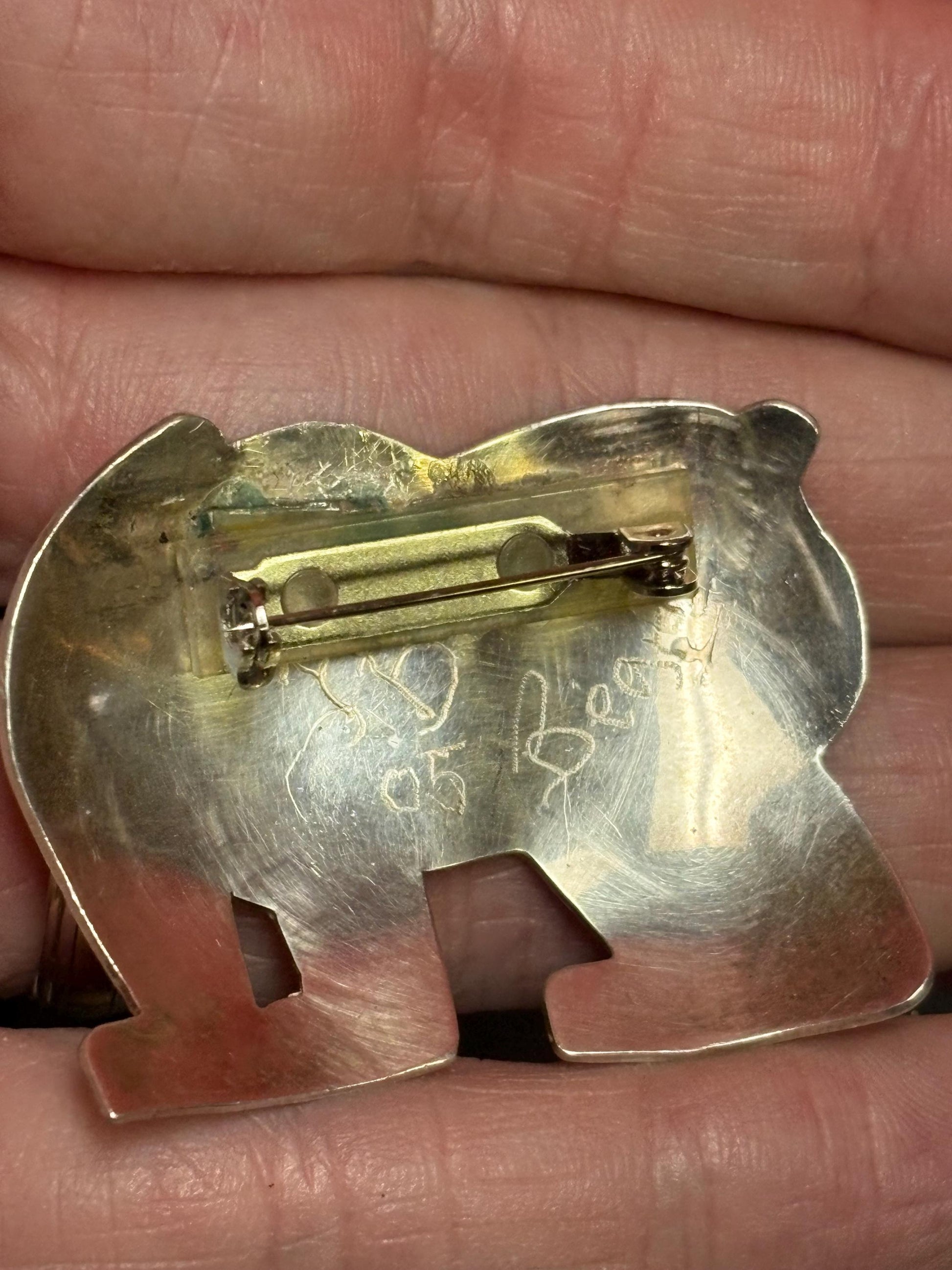 Stunning one-of-a-kind indigenous first nations Pacific Northwest Coast Sterling 2 inch bear brooch - signed wear it or gift it