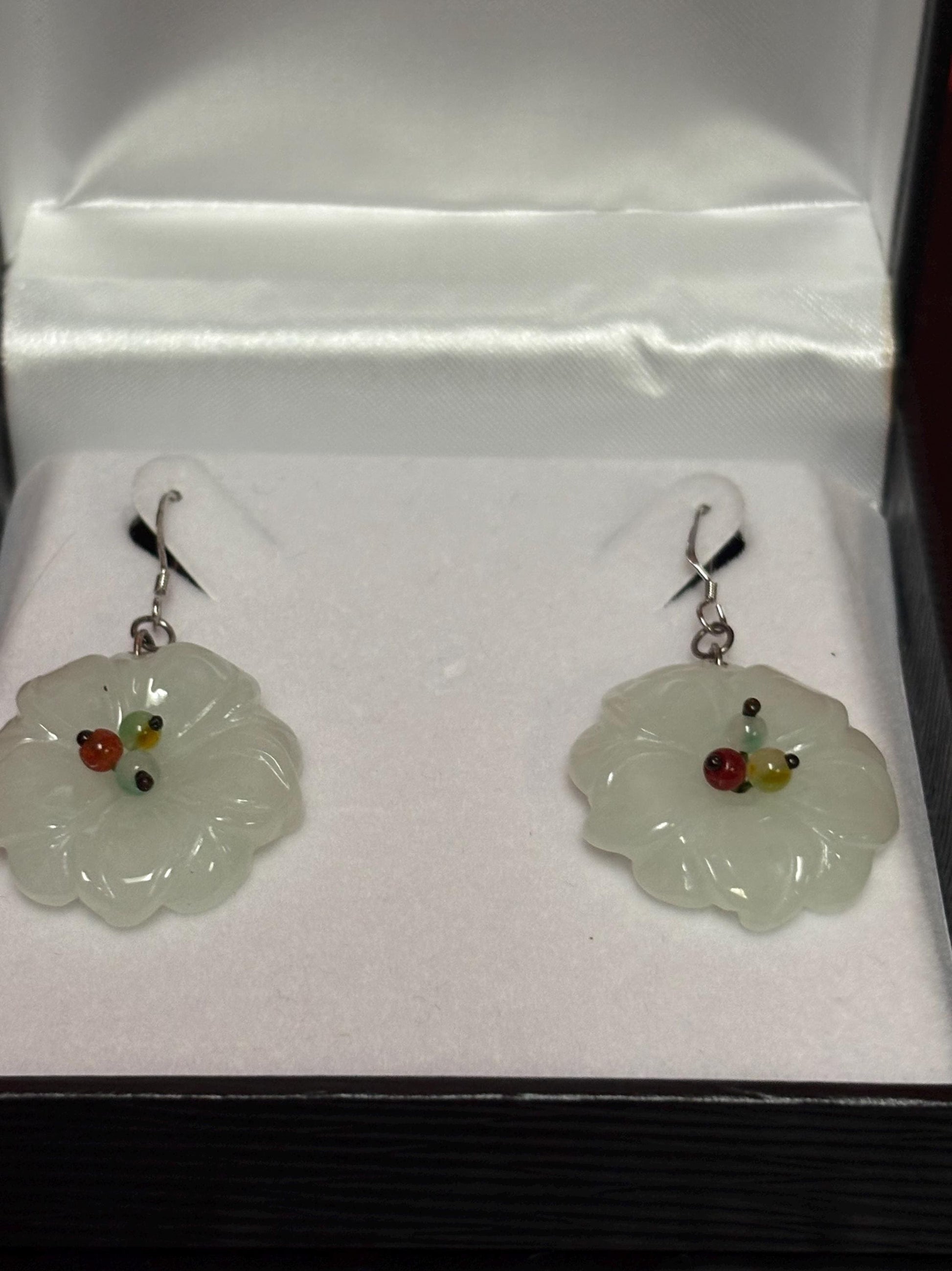 Stunning pair of Jade and silver earrings— Chinese beauties come in box — 2 inches long