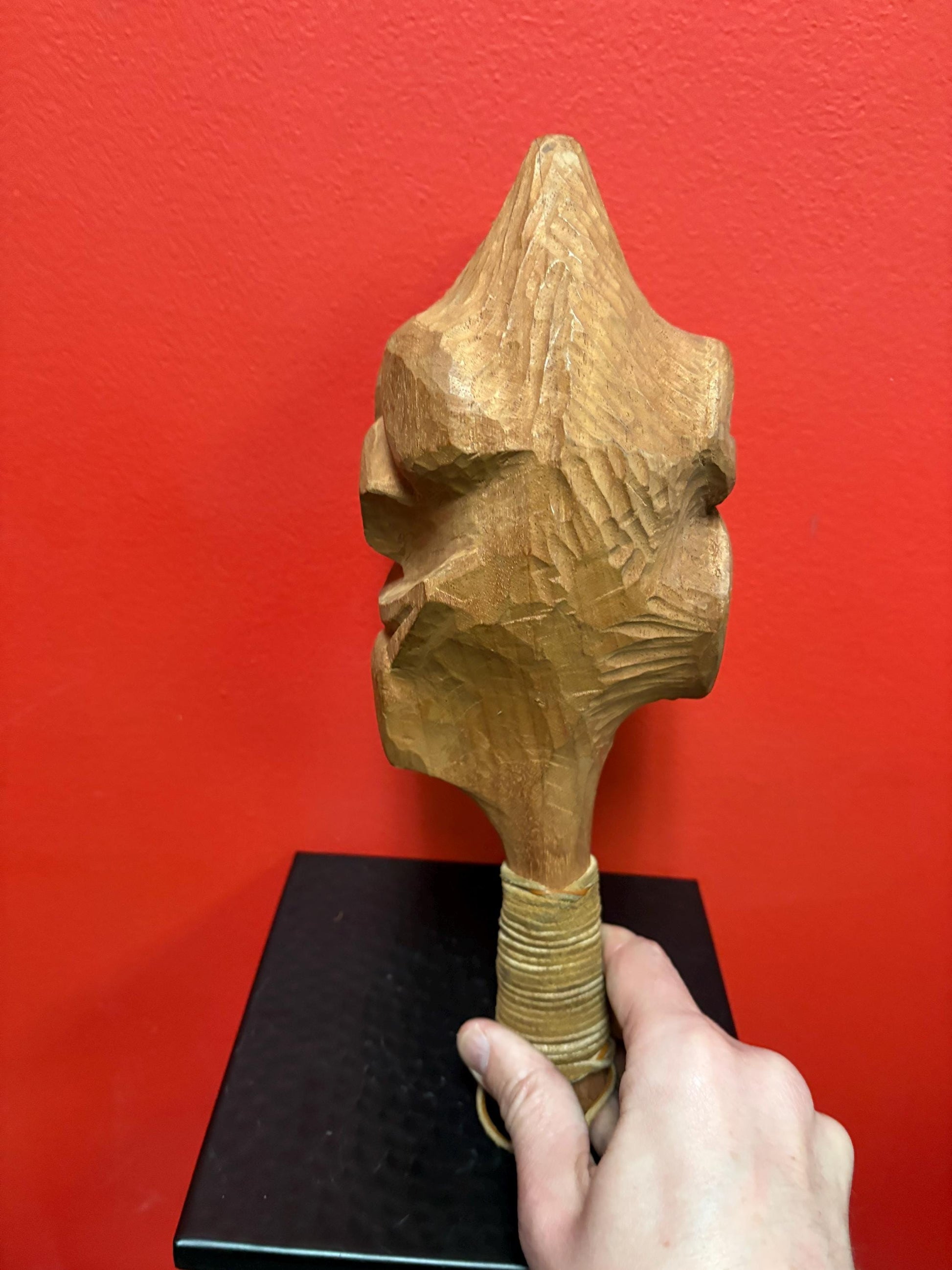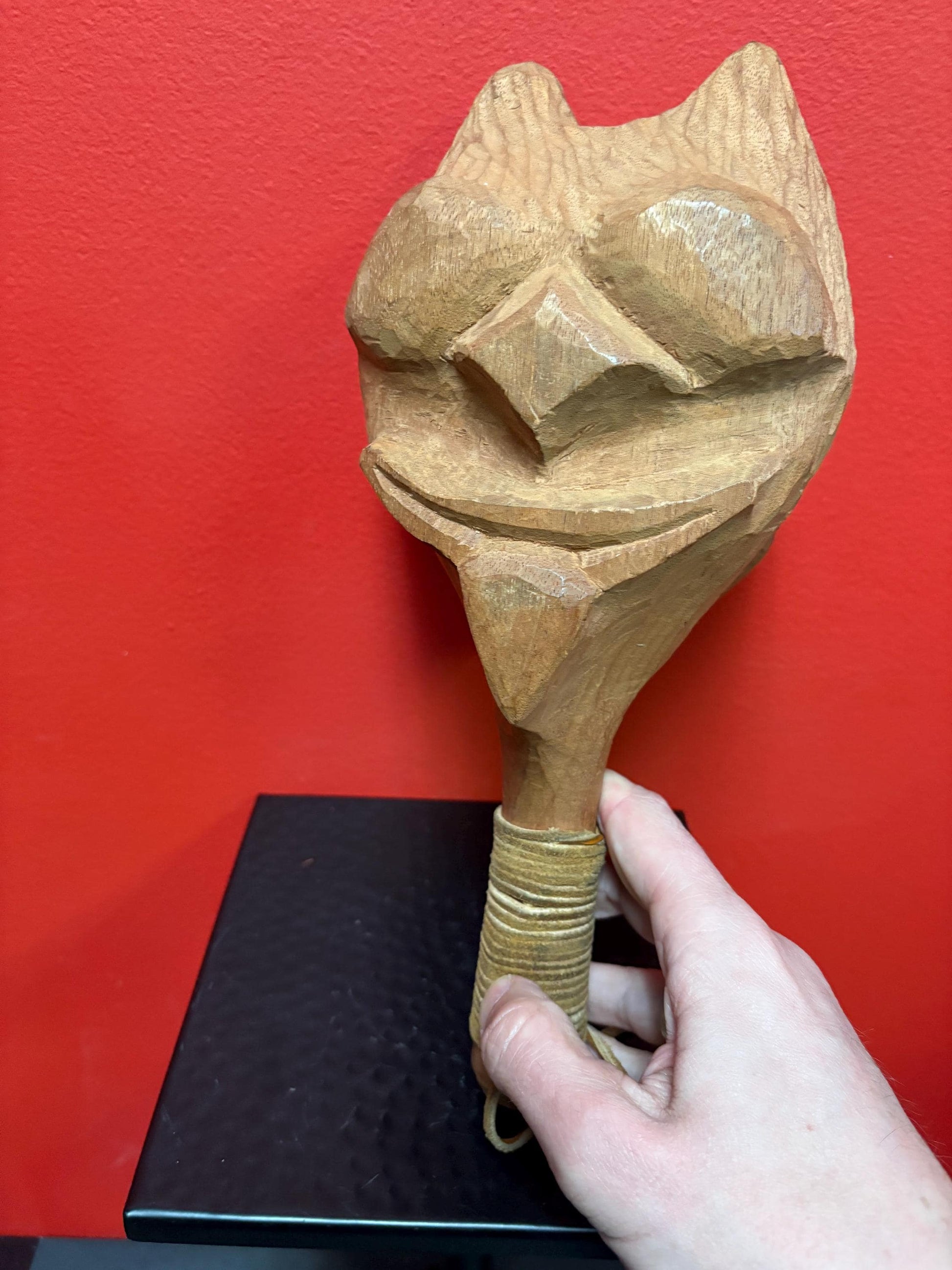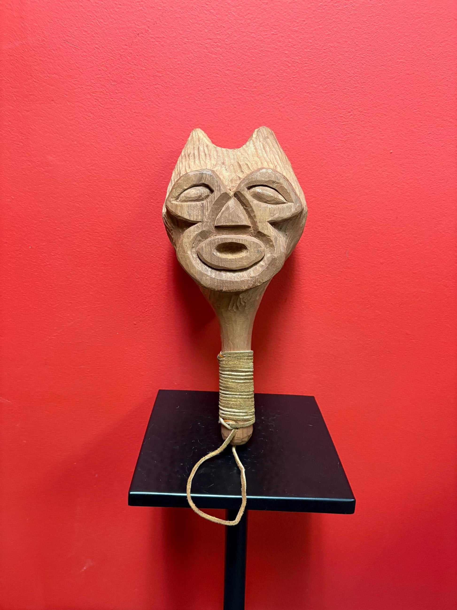 Stunning primitive indigenous first nation, Pacific Northwest Coast 13 inch long wooden rattle with great sound unsigned beauty