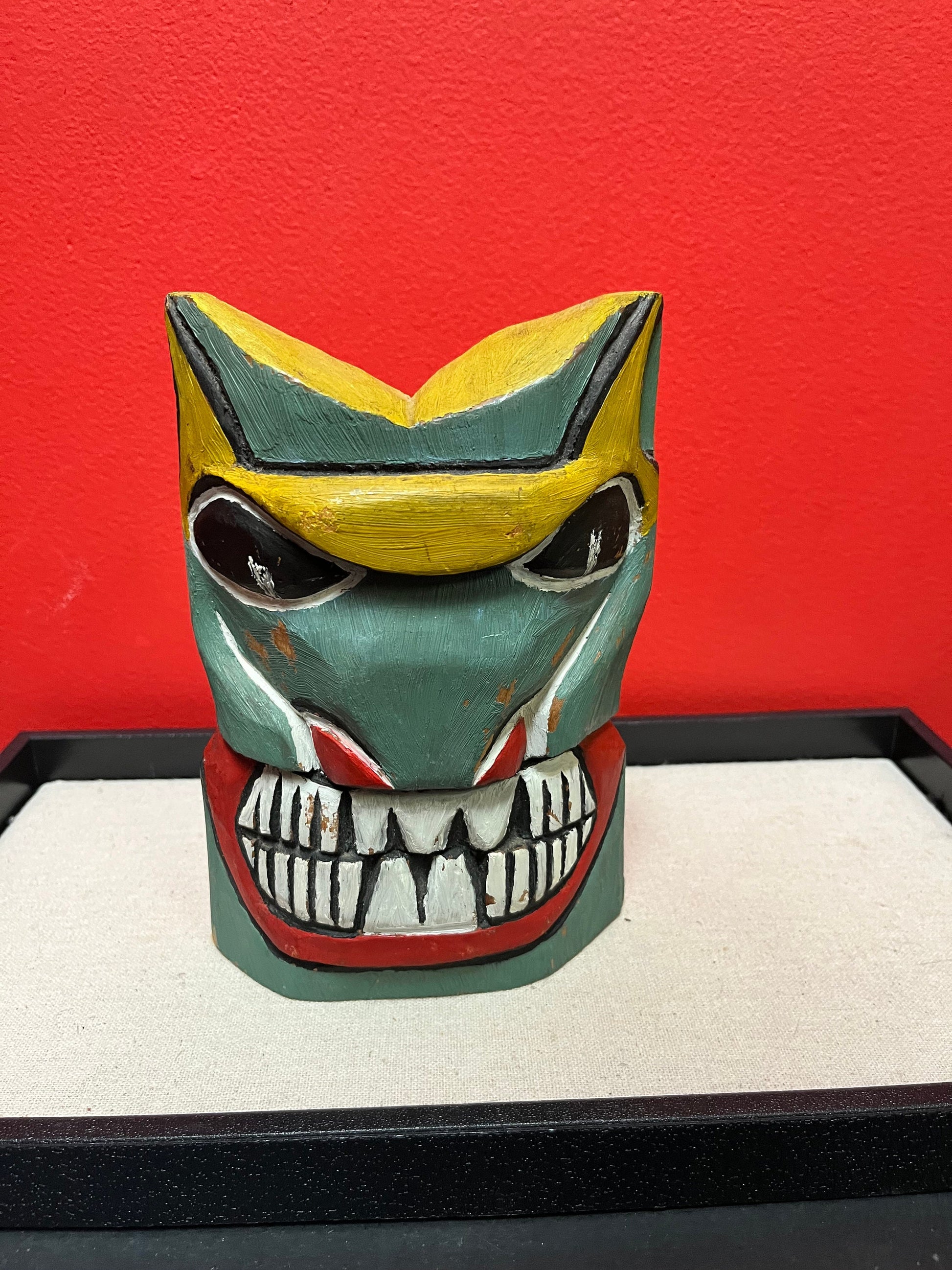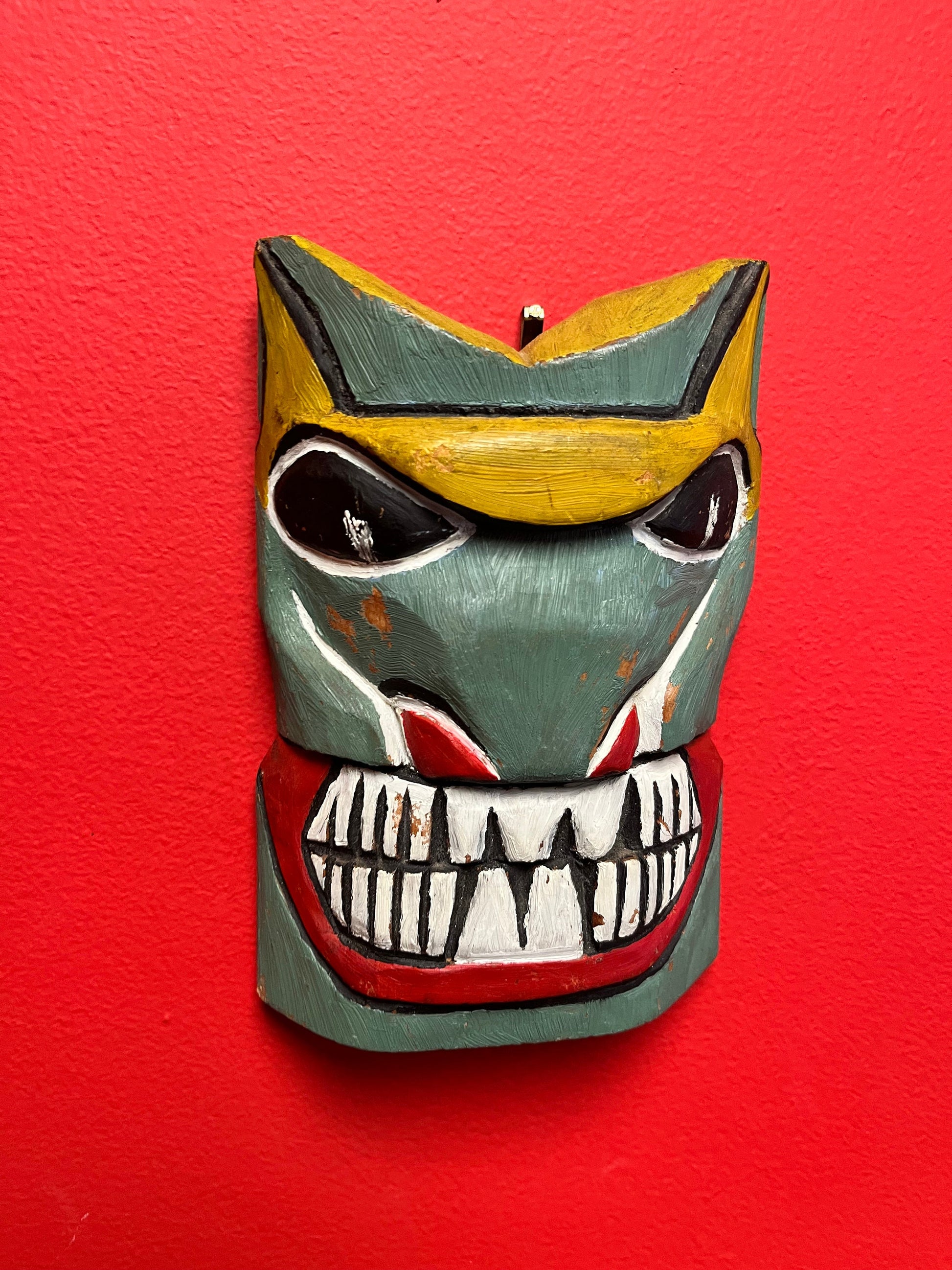 Stunning primitive indigenous first nations pacific northwest coast 7 x 5 painted polychrome mask signed on bottom