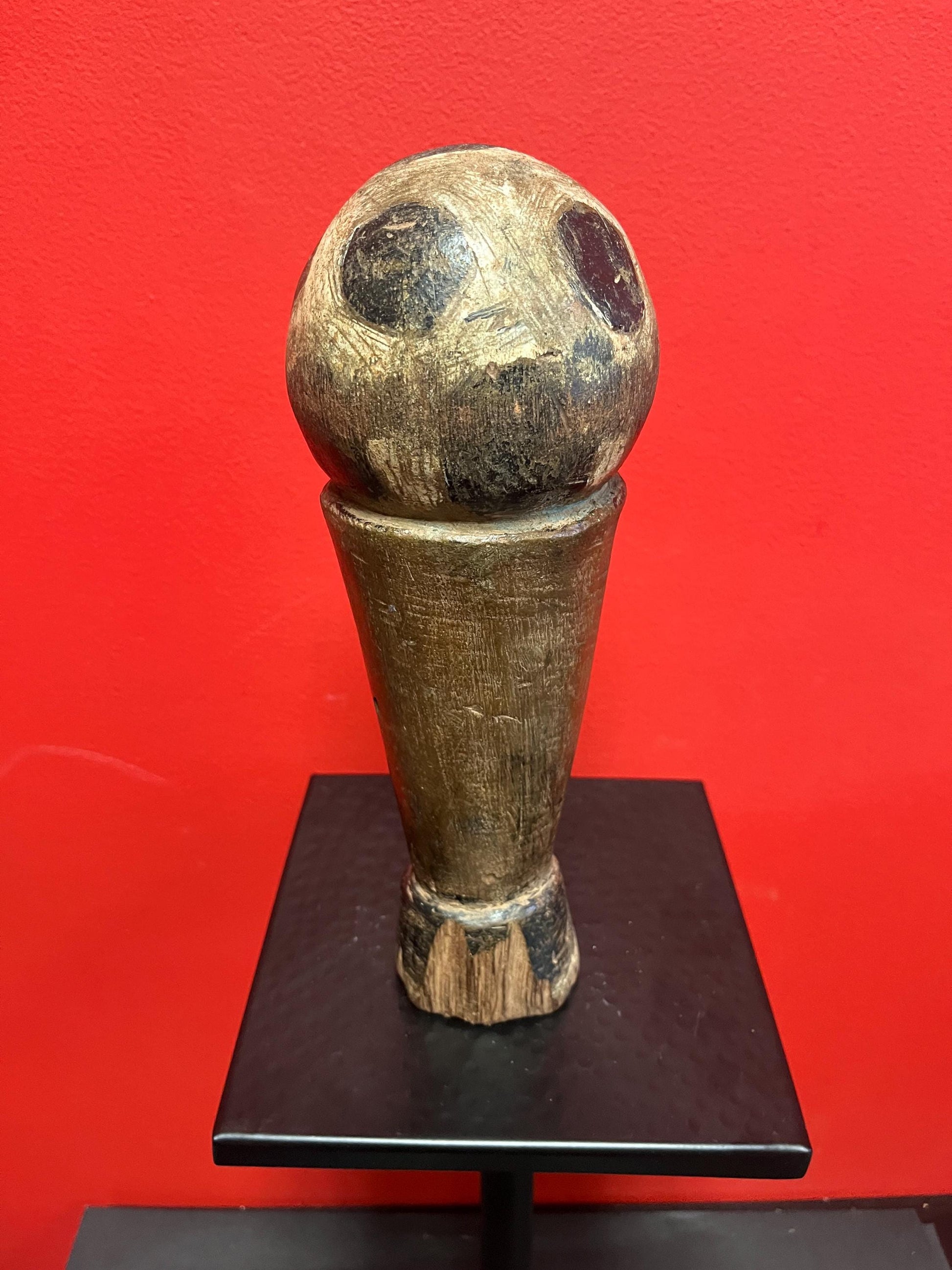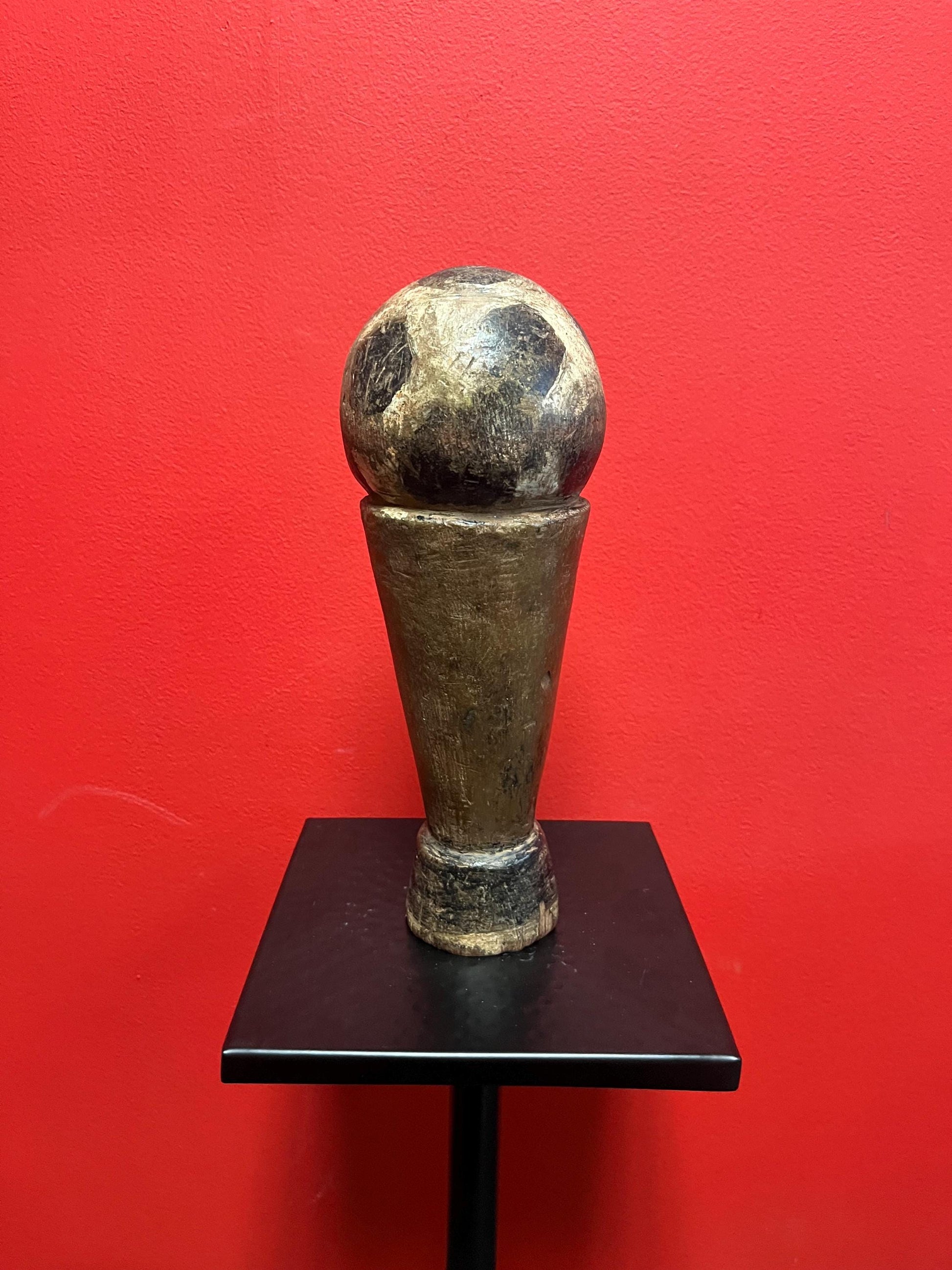 Stunning rare 11.5 inch tall western African Burkina Faso wood soccer trophy probably for local tournament super patina great gift