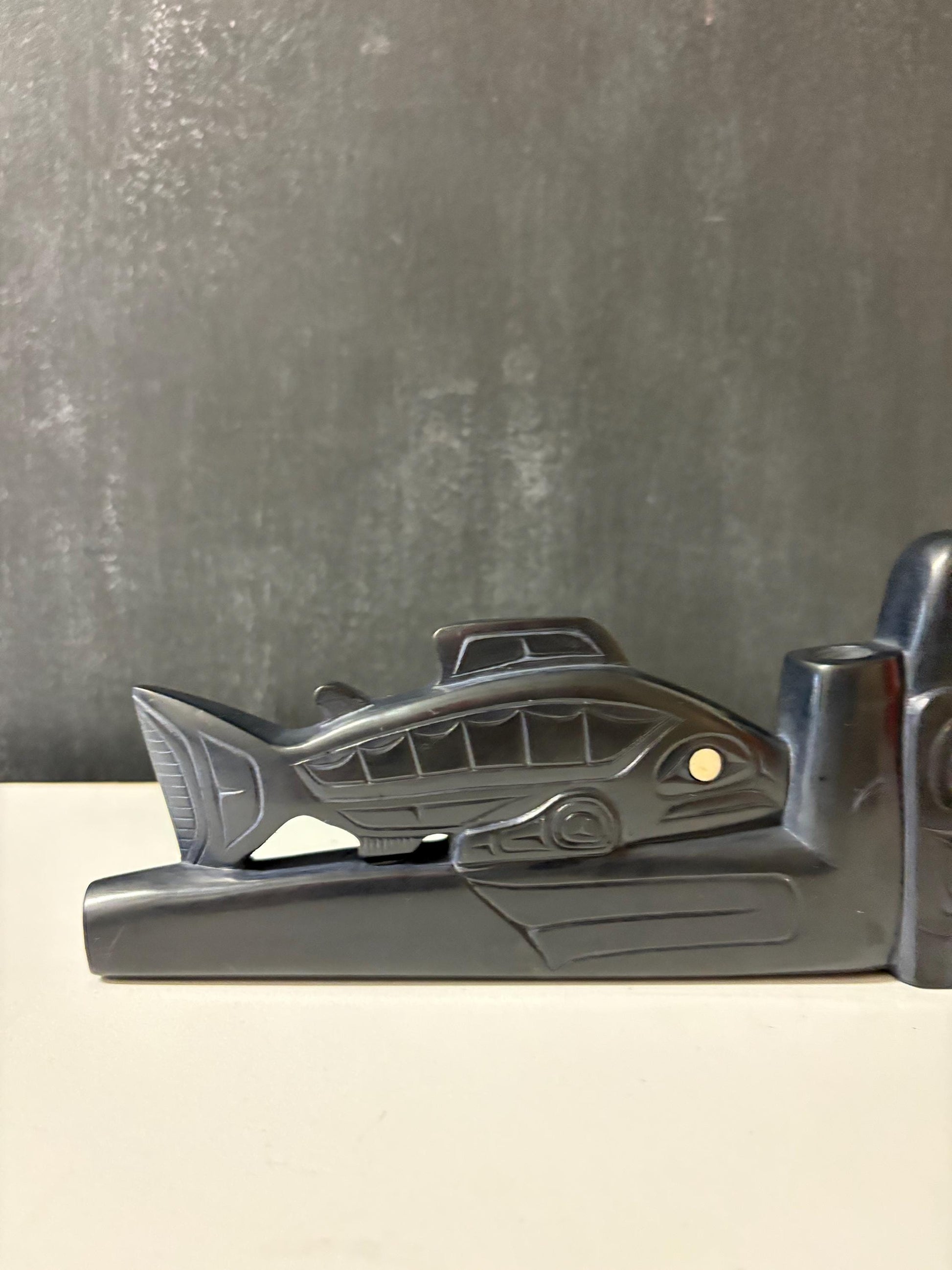 Stunning rare Haida argillite Glen Pollard pipe most amazing detail and condition museum quality the best 8 x 3.5 inches high