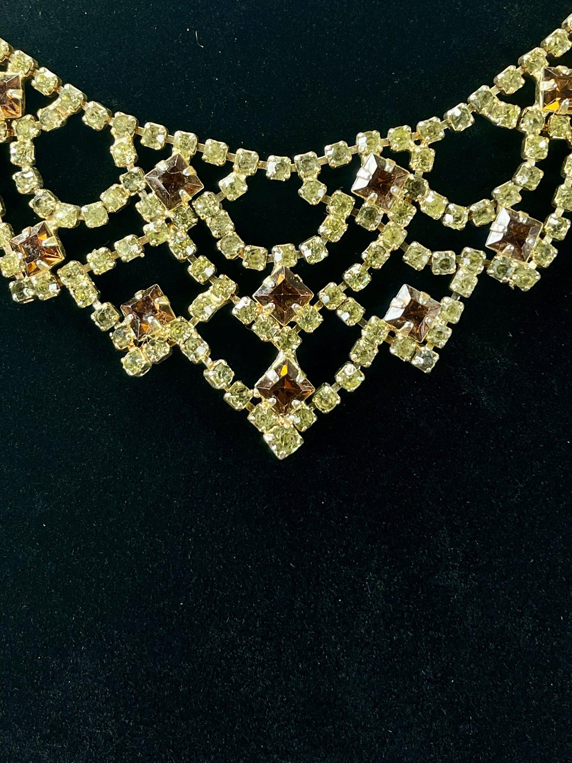 Beautiful Vintage yellow and amber coloured rhinestone chandelier necklace.