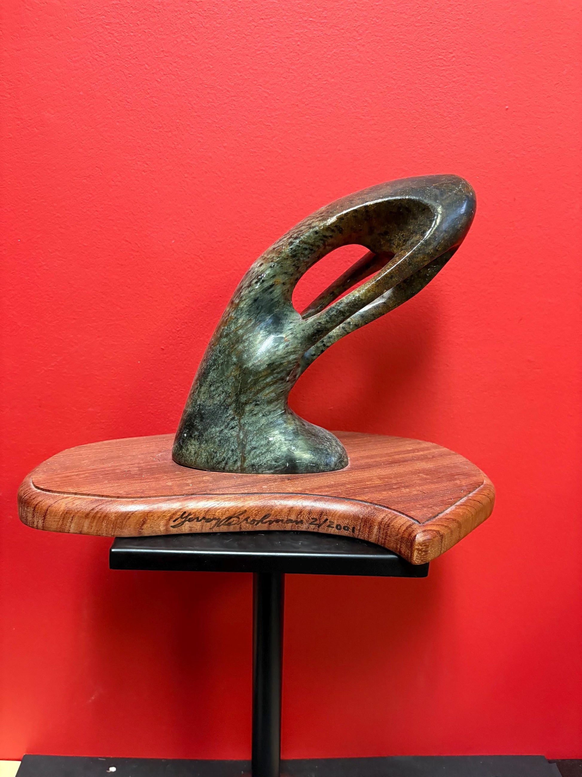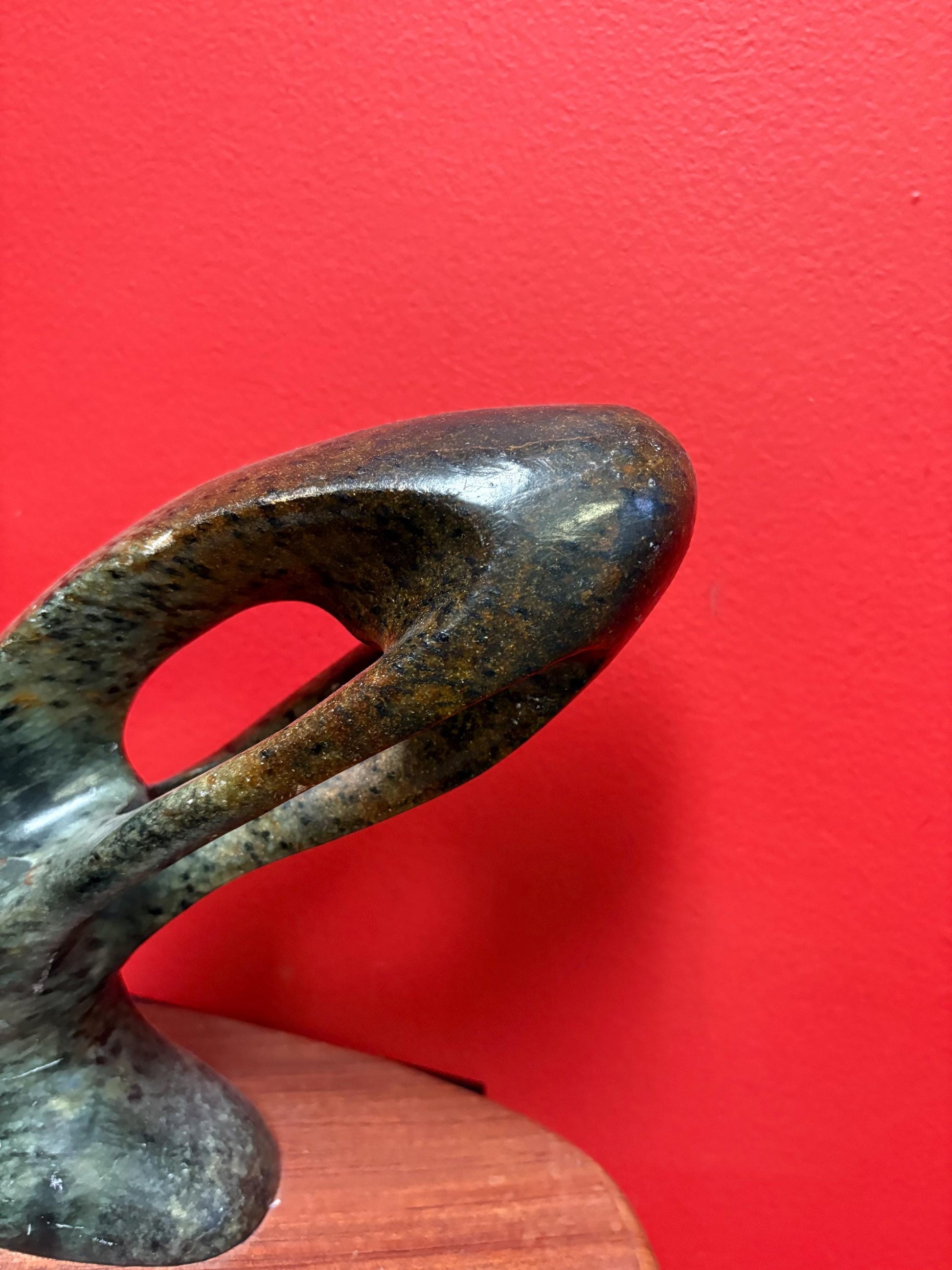 Stunning signed Inuit soapstone phallic statue on wood base 12 x 9 high and truly a wonderful piece of art