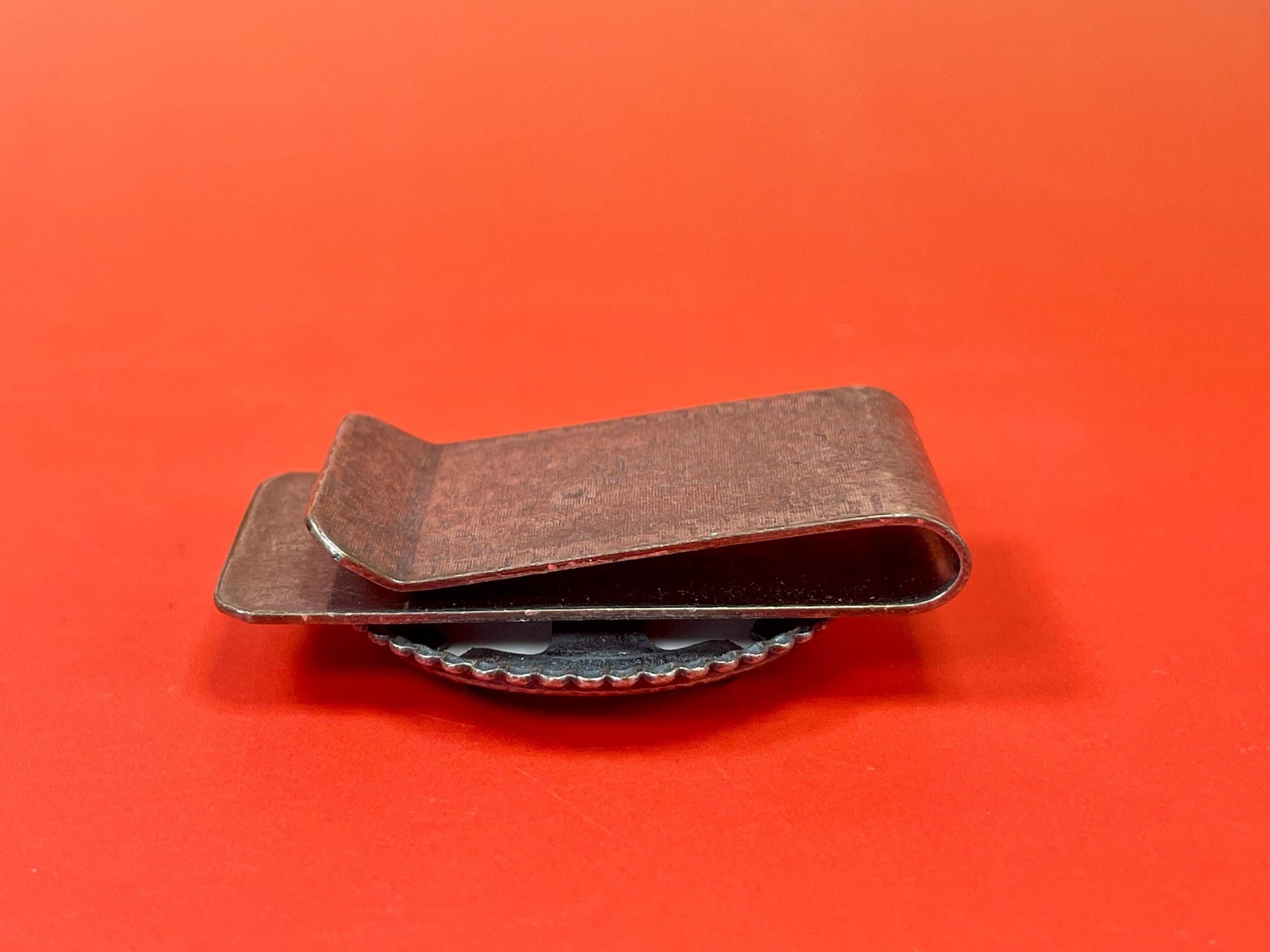 Elvis Presley money clip featuring a classic portrait of the King of Rock ‘n Roll. A perfect collectible for Elvis fans and retro memorabilia lovers.
