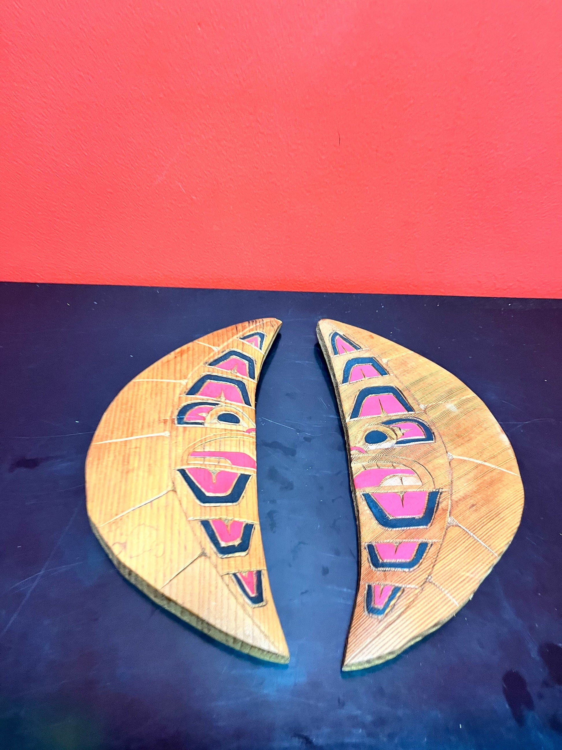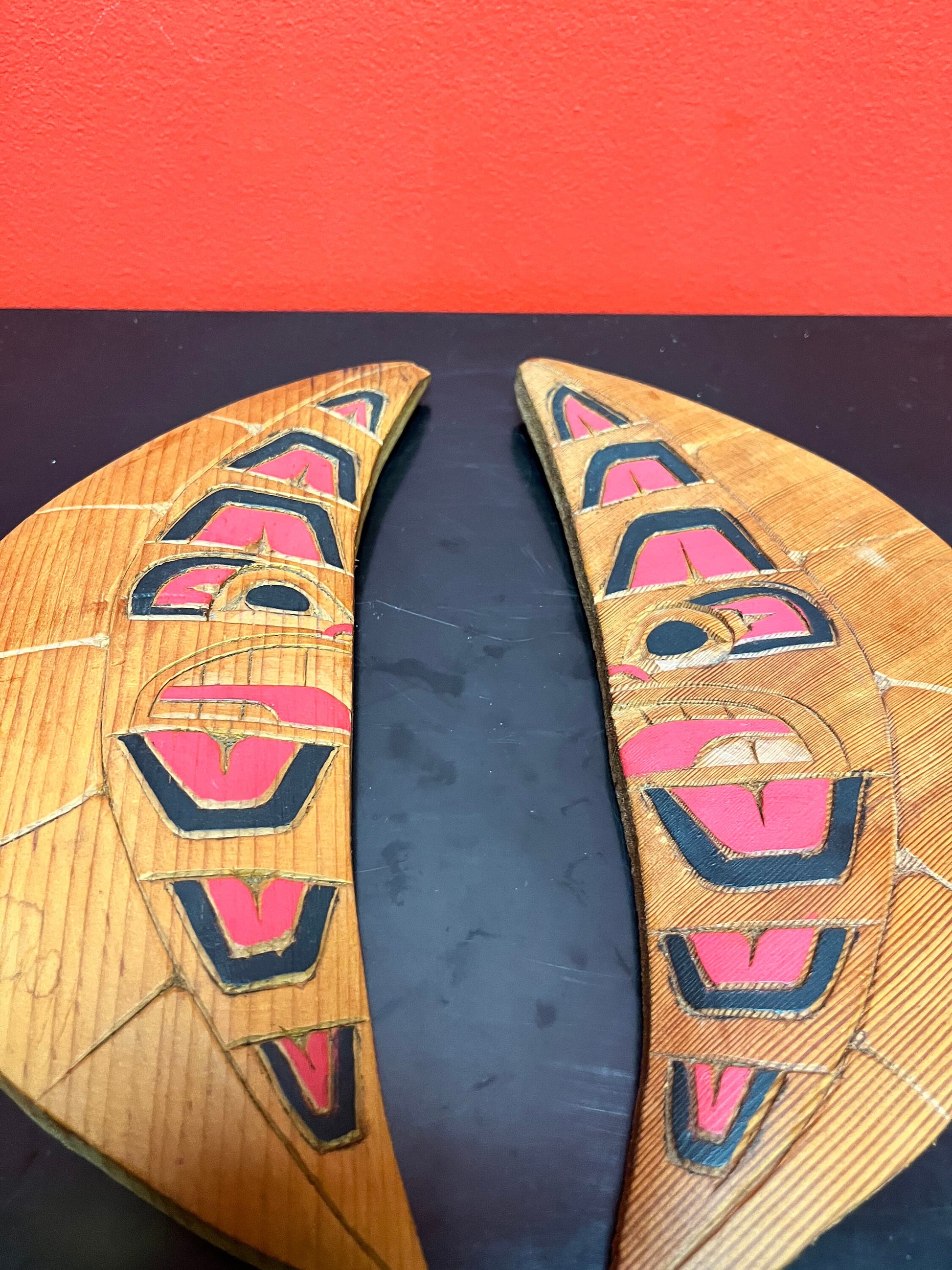 Superb pair 11 x 5 inch moon plaques indigenous First Nations Pacific Northwest coast great value