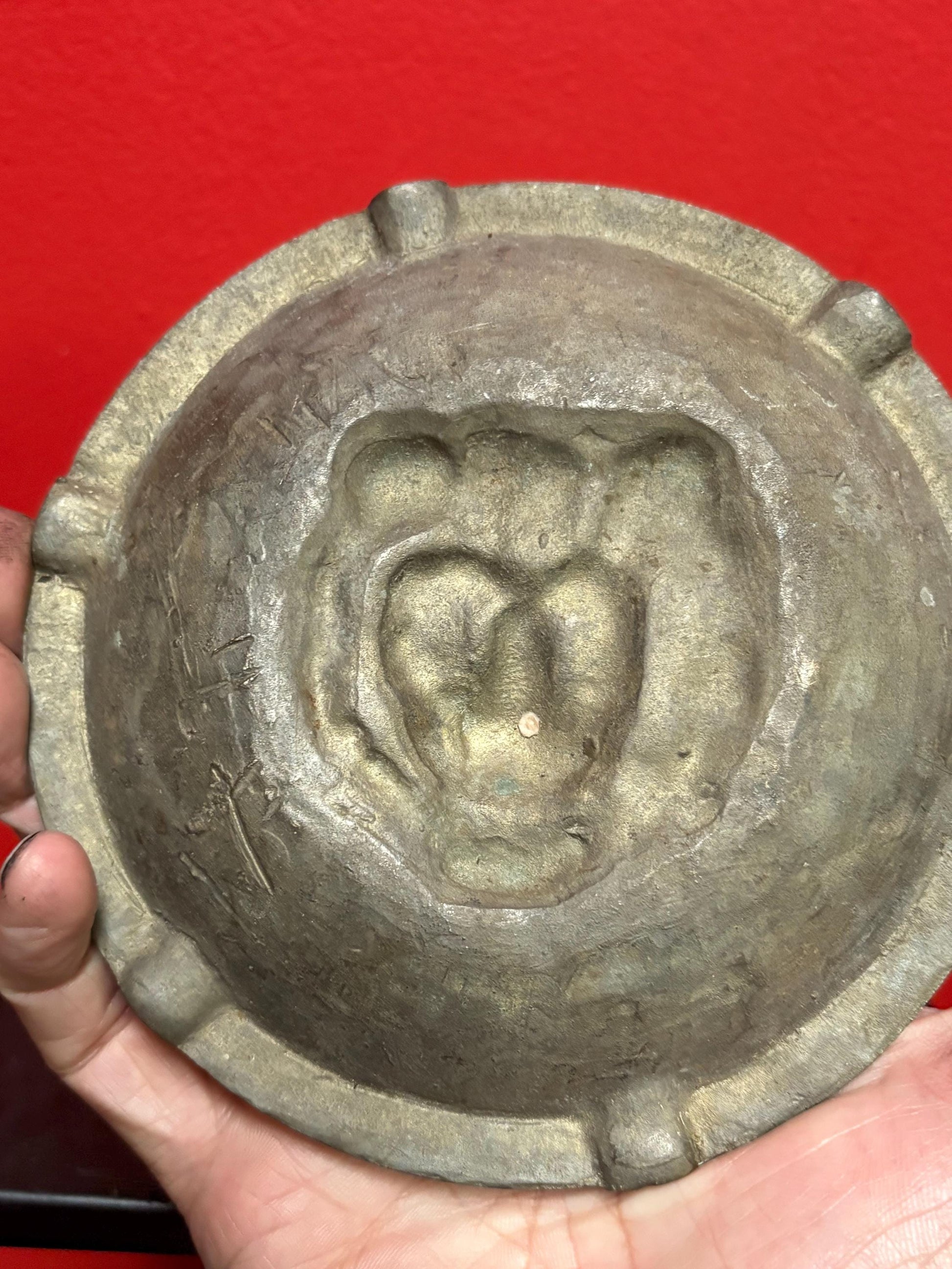 The most amazing antique bronze lion ashtray dish - 6 inches with awesome patina — wow