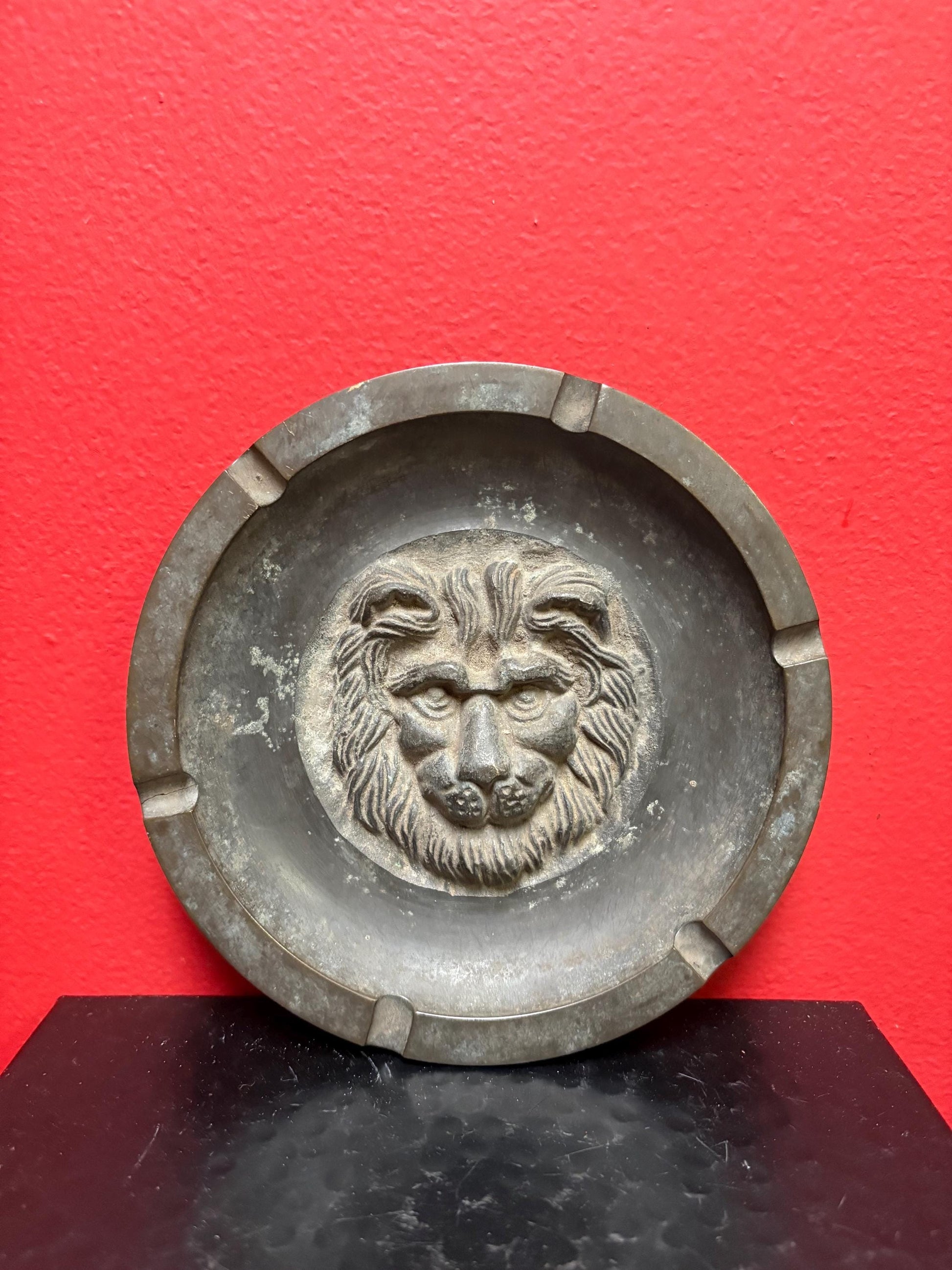 the most amazing antique bronze lion ashtray dish - 6 inches with awesome patina wow