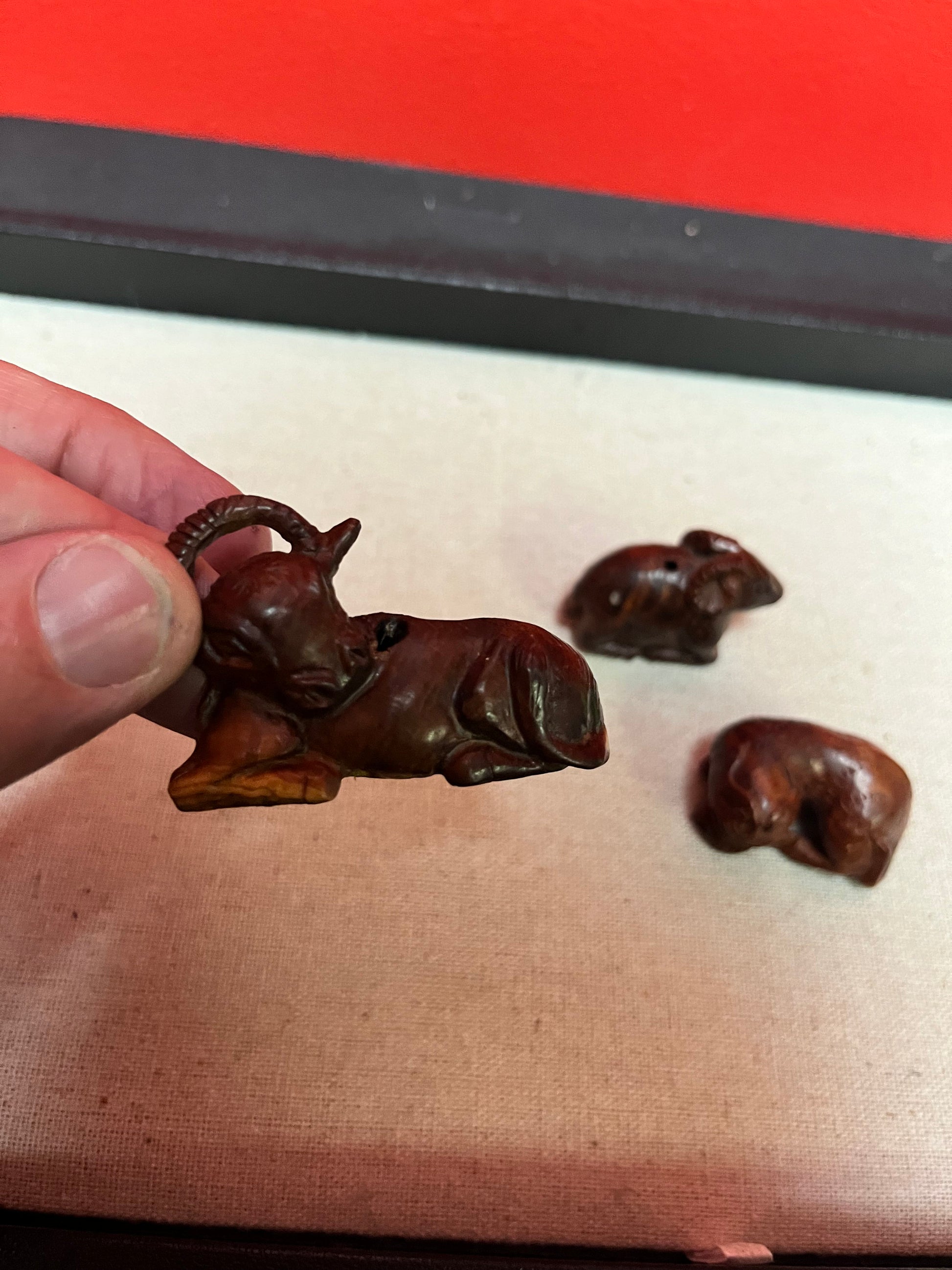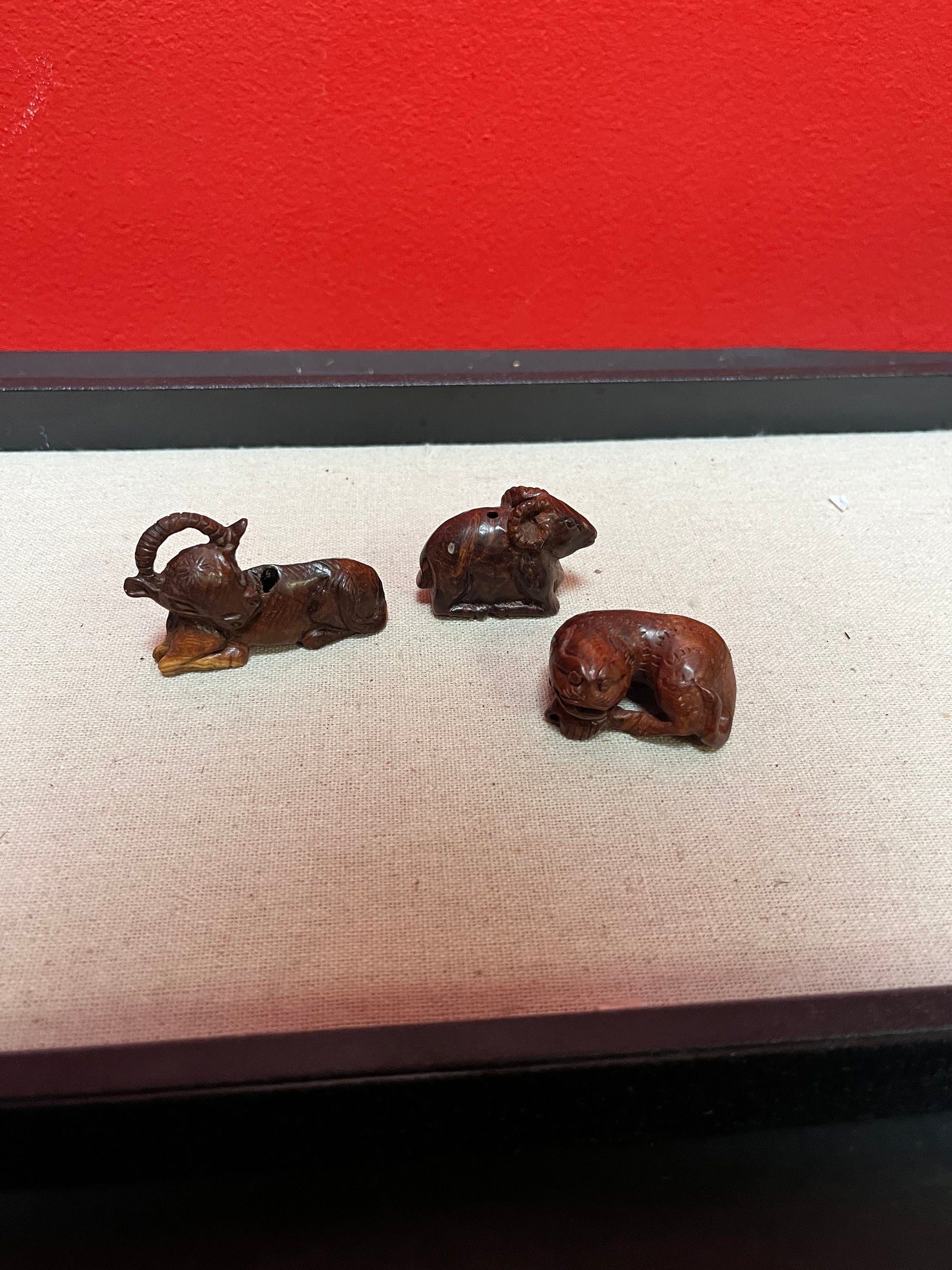Three Antique Japnese wooden Netsukes lovely condition price for all 1.5 to 2 inch each
