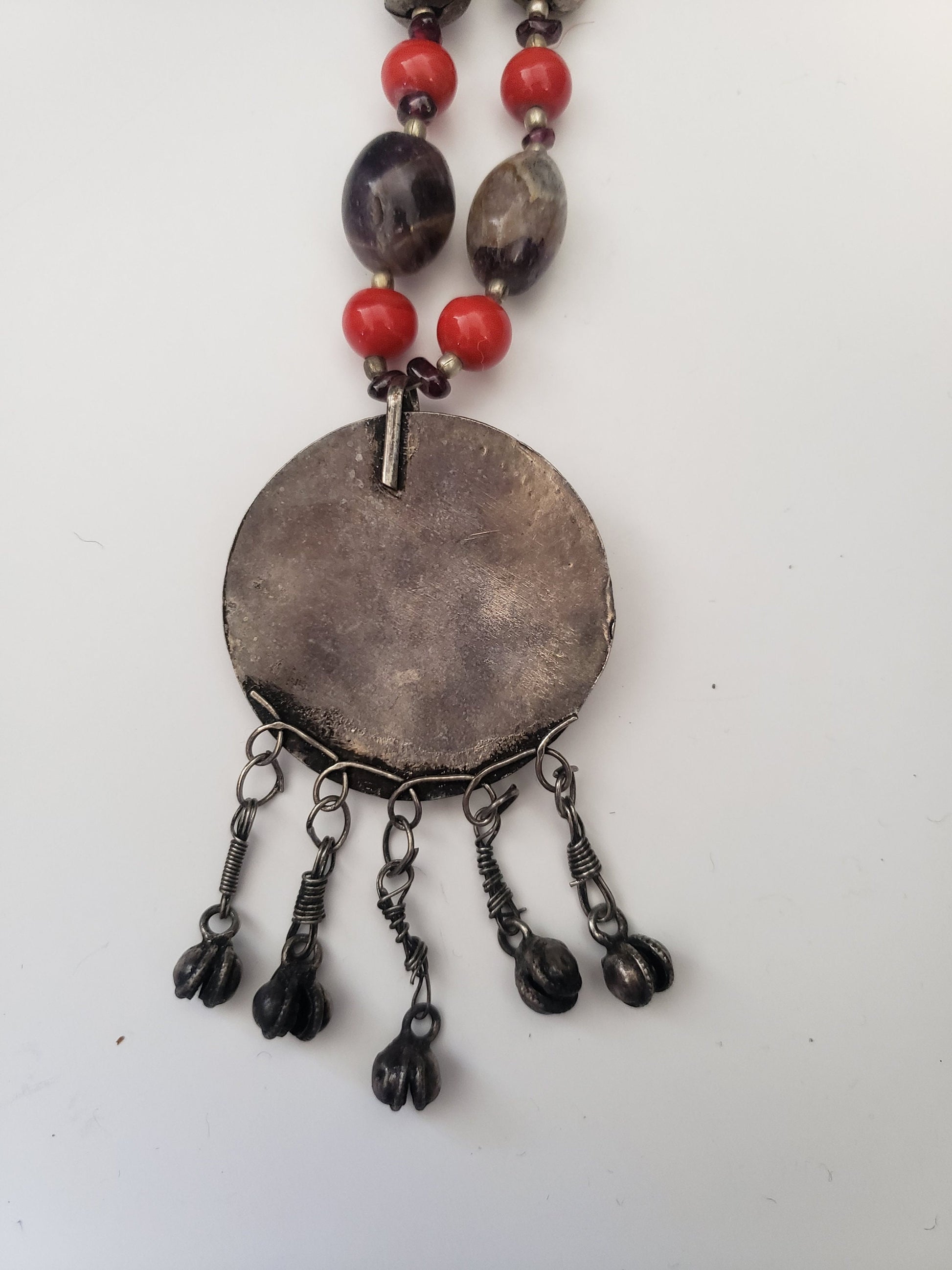Tibetan Vintage Silver, Stone, Beaded Necklace