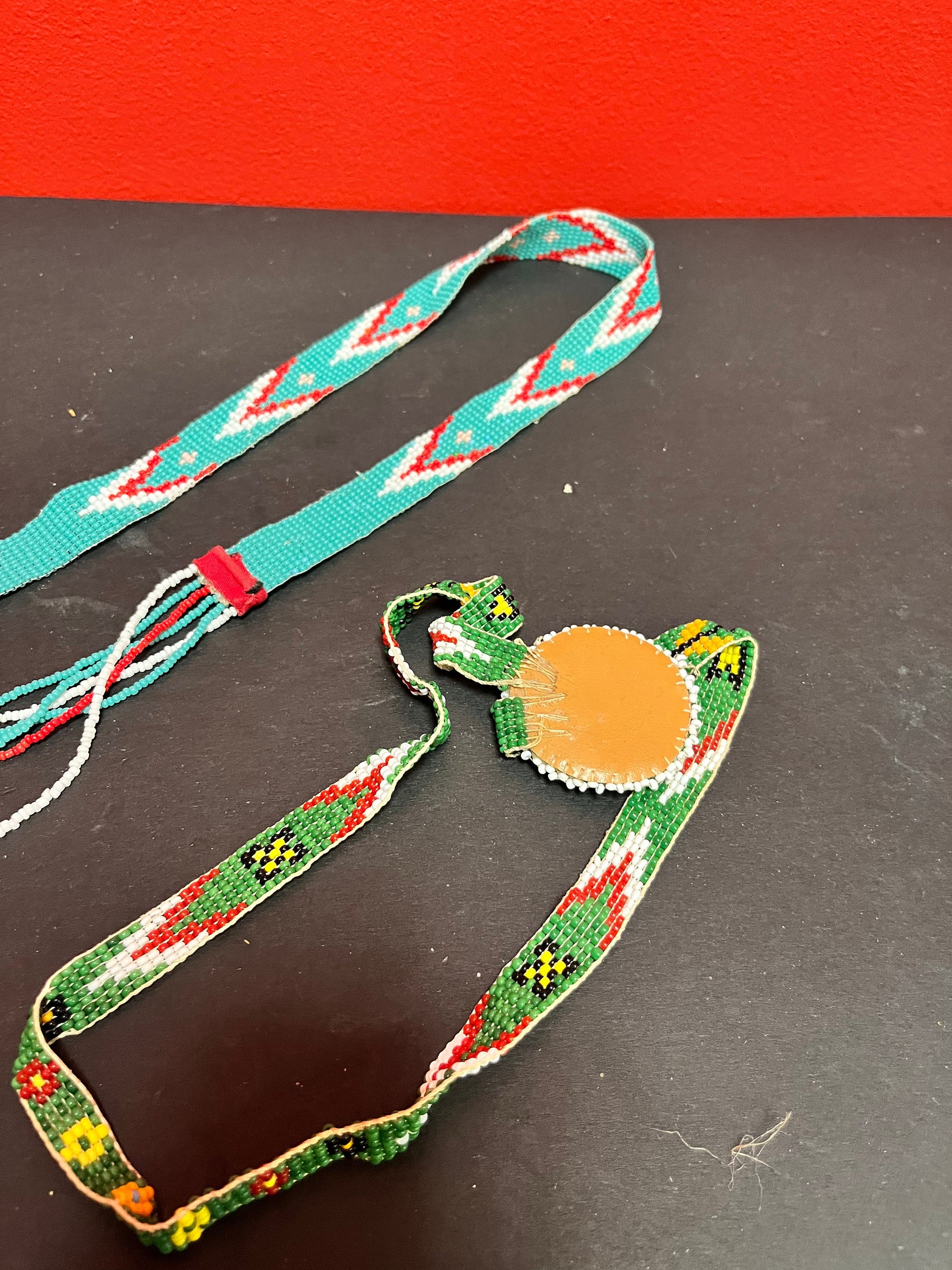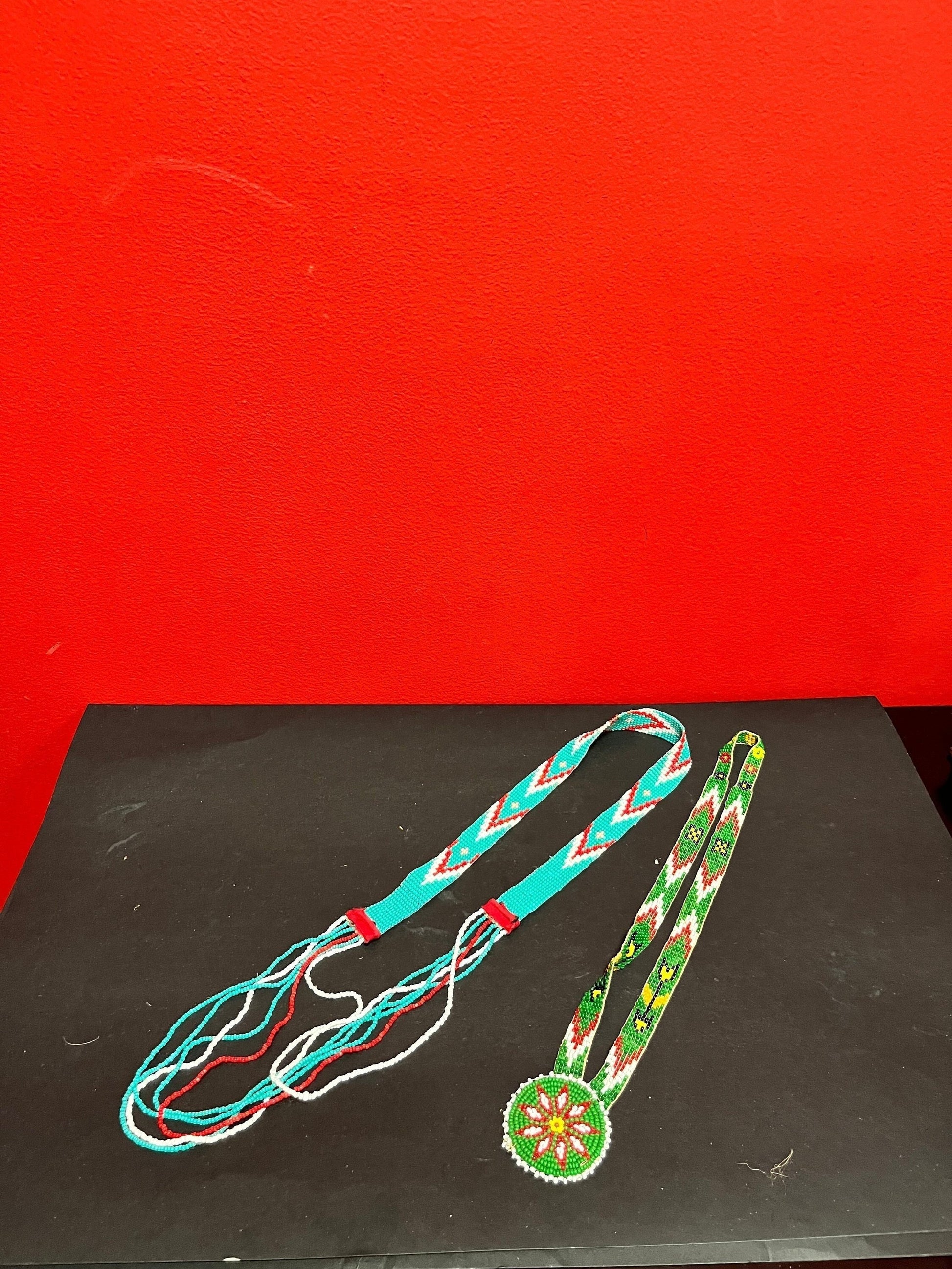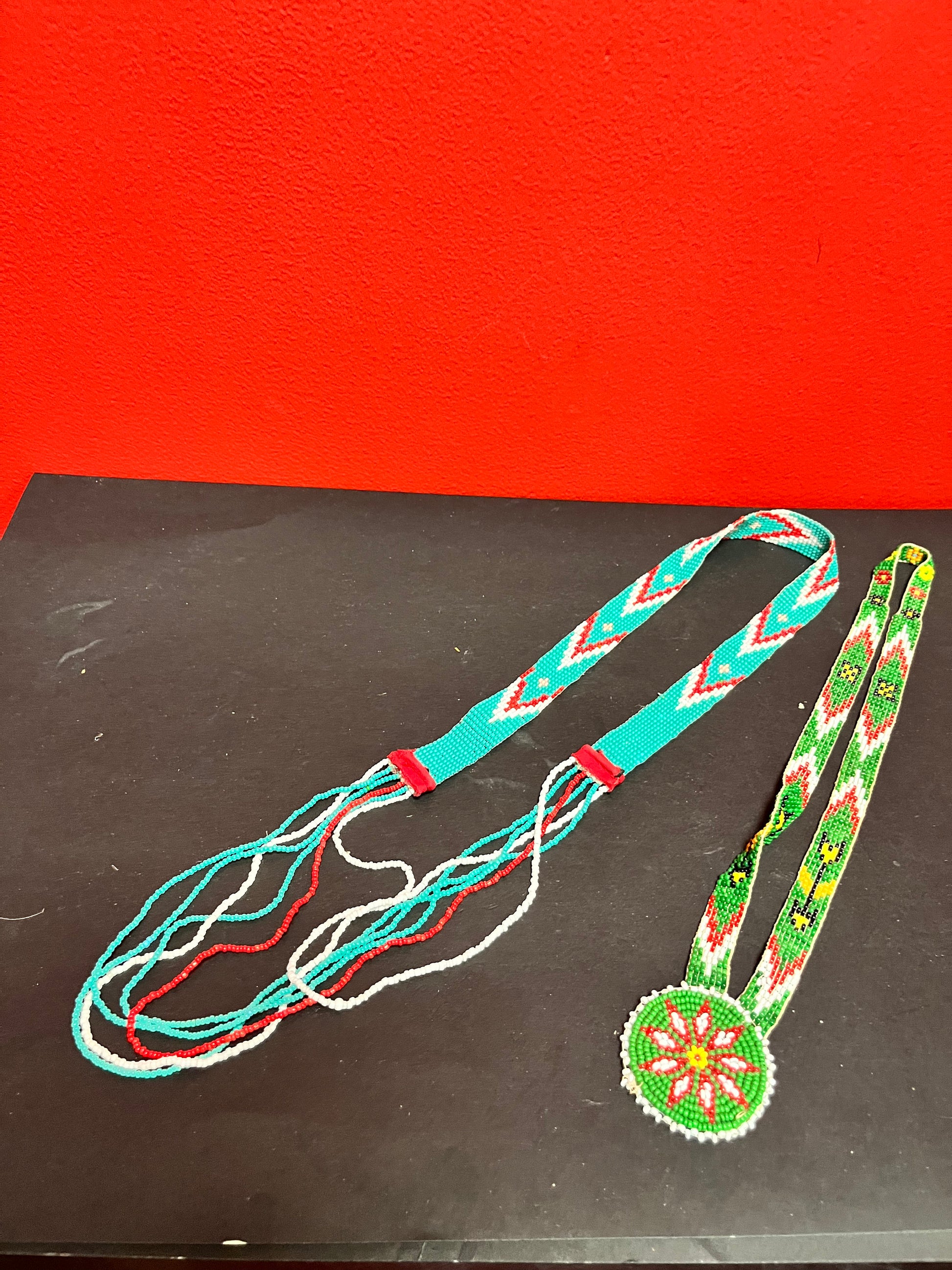 To indigenous West Coast first nations beaded necklaces 24 and 32 inches long, approximately perfect condition