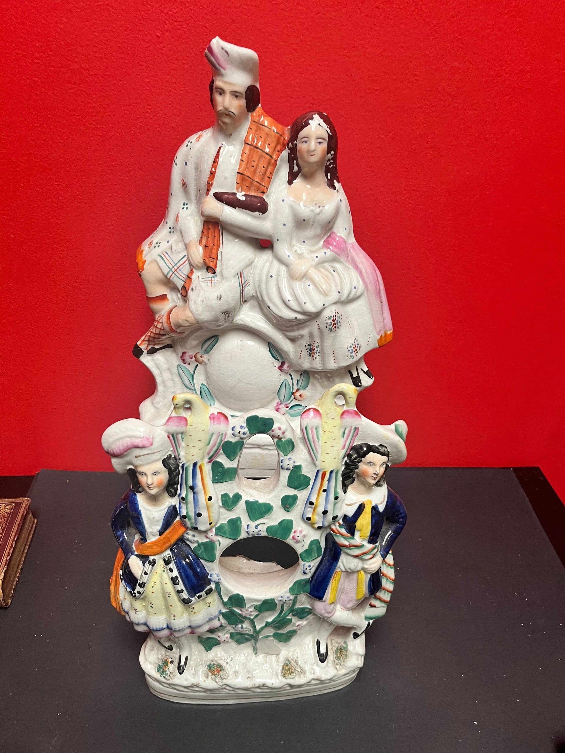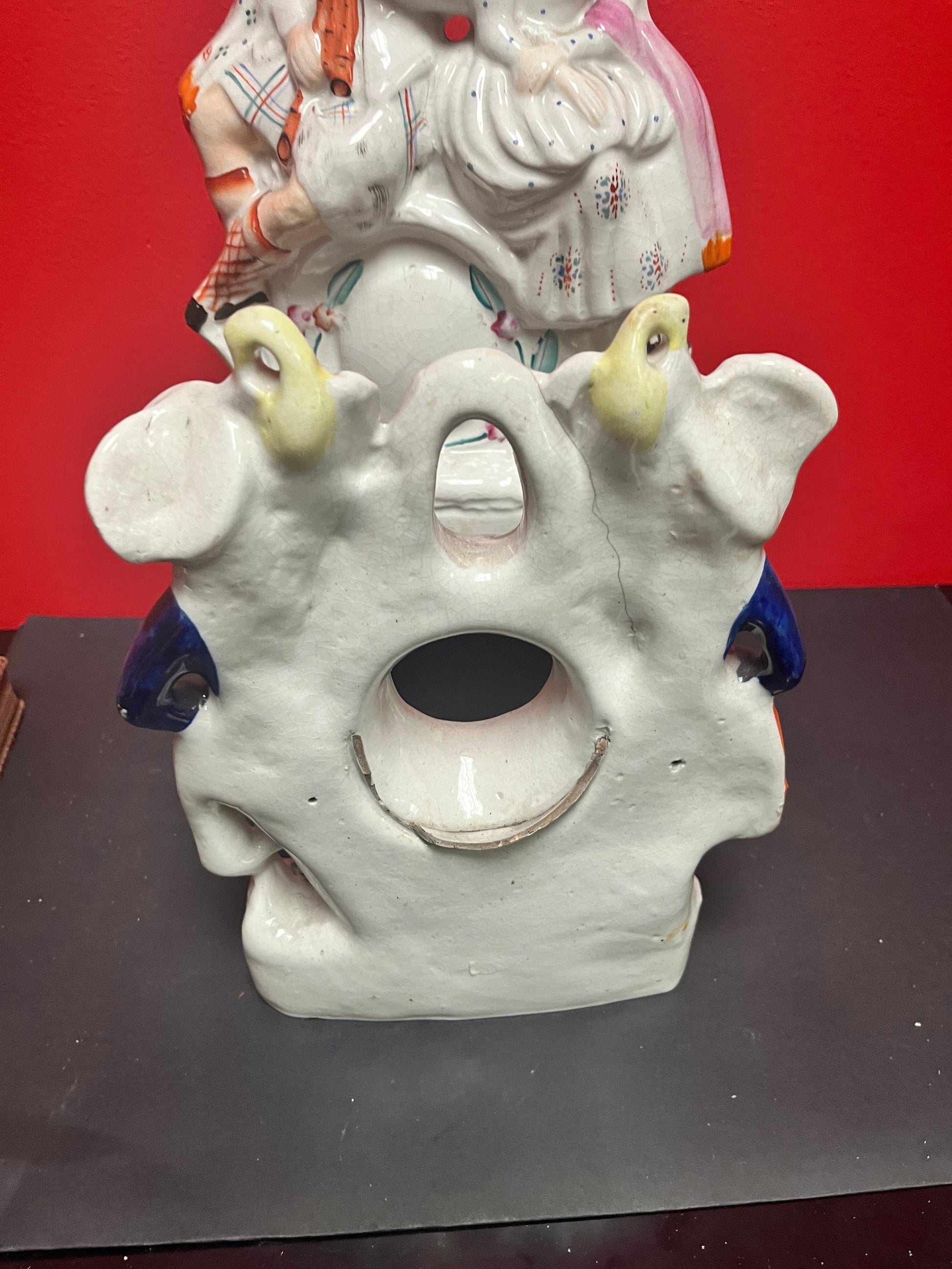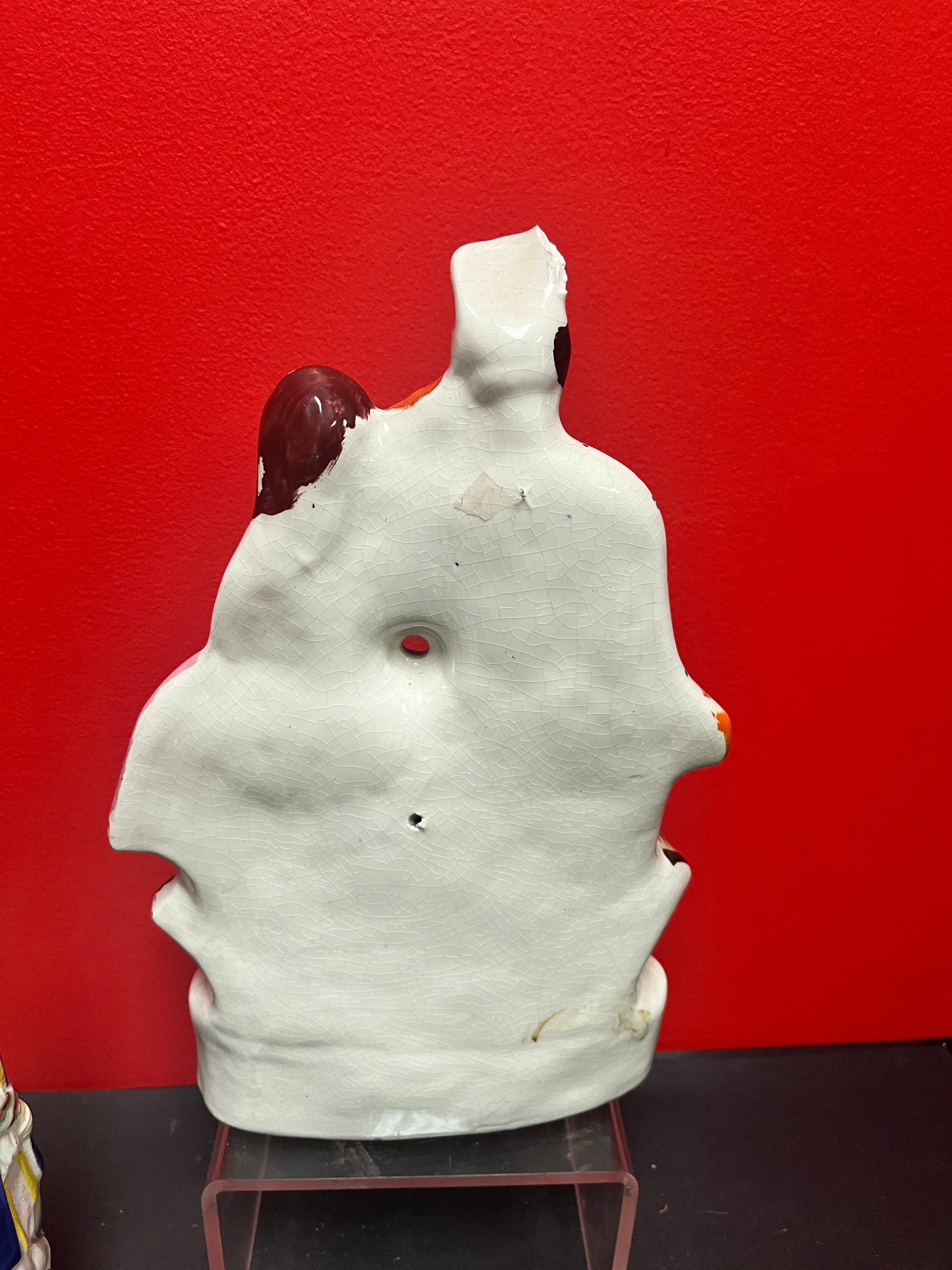 Two Lovely antique as is Staffordshire figures. See photos. 11 and 14 inches tall.