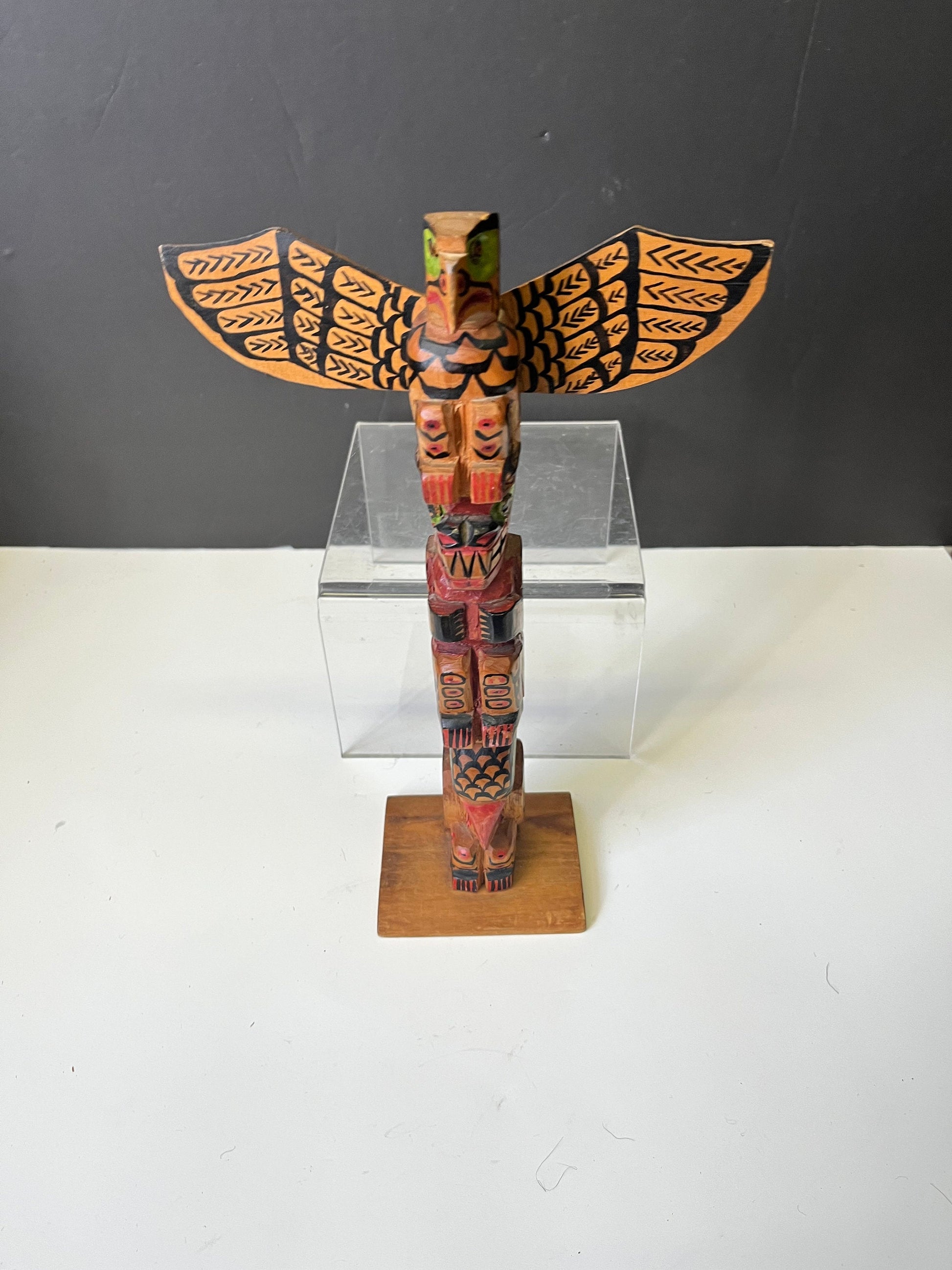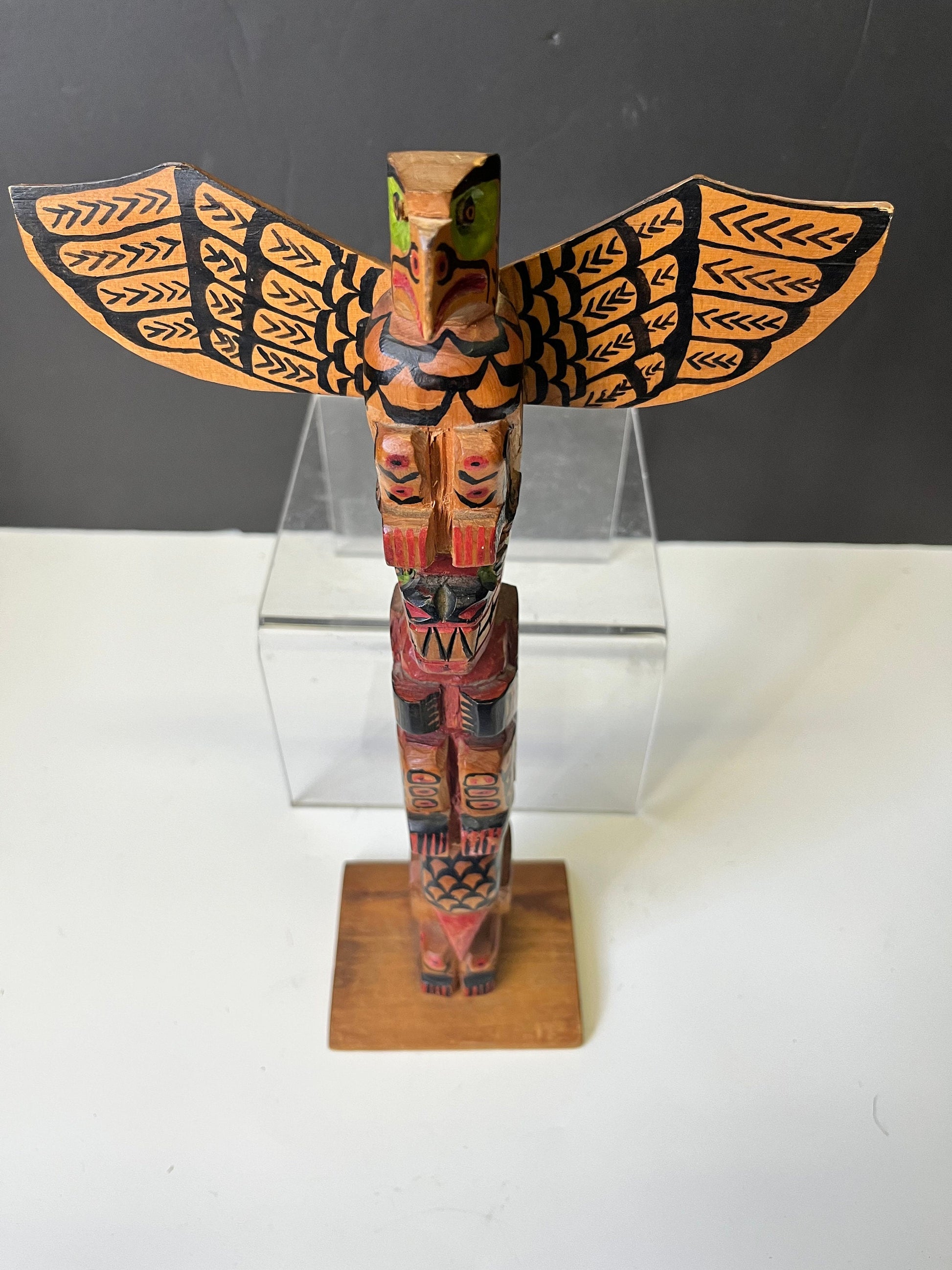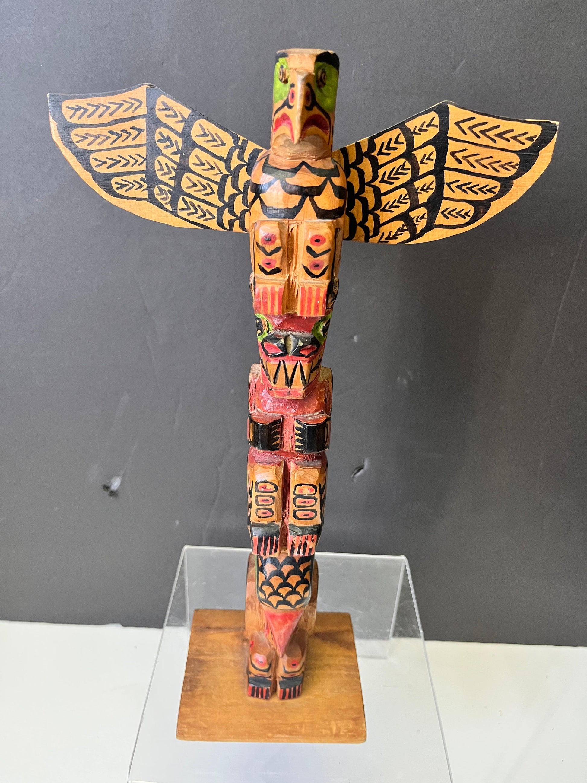 Unbelievable 12 x 8 indigenous Polychrome folk art totem pole with wings antique In great condition was amazing paint detail - wow wow
