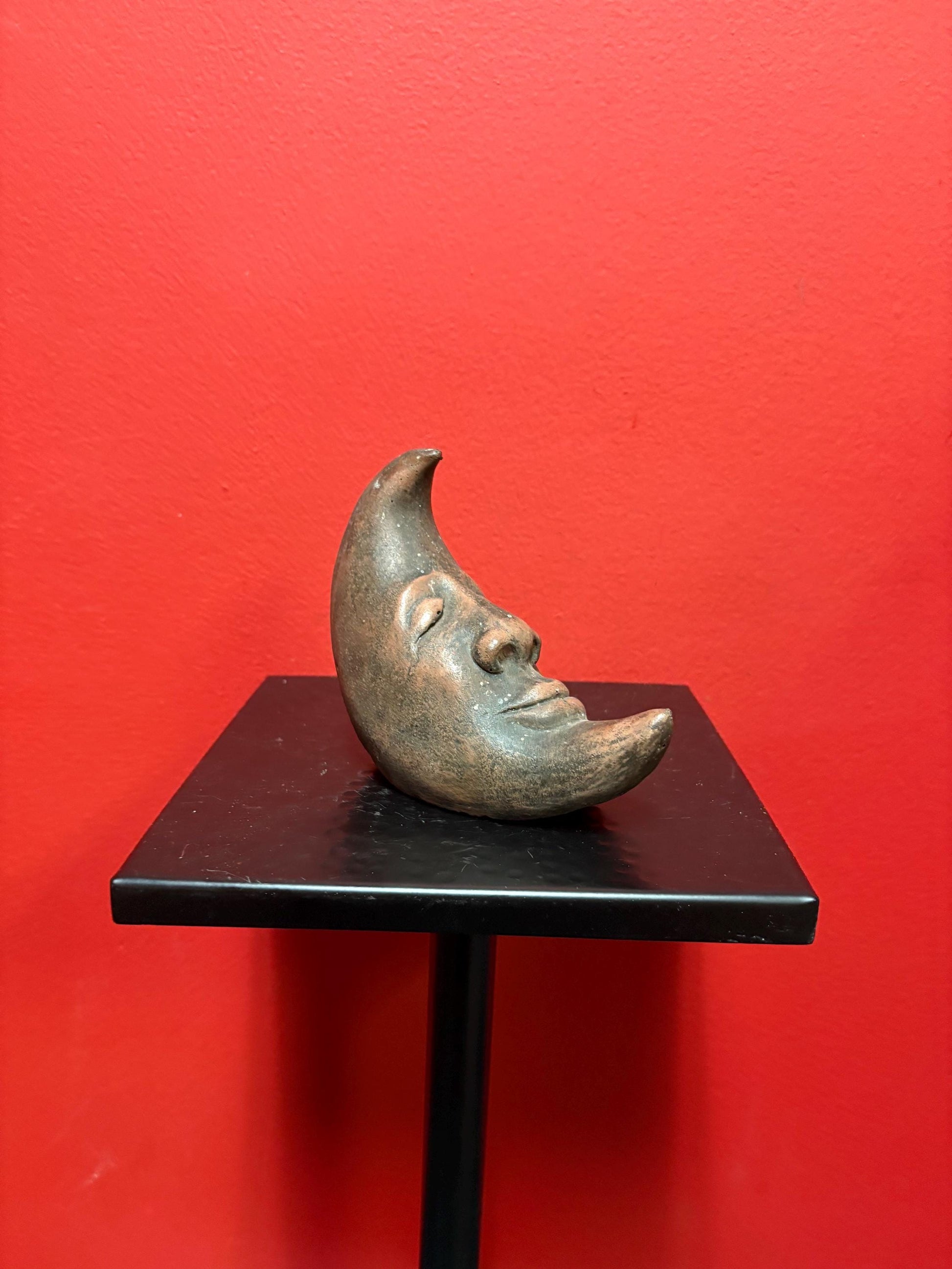 Unique probably American 5 inch antique pottery moon statue — nice condition and great gift — heavy
